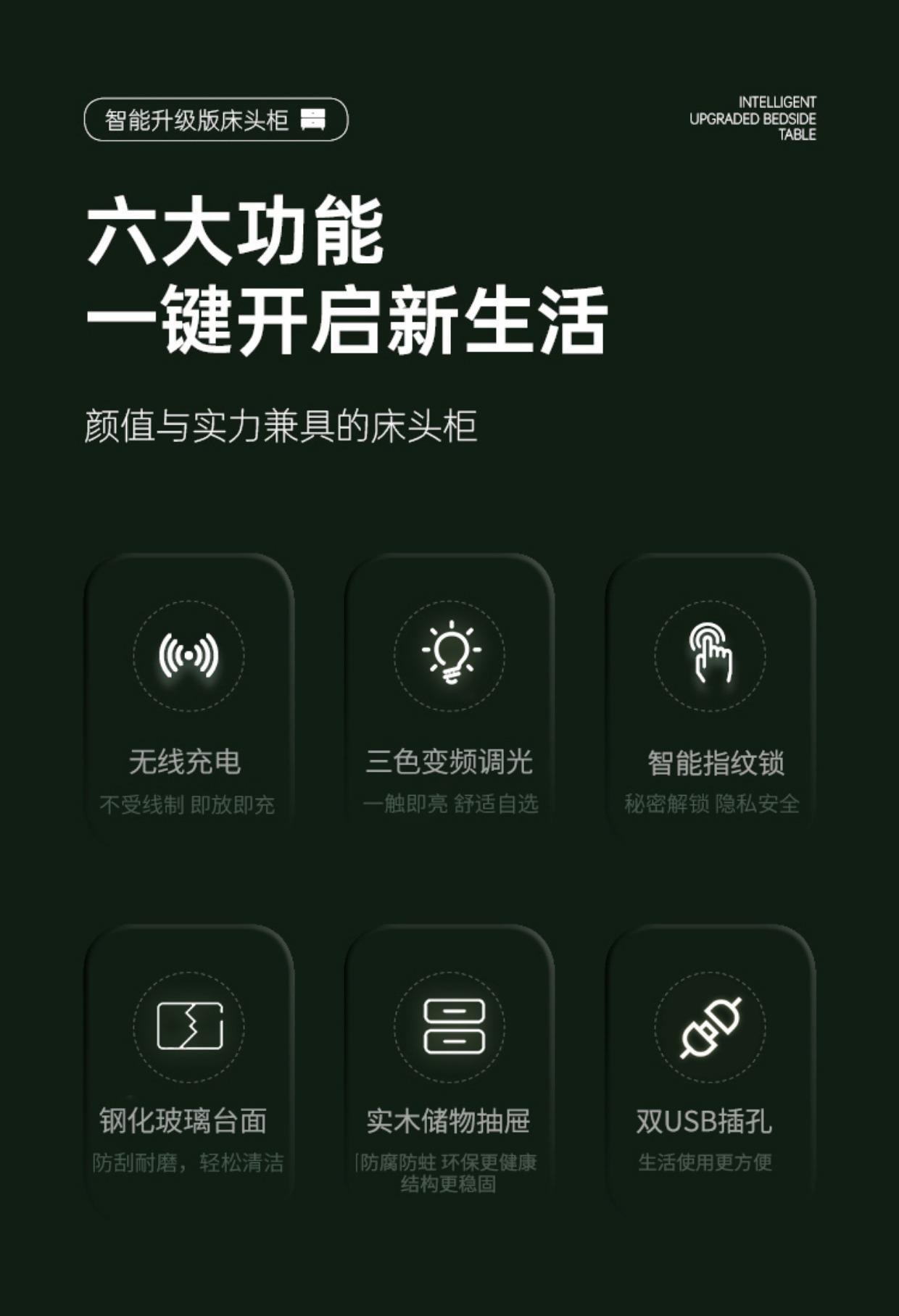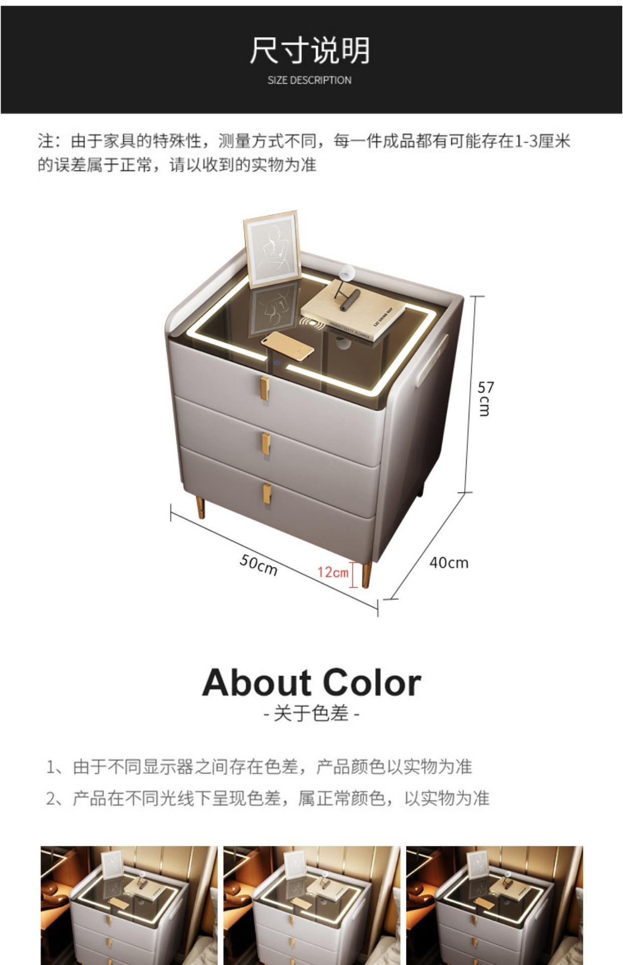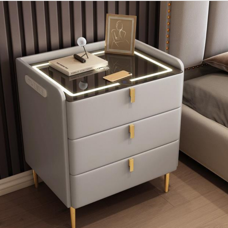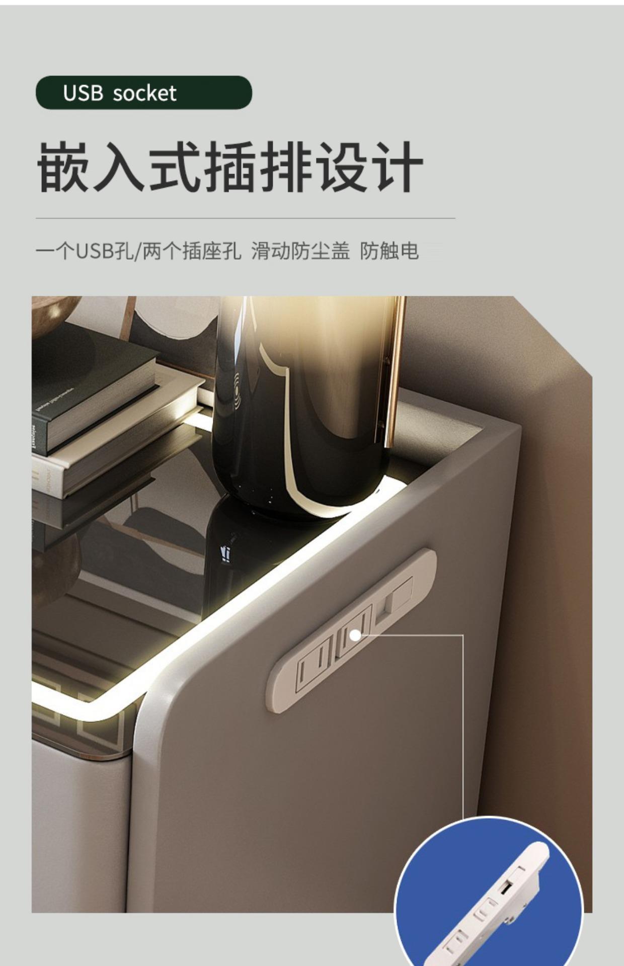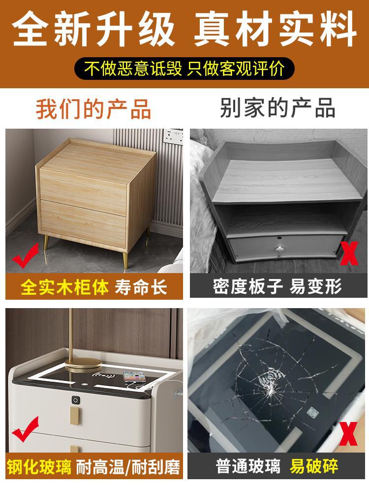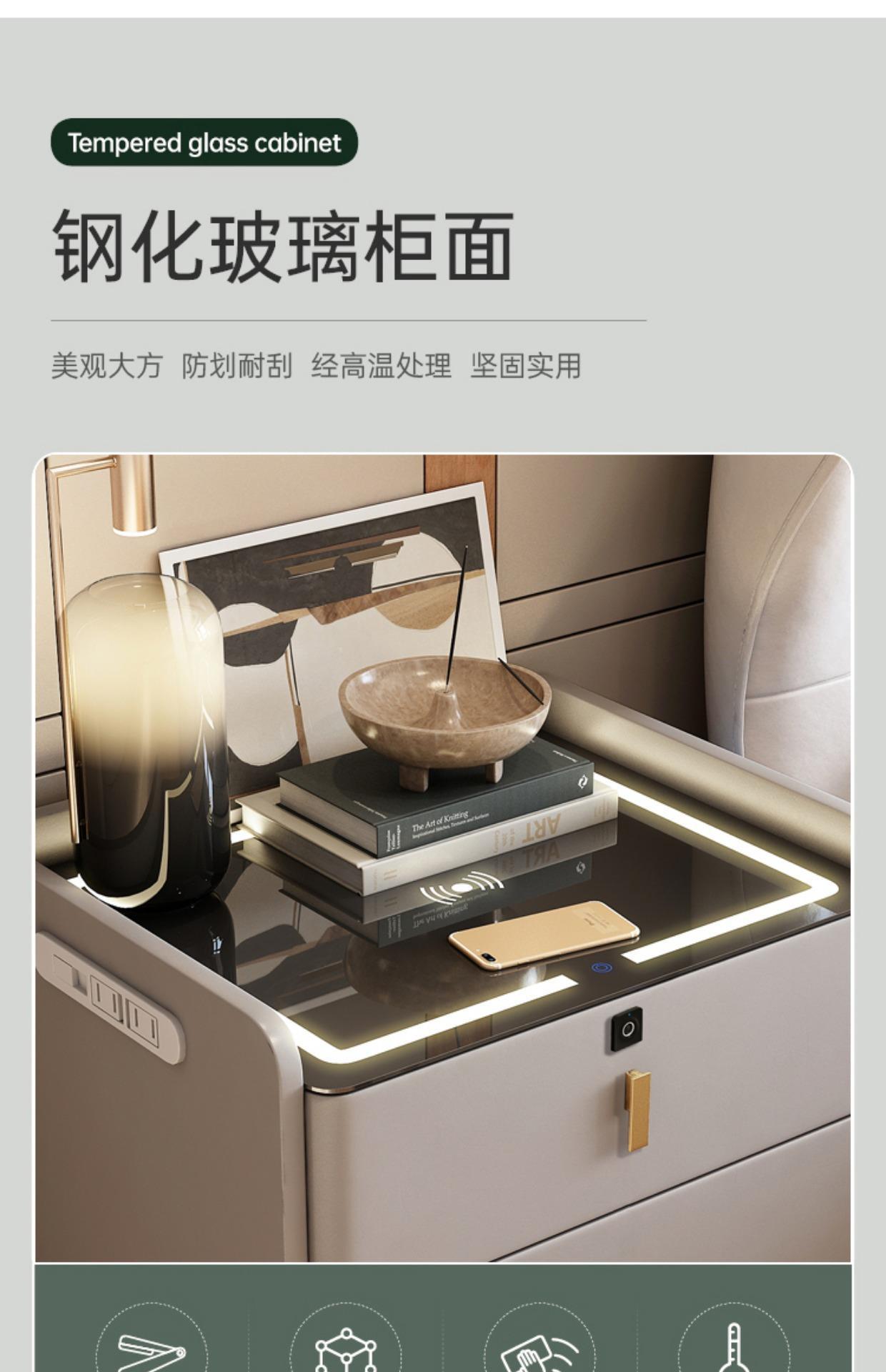 网红智能床头柜简约现代充电多功能卧室轻奢感带锁床边储物柜