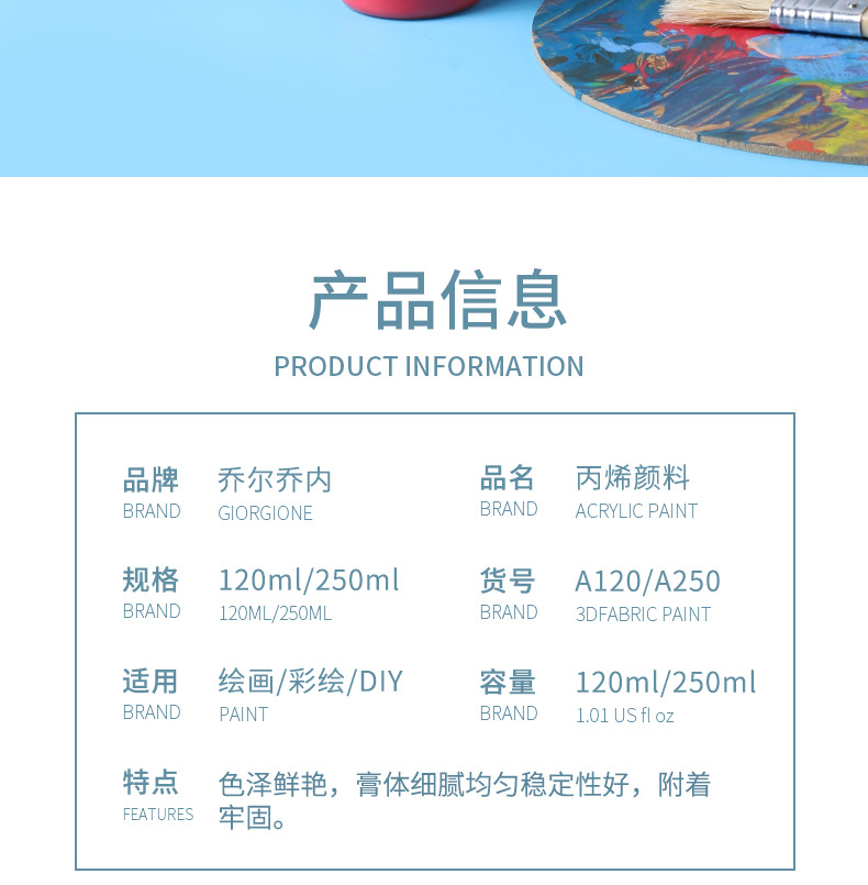 厂家直销丙烯颜料120ML250ml创作防水防晒不掉色涂鸦丙烯画颜料