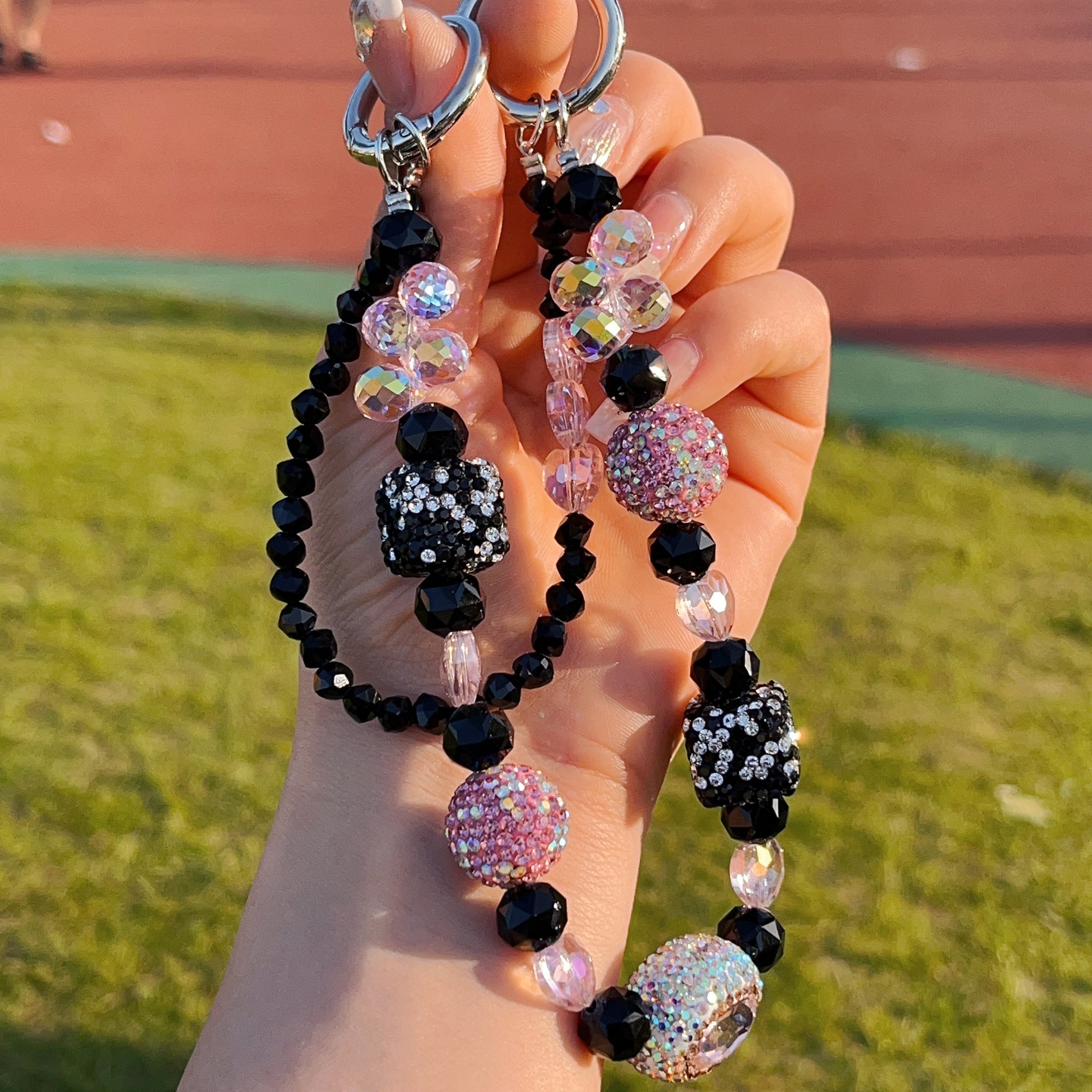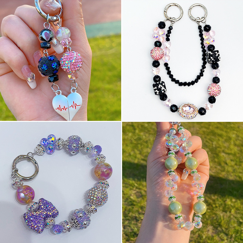 手机链高级感串珠挂饰定制电镀镶钻轻奢精致车钥匙扣包包挂件厂家