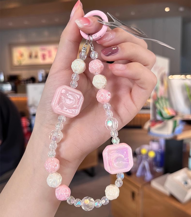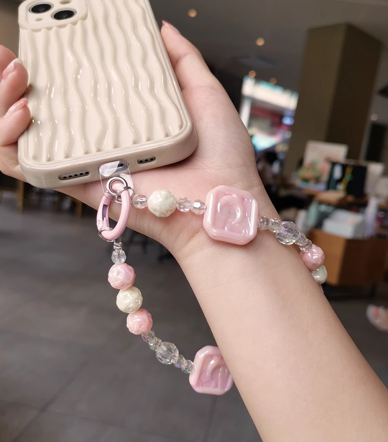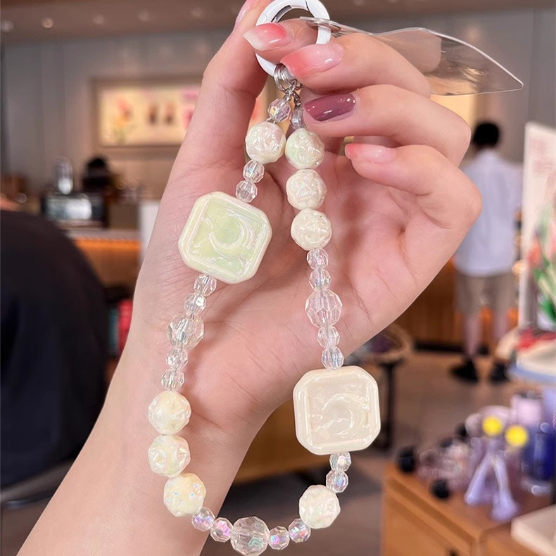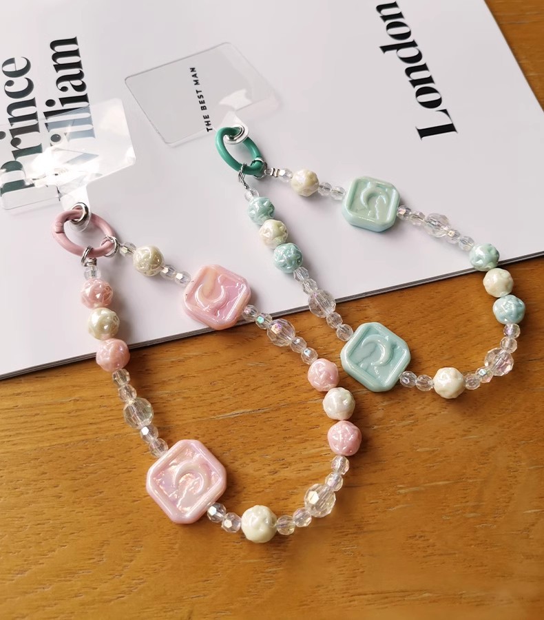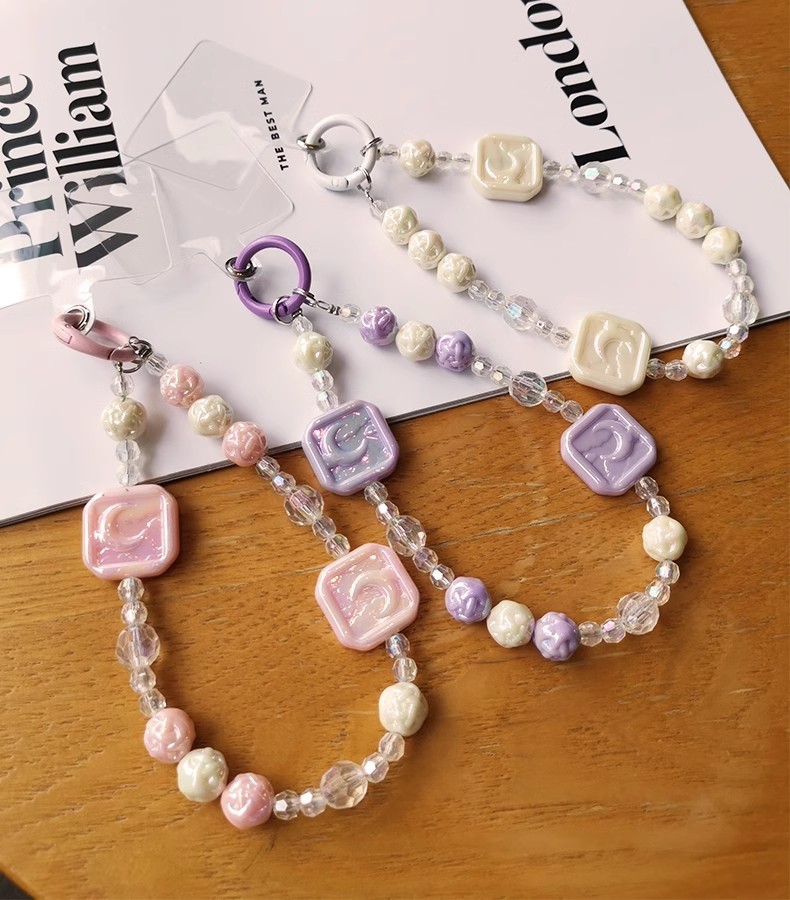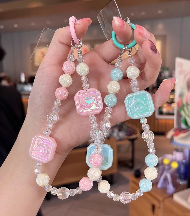 手机挂绳短款圆珠多彩珠子挂件女款创意手工串珠手腕挂饰防丢吊绳