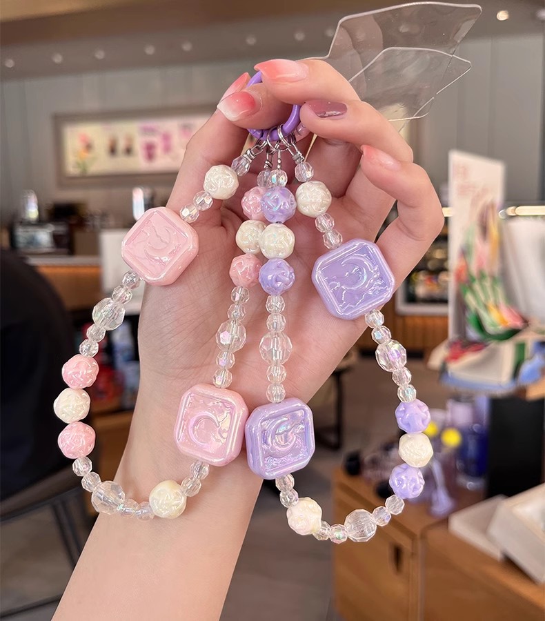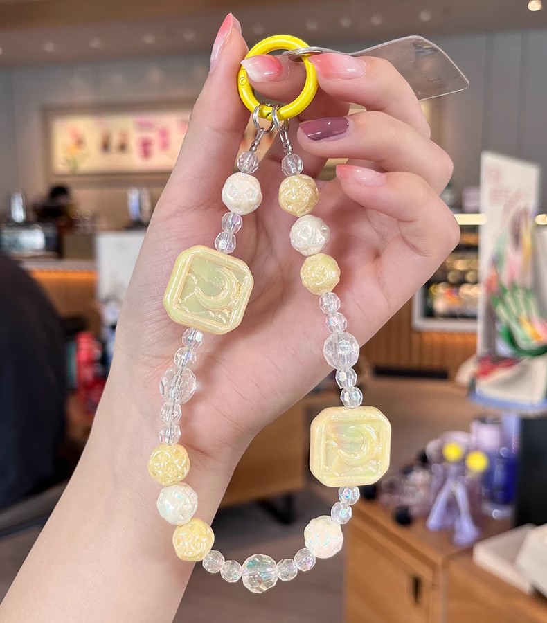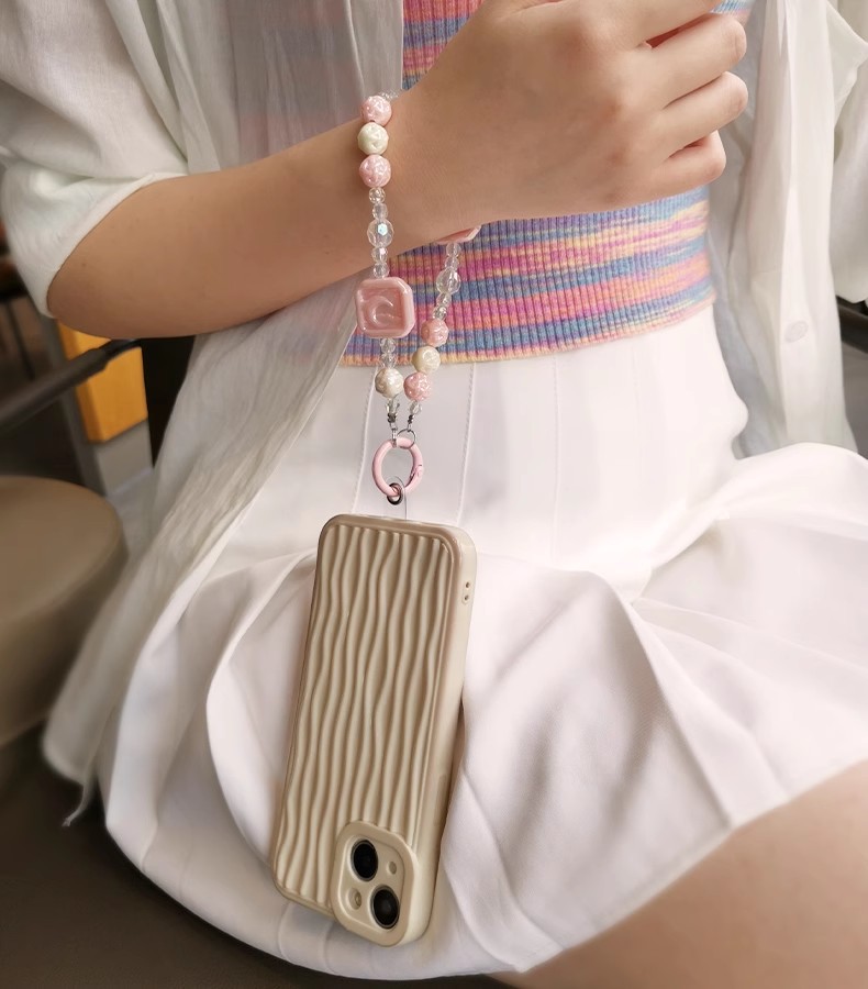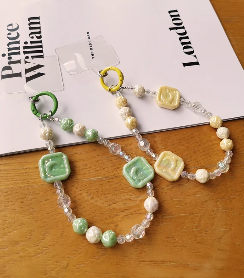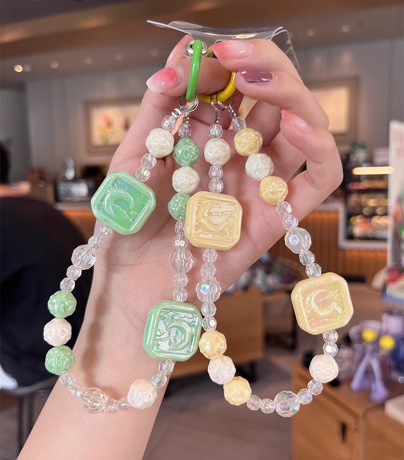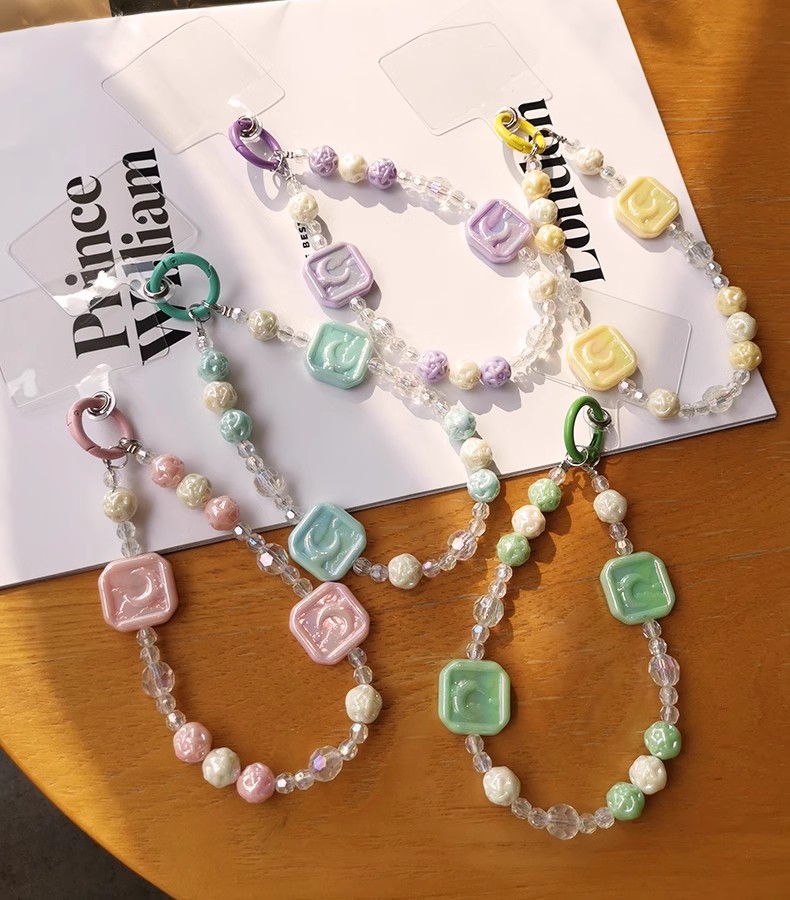 手机挂绳短款圆珠多彩珠子挂件女款创意手工串珠手腕挂饰防丢吊绳
