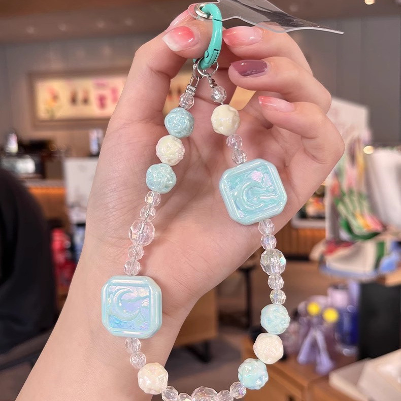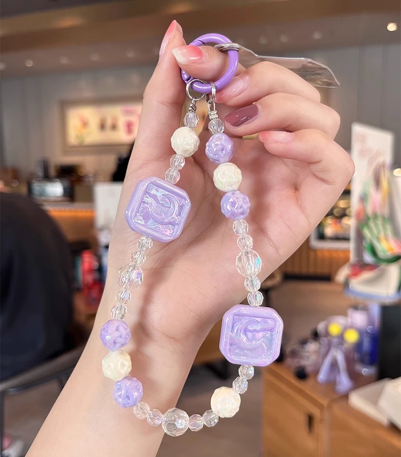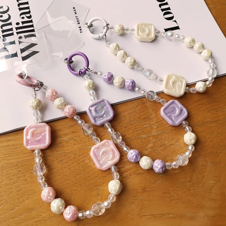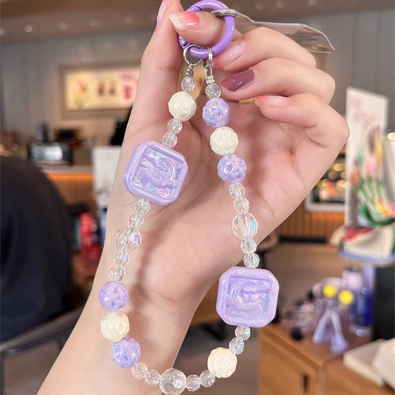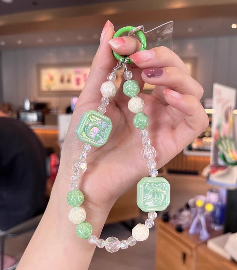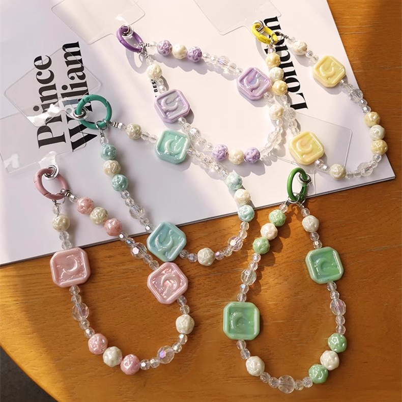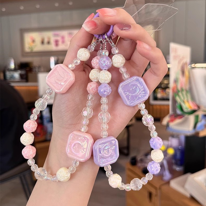 手机挂绳短款圆珠多彩珠子挂件女款创意手工串珠手腕挂饰防丢吊绳
