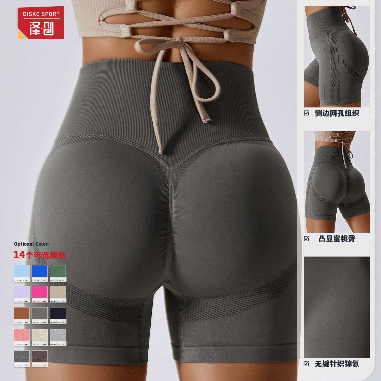 欧美无缝瑜伽短裤蜜桃提臀高腰健身裤紧身跑步运动短裤女生6415