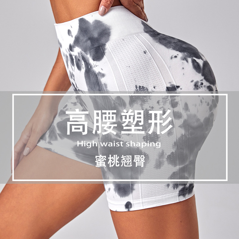 欧美无缝滴染瑜伽裤高腰收腹运动三分裤弹力瑜伽短裤女外穿健身裤