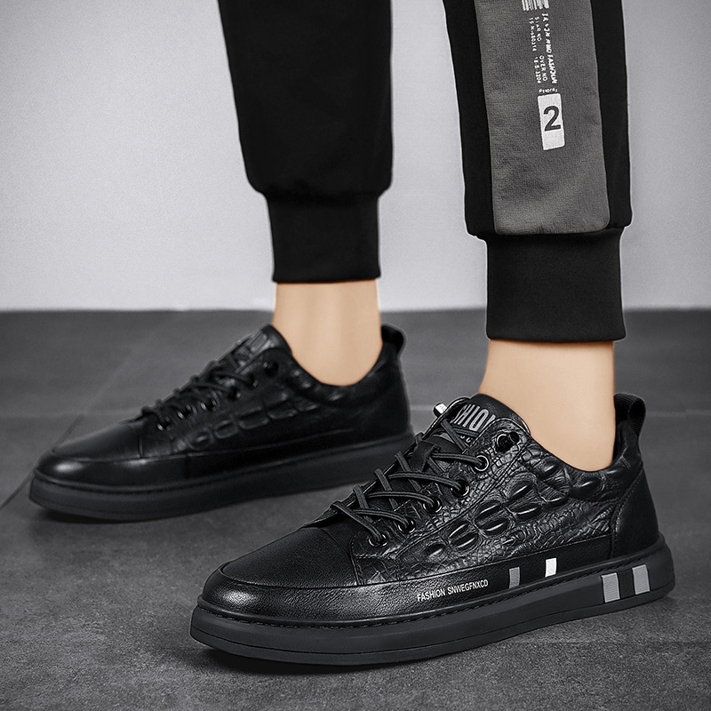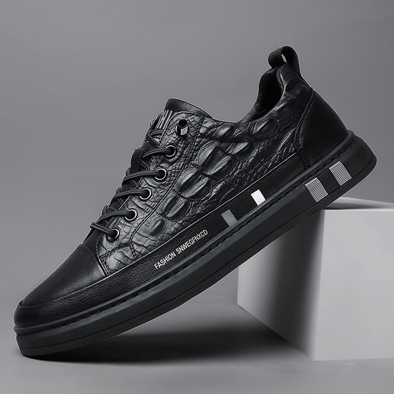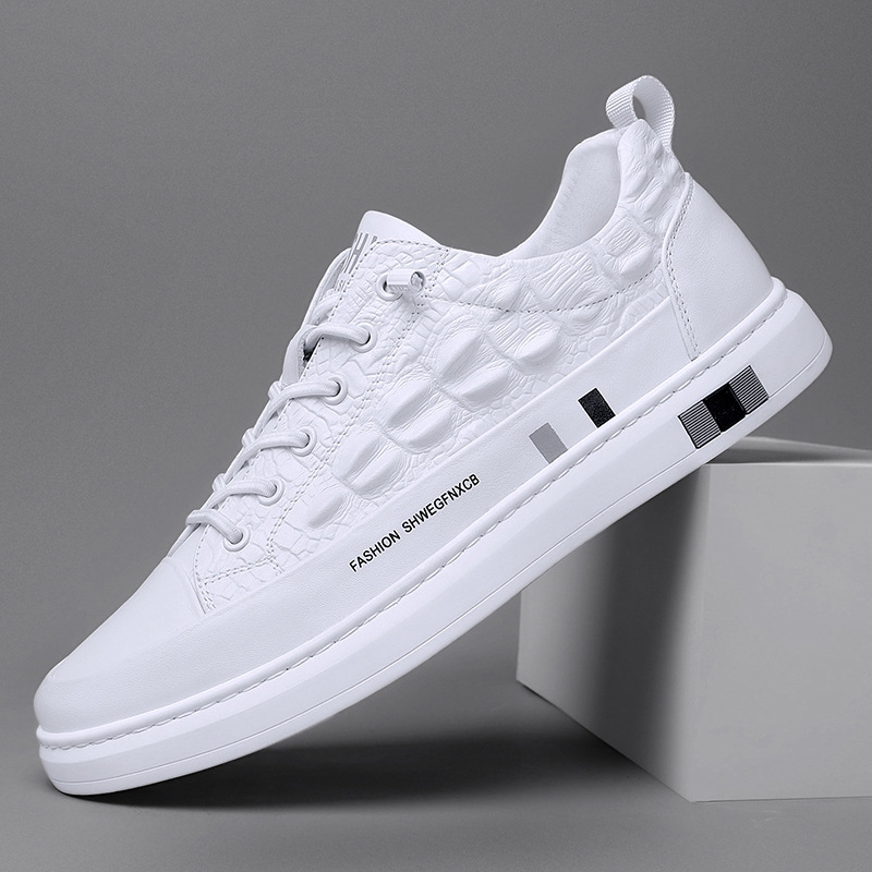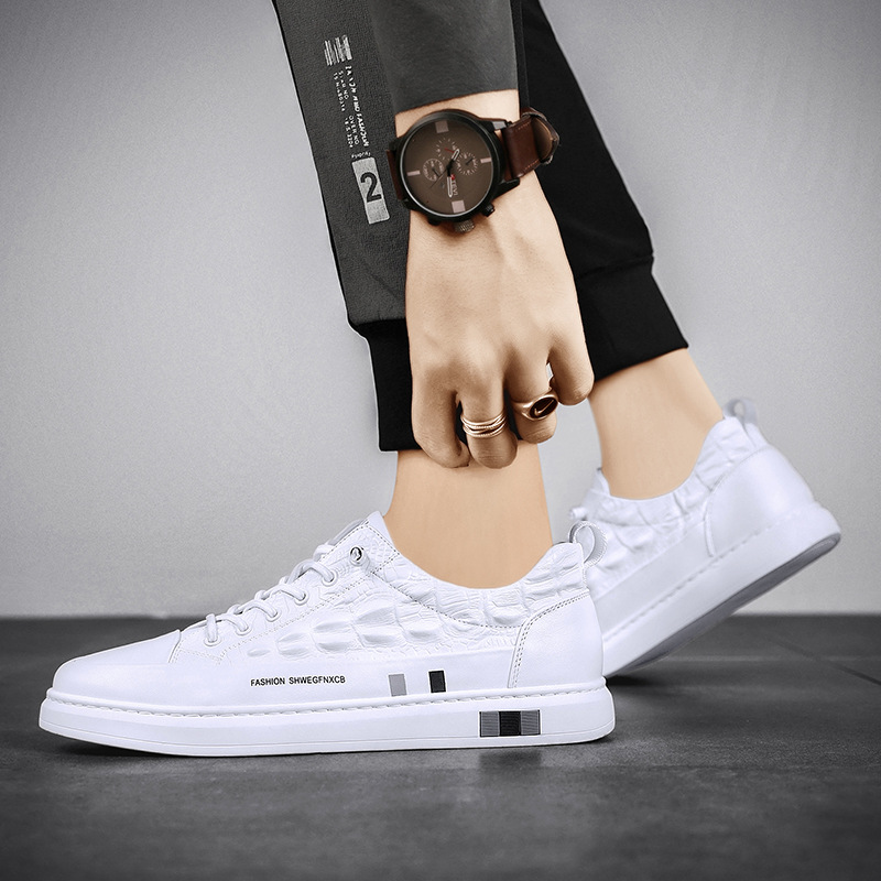 2021秋季新款欧洲站男鞋时尚潮流休闲板鞋鳄鱼纹潮鞋男士小白鞋男