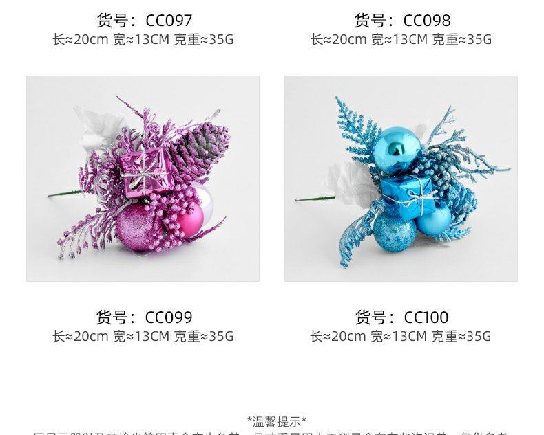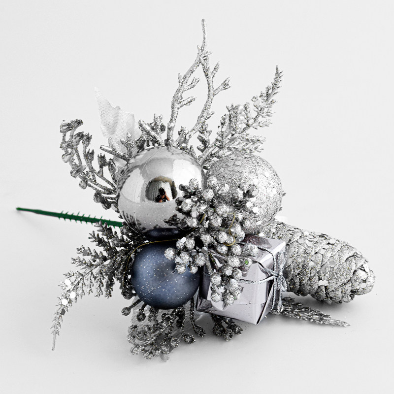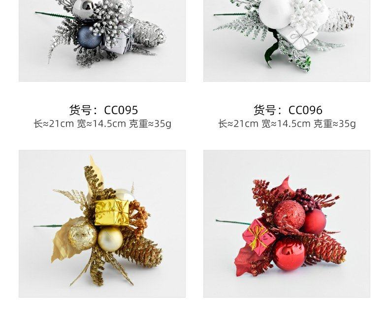 装饰圣诞树装饰品挂件20cm圣诞球云杉松果插枝圣诞节装饰花环藤条