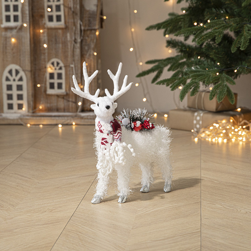 装饰圣诞节装饰品白色麋鹿公仔玩偶家用商场橱窗布置圣诞树摆件新