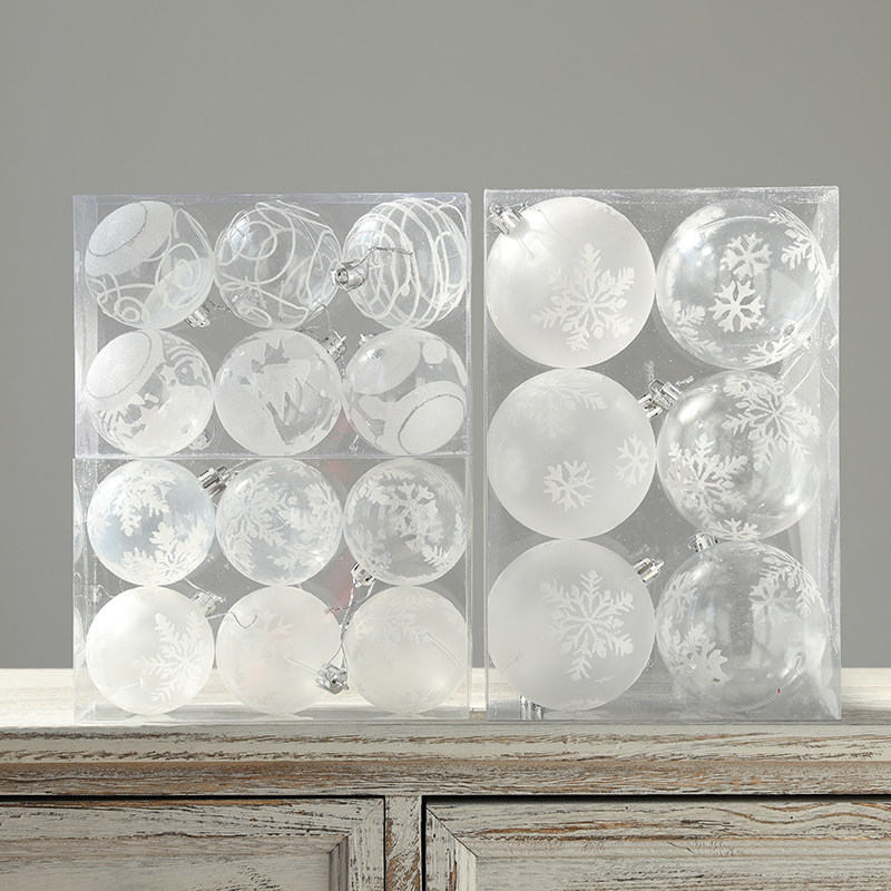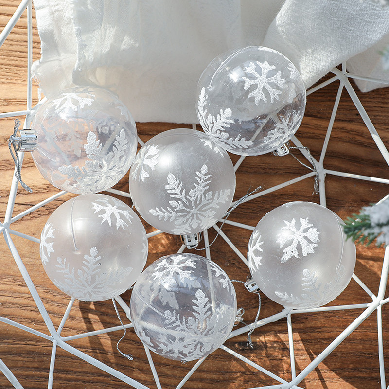 透明白色雪花塑料圣诞球圣诞树装饰挂件6个装节日装饰品布置