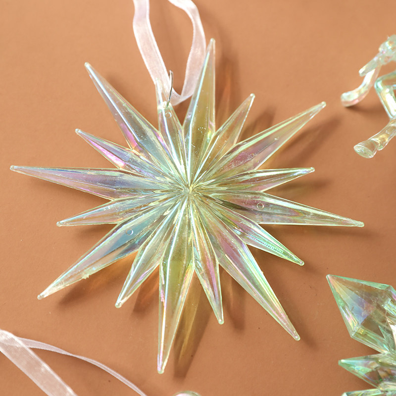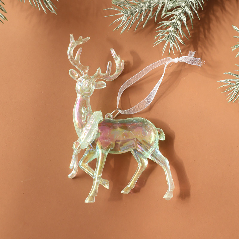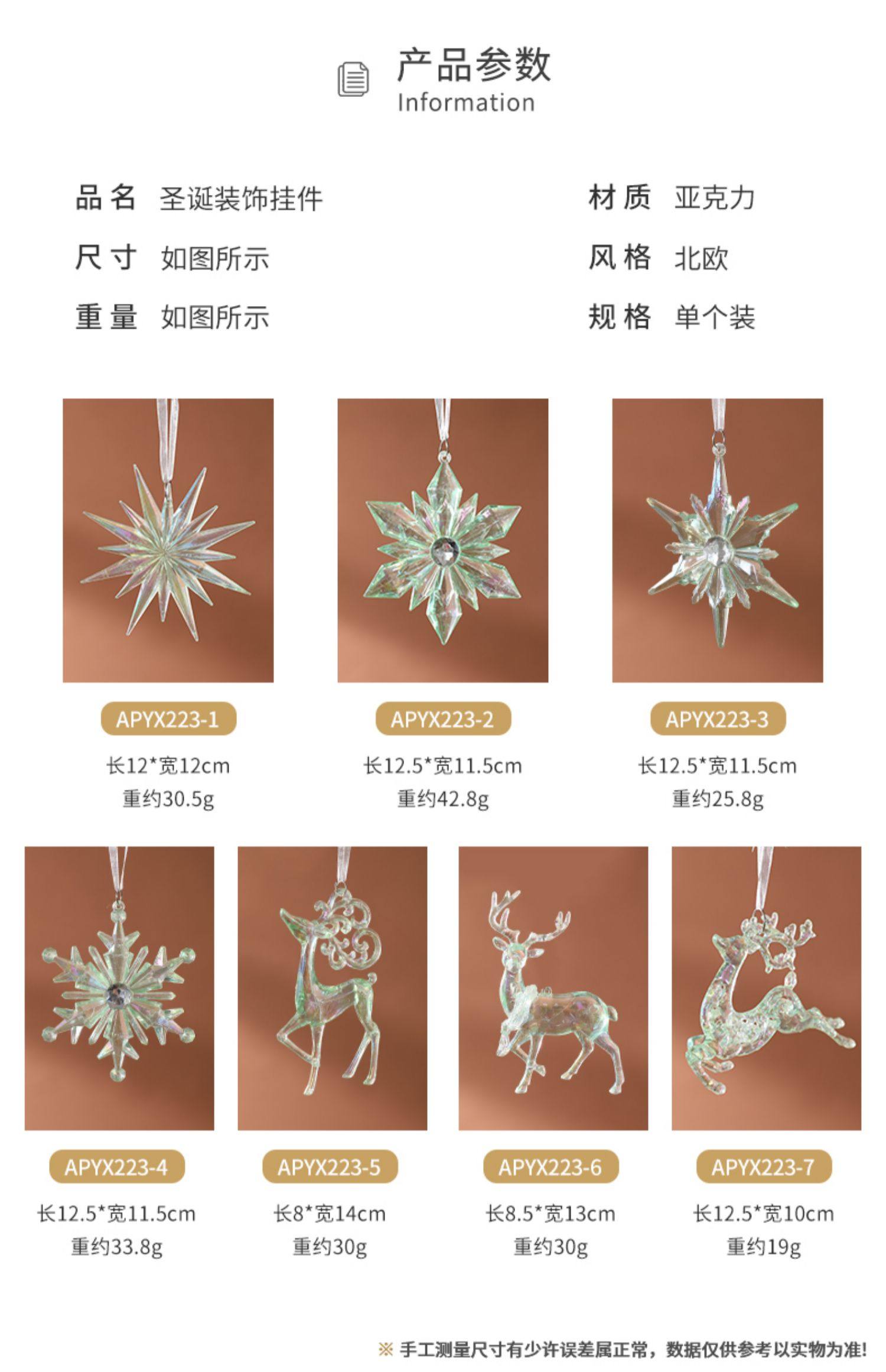 圣诞新款幻彩雪花片麋鹿装饰挂件透明亚克力DIY装饰品