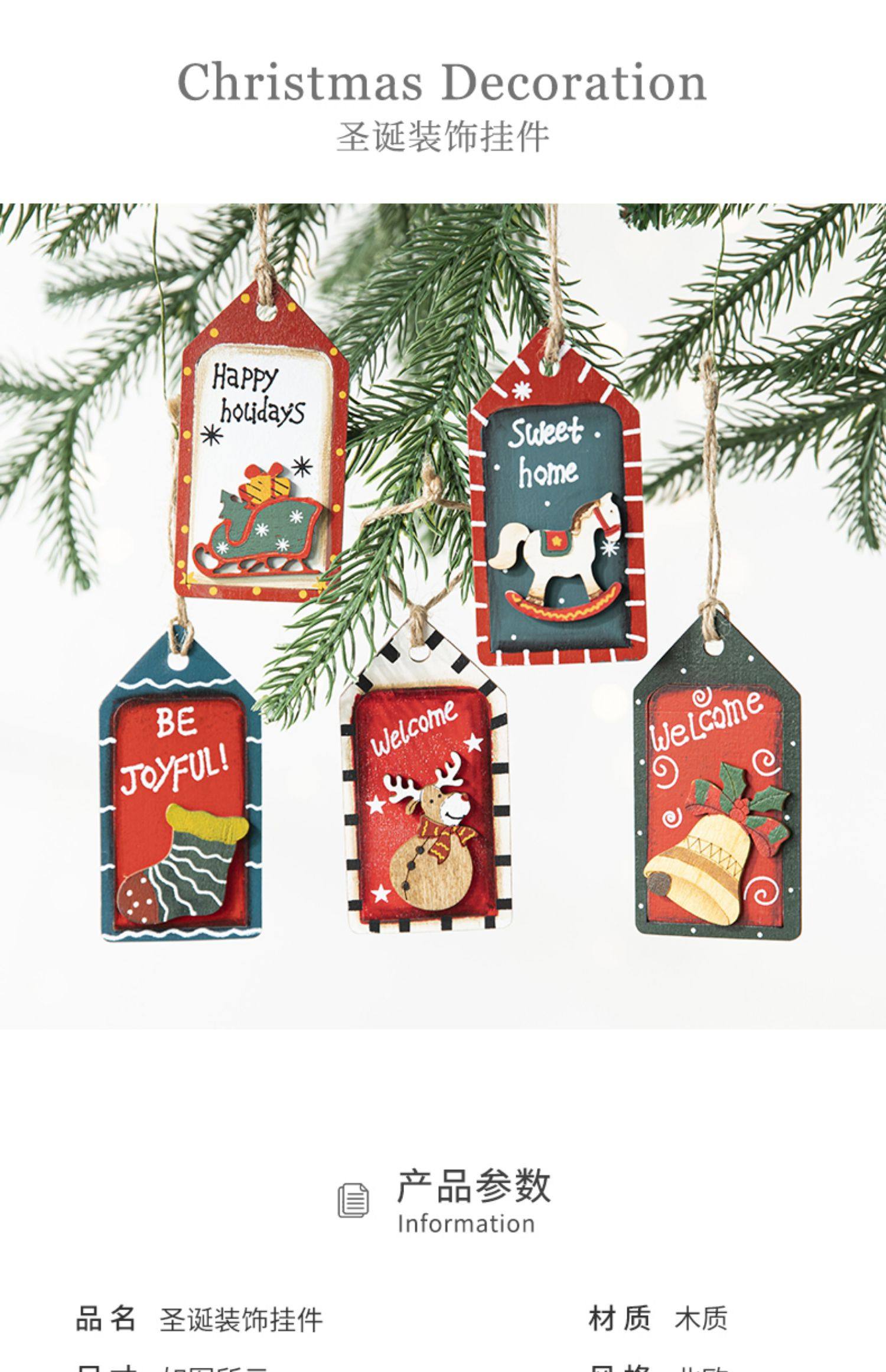 圣诞节装饰木质工作牌挂件 圣诞树装饰品北欧网红创意挂饰