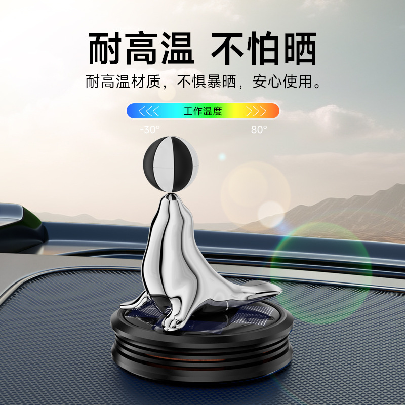 车载太阳能香薰2025新款旋转海狮中控台高档摆件车内持久清香除味