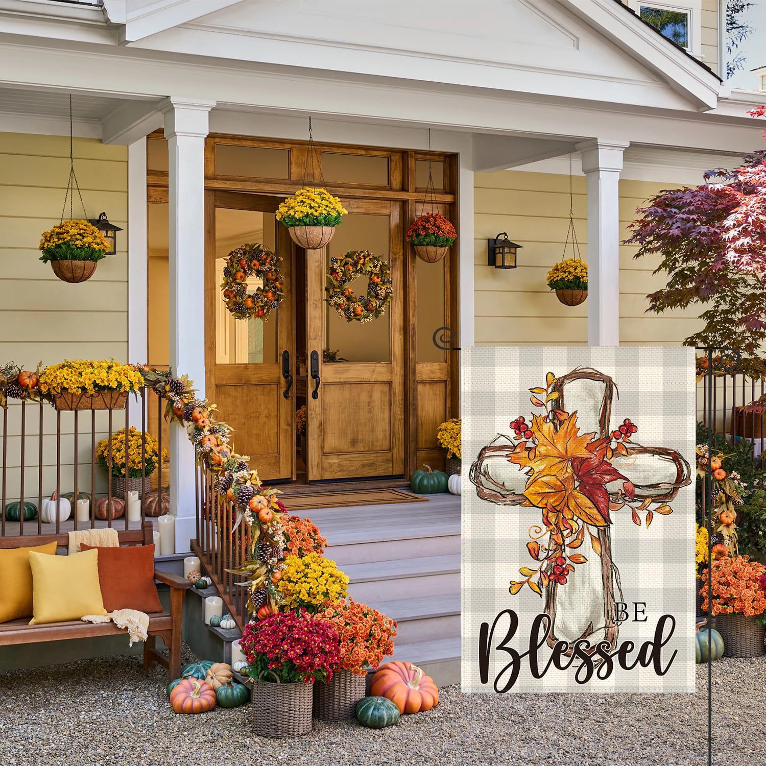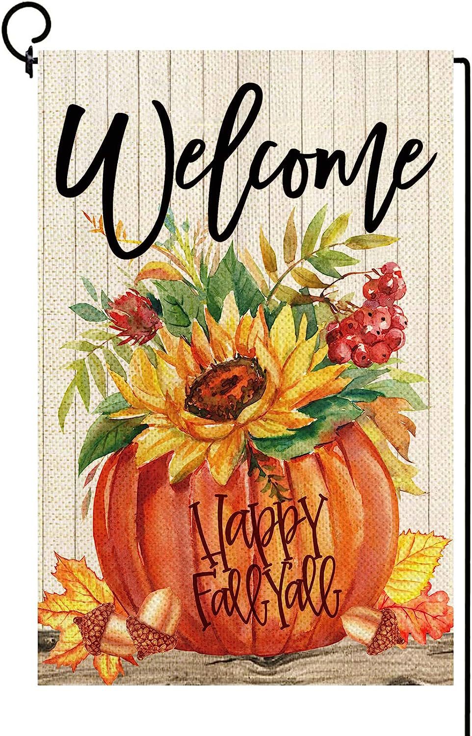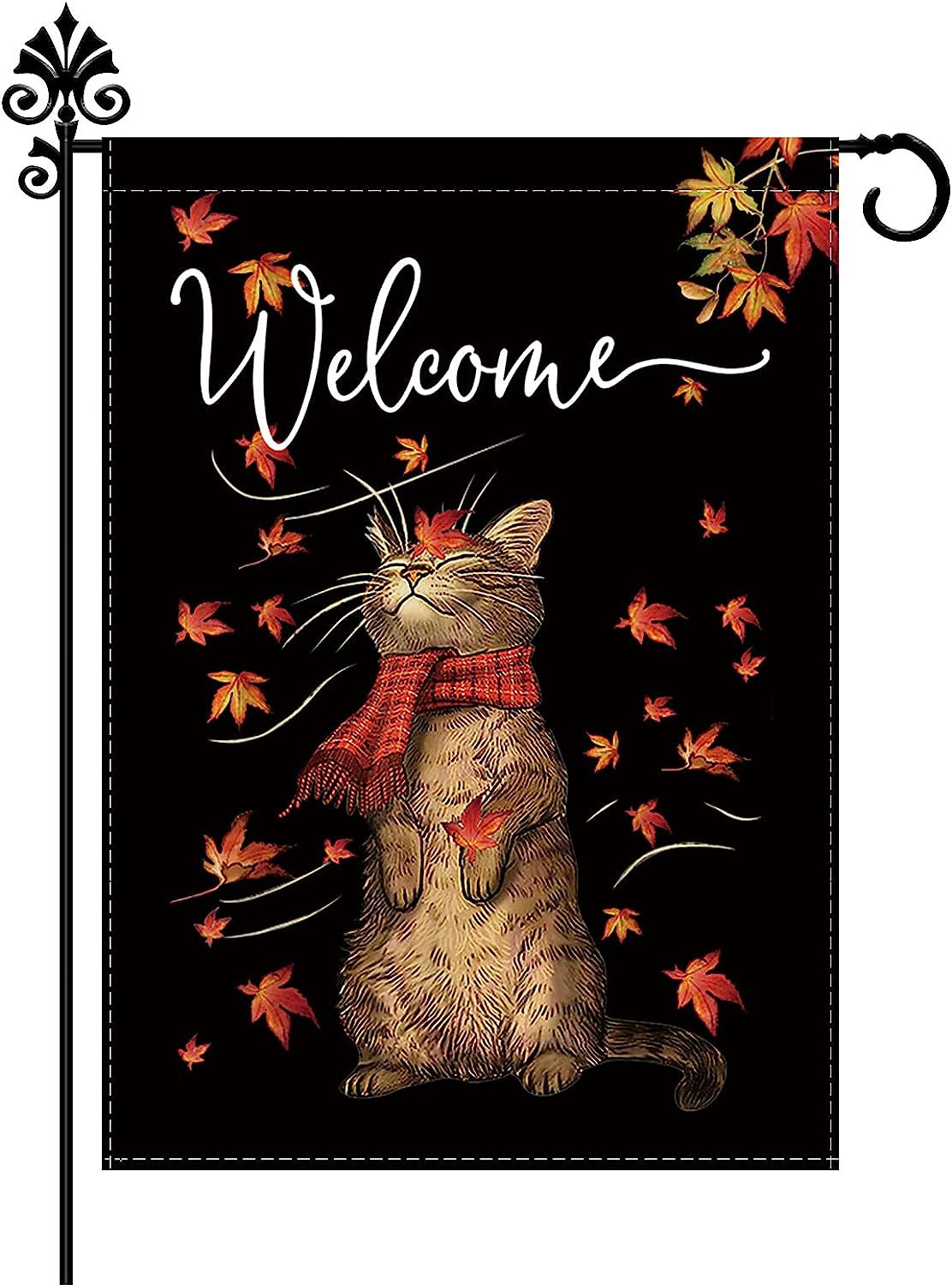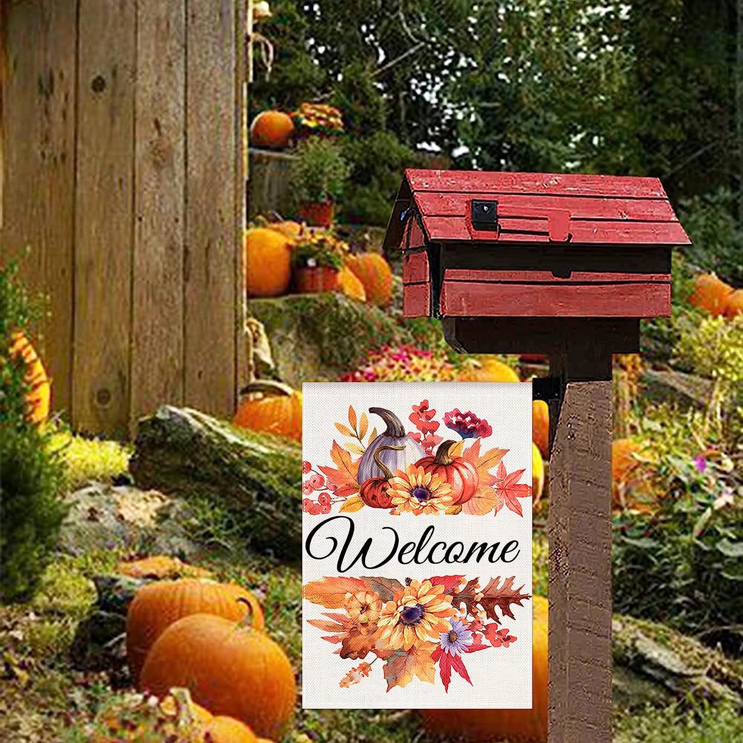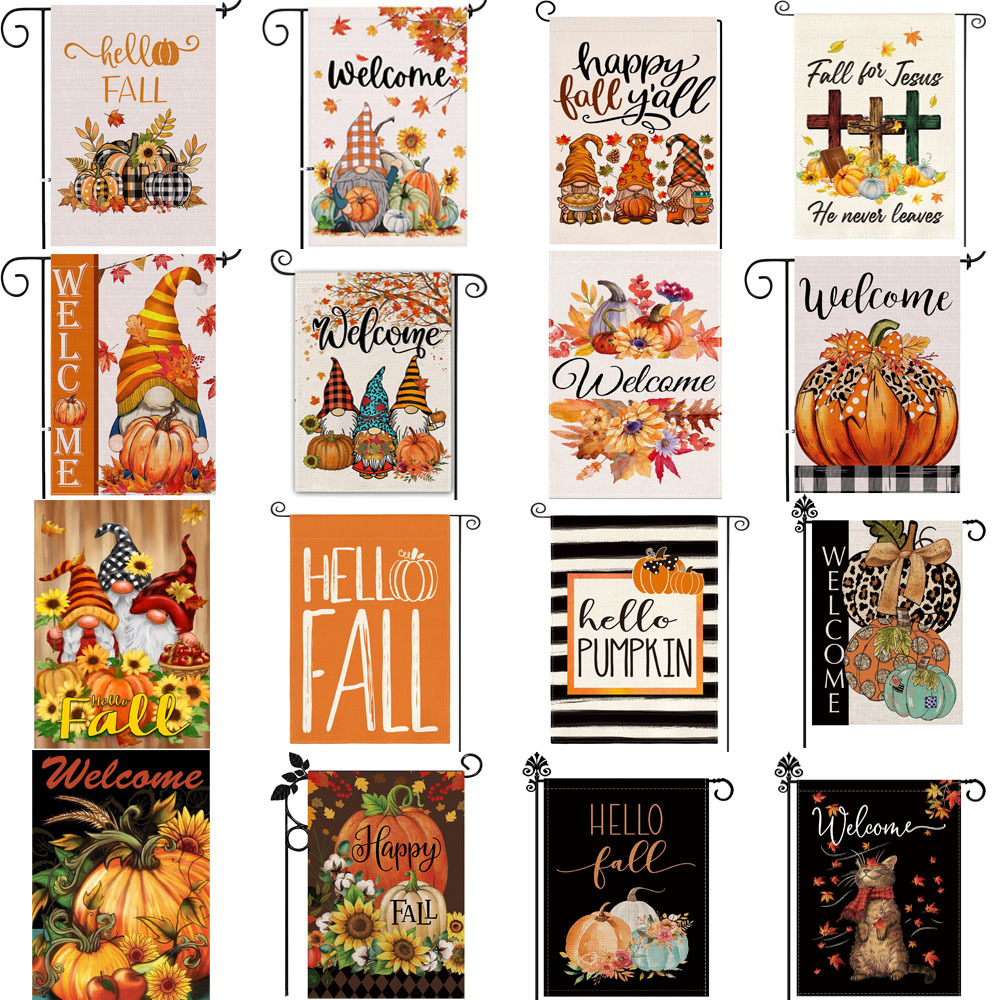 秋季感恩节户外庭院装饰亚麻花园旗节日氛围南瓜枫叶双面印花旗帜