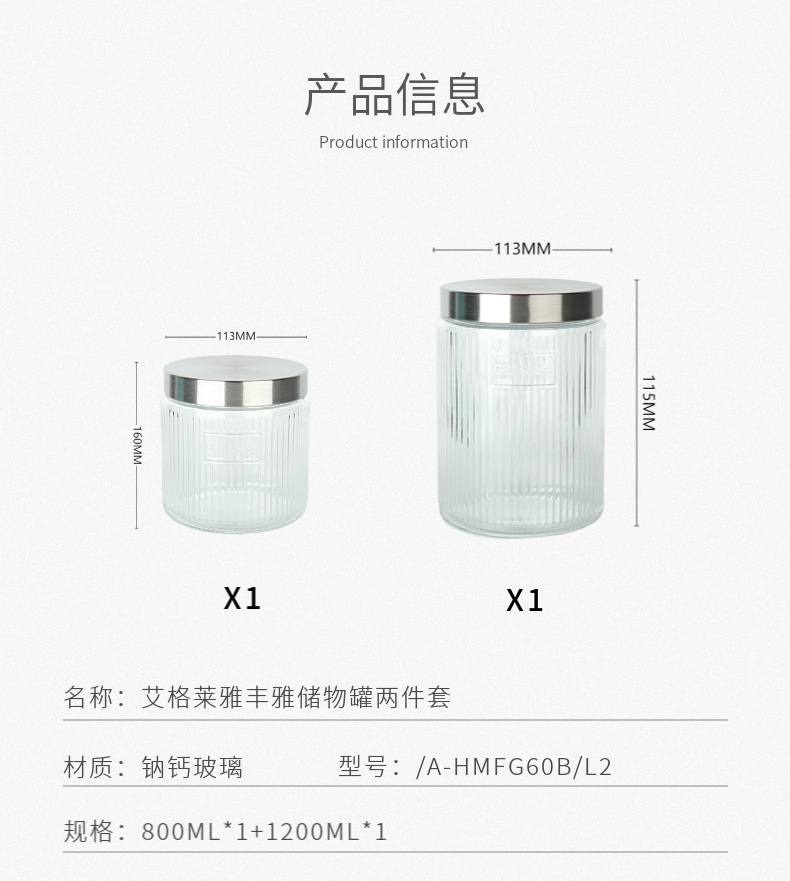 艾格莱雅丰雅储物罐HMFG30B收纳干果花茶伴手礼玻璃密封罐