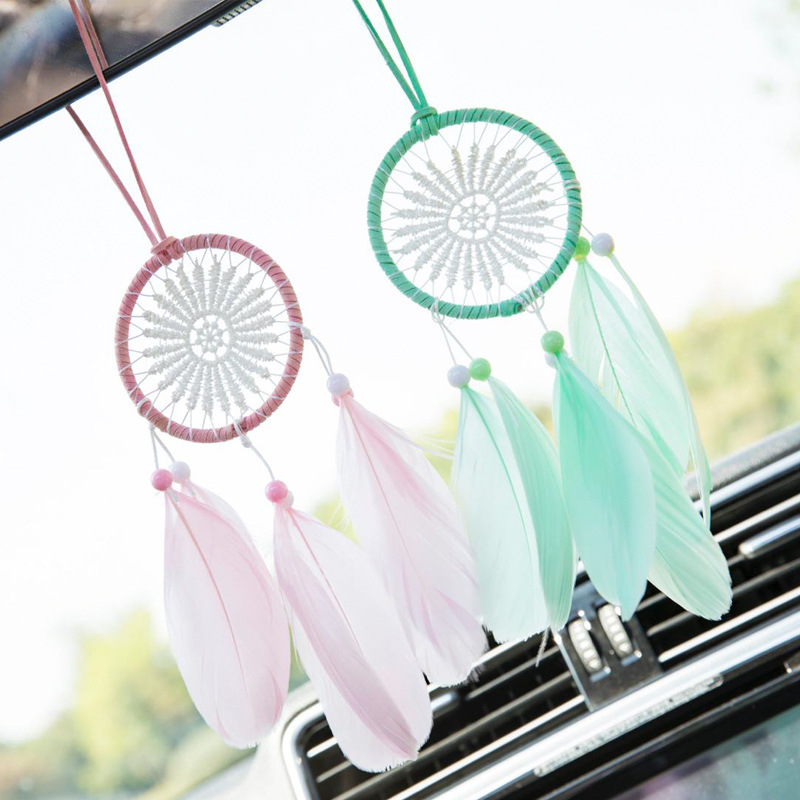 手工制作印第安羽毛扑捕梦网汽车挂饰多色成品时尚装饰车挂饰现货