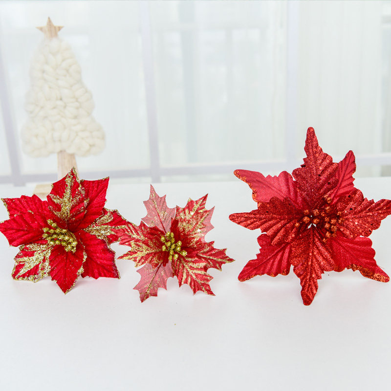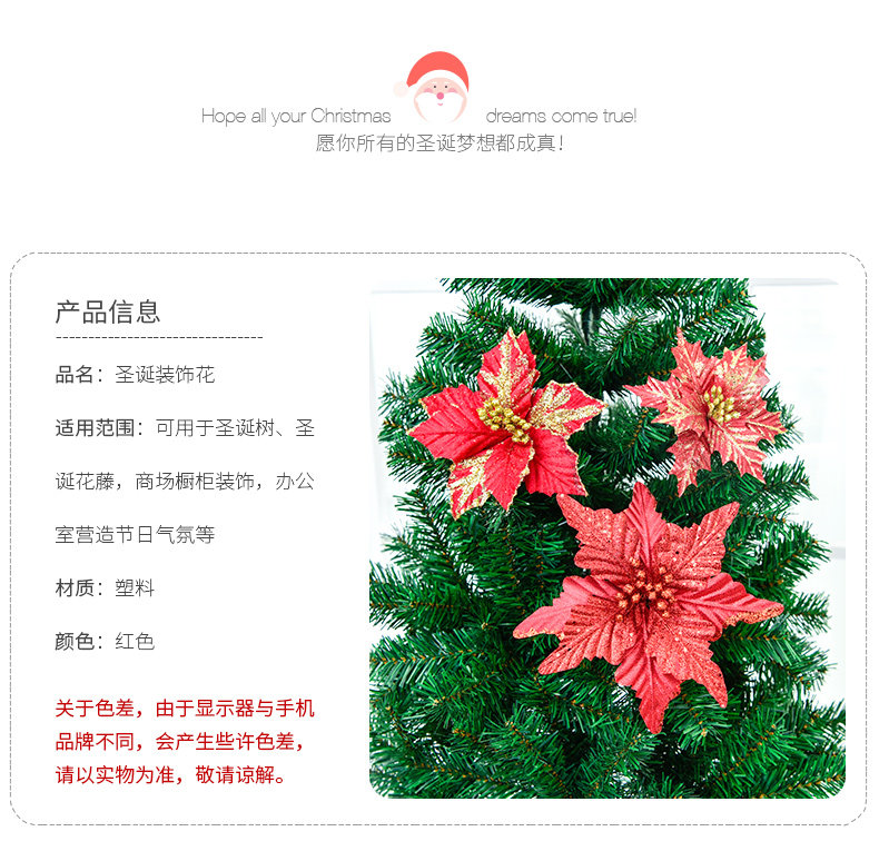 装饰圣诞树装饰品圣诞树装饰挂件红色大号圣诞花圣诞派对装饰品