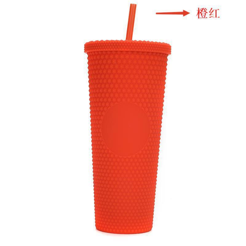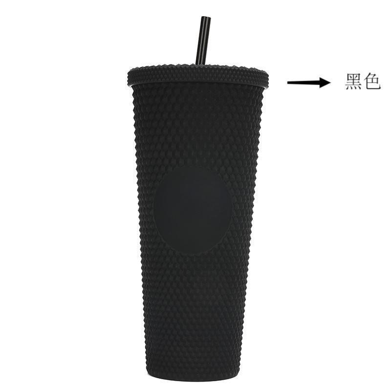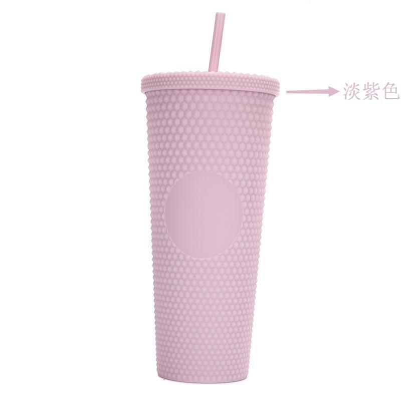 双层塑料吸管杯大容量创意710ml榴莲杯扎手杯便携钻石杯