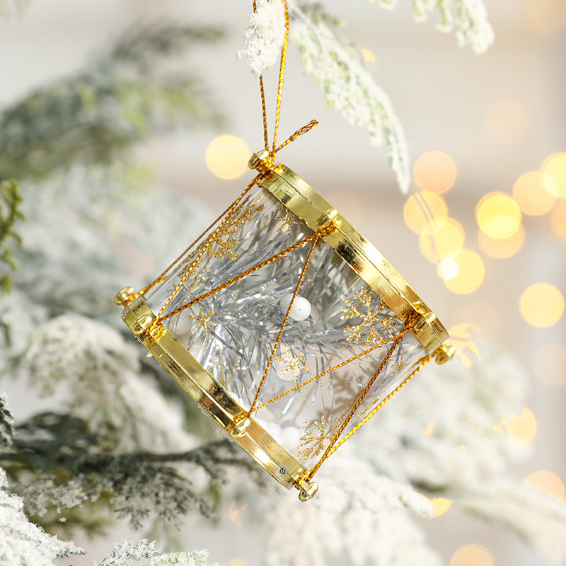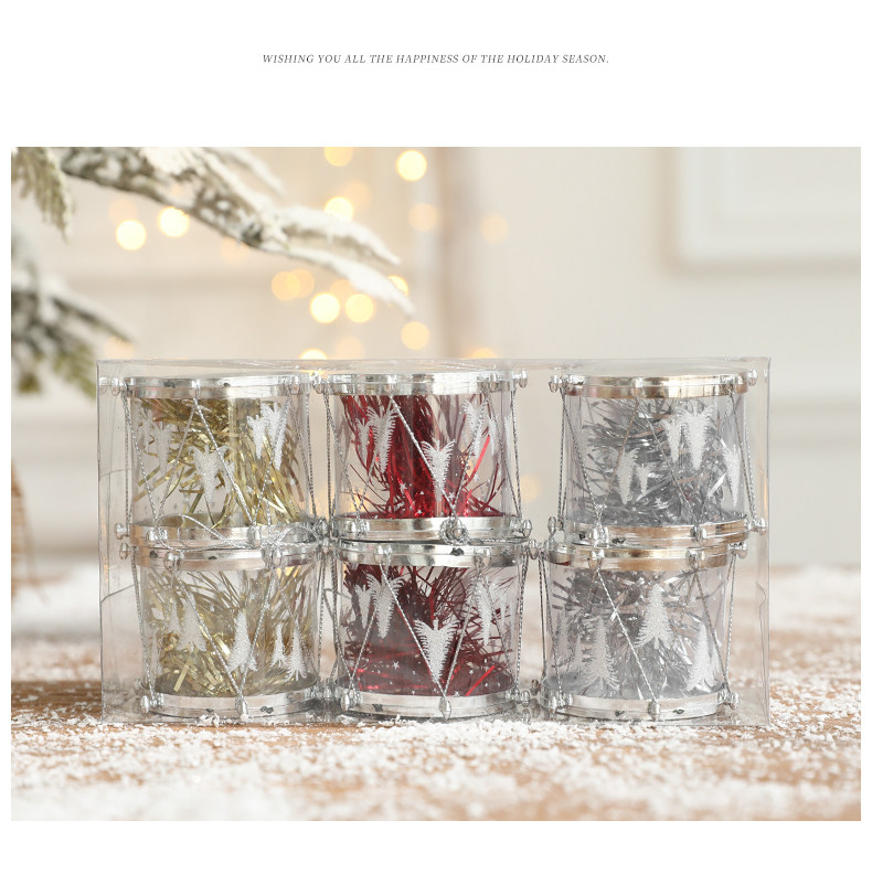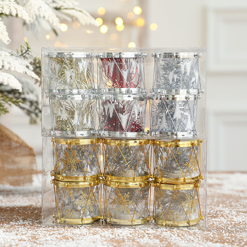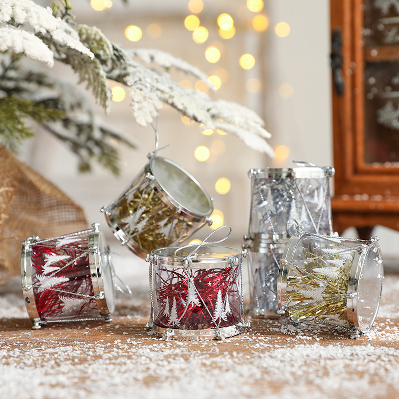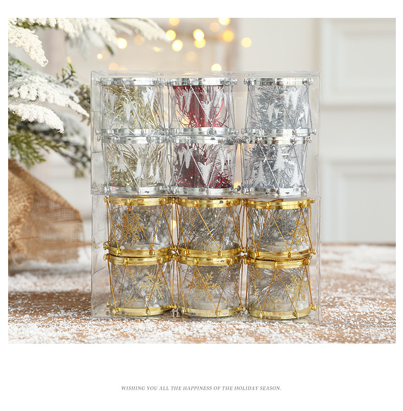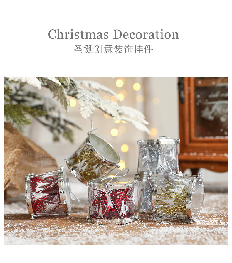 新品圣诞小鼓装饰用品塑料小鼓圣诞挂件圣诞节礼品场地布置道具