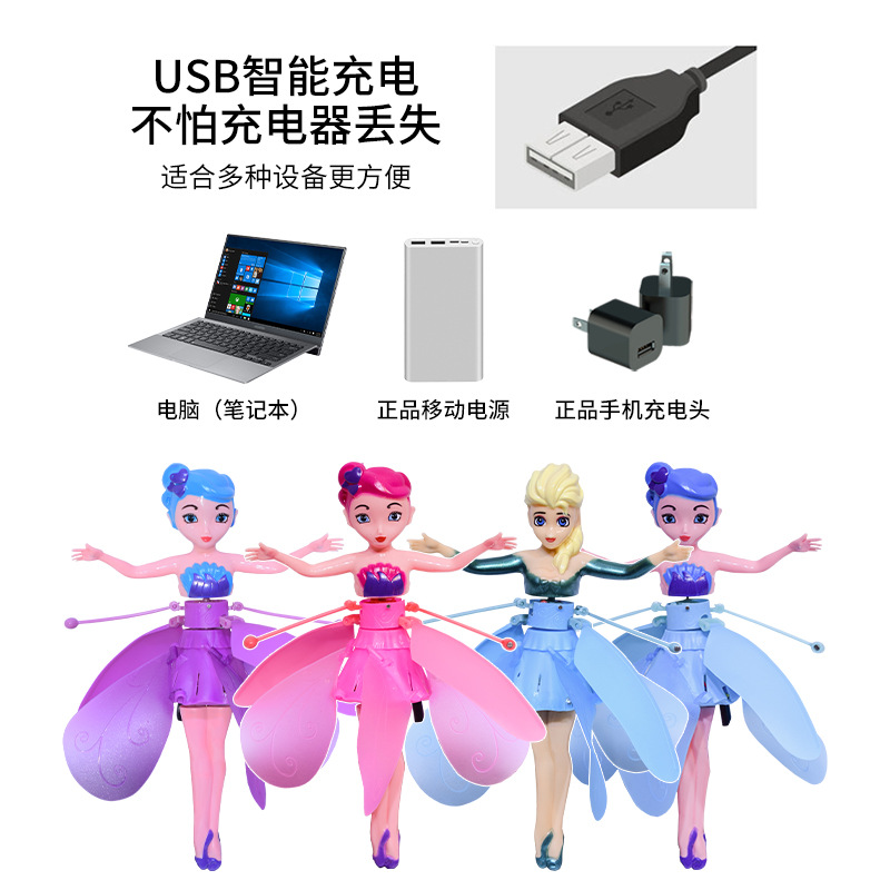 抖音同款冰雪小飞仙悬浮发光会飞天小仙女感应飞行器玩具批发跨境