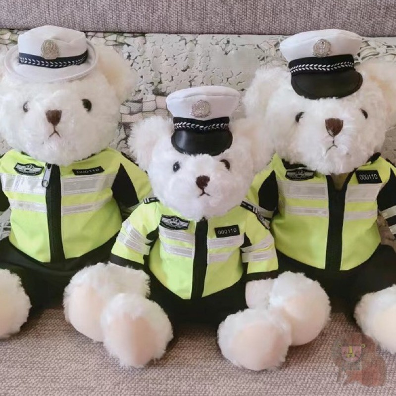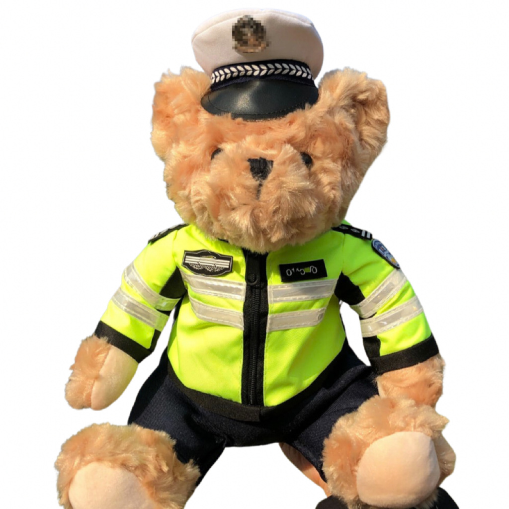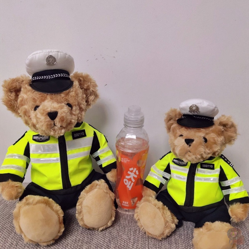警察小熊玩偶抖音同款机车铁骑交警反光骑行服公仔泰迪熊礼物礼品