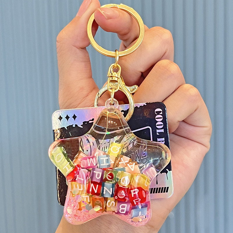 创意骰子亚克力钥匙扣流沙瓶挂件扣小礼物赠送包包入油挂件水晶杯