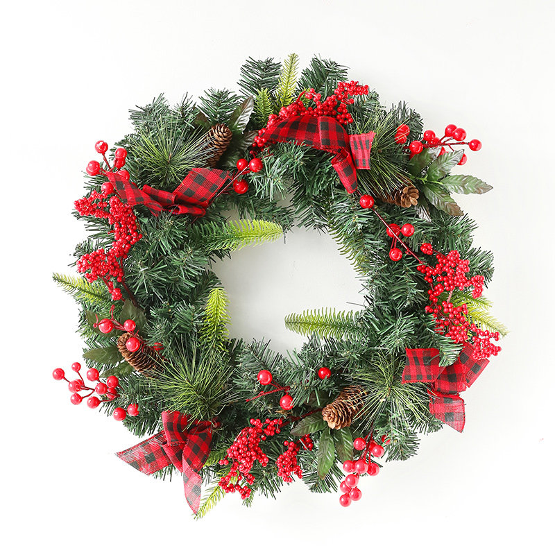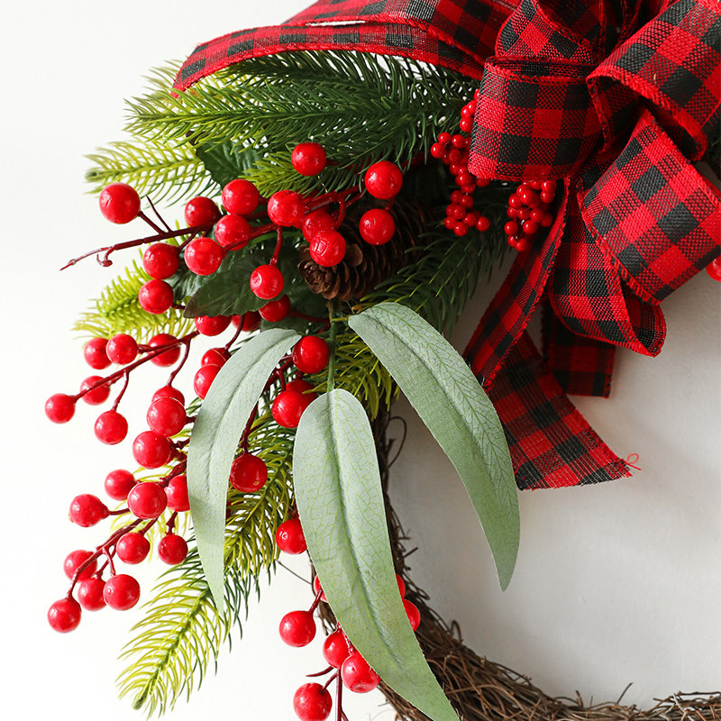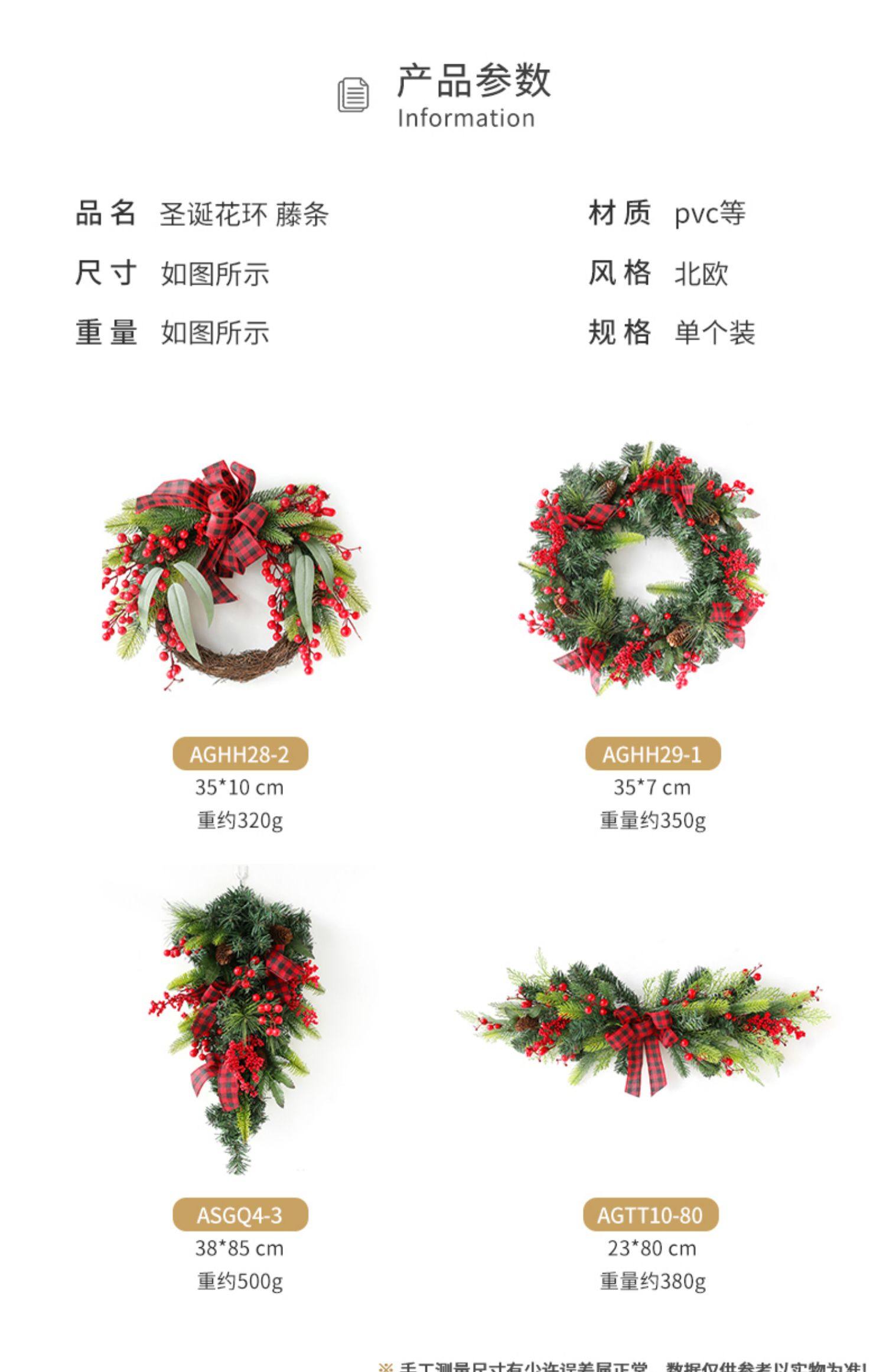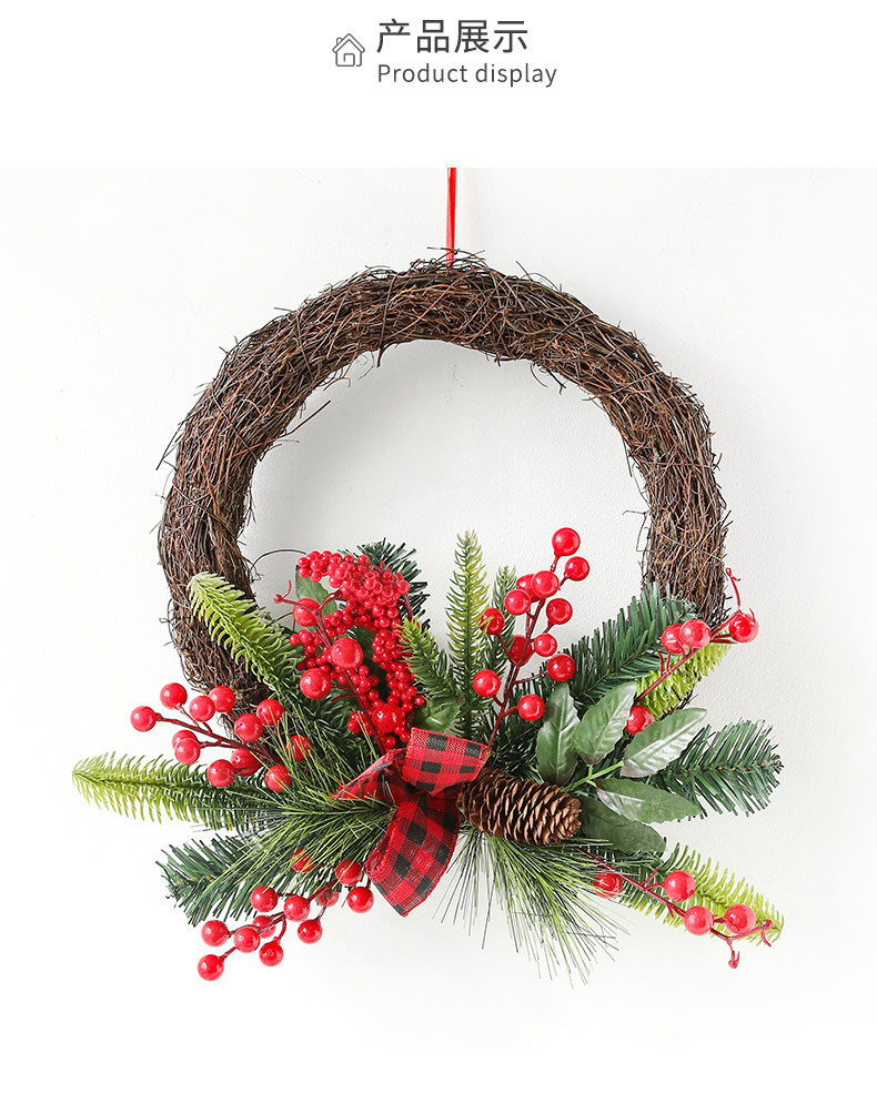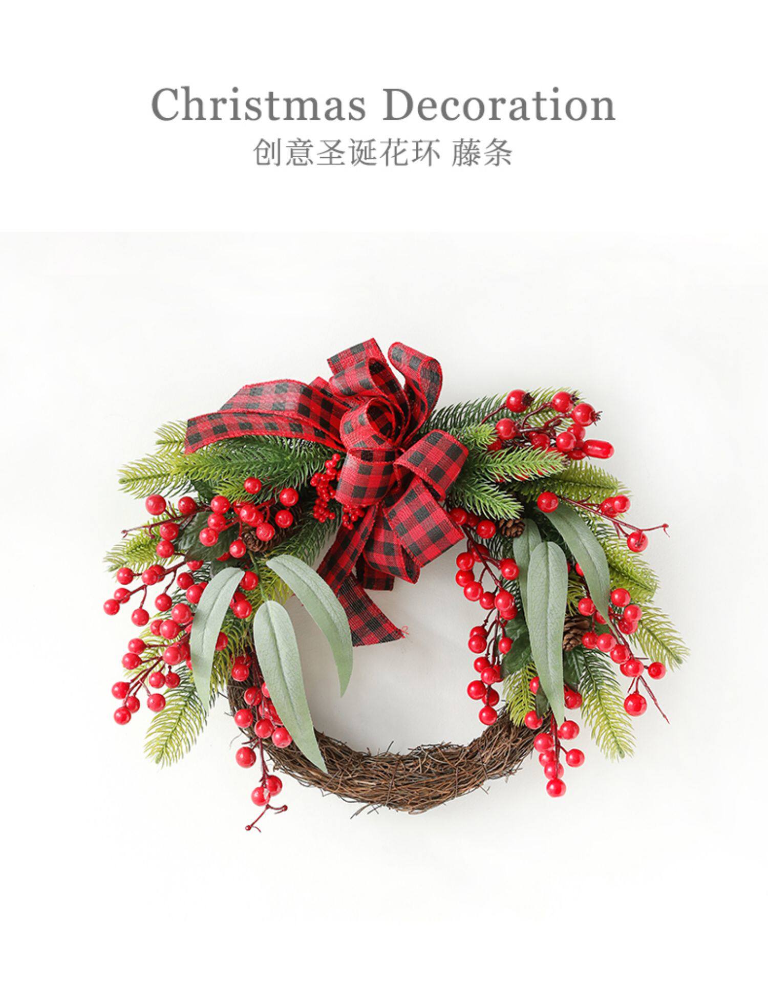 圣诞装饰红果花环藤圈挂件花圈门挂用品圣诞节装饰品装扮场景布置