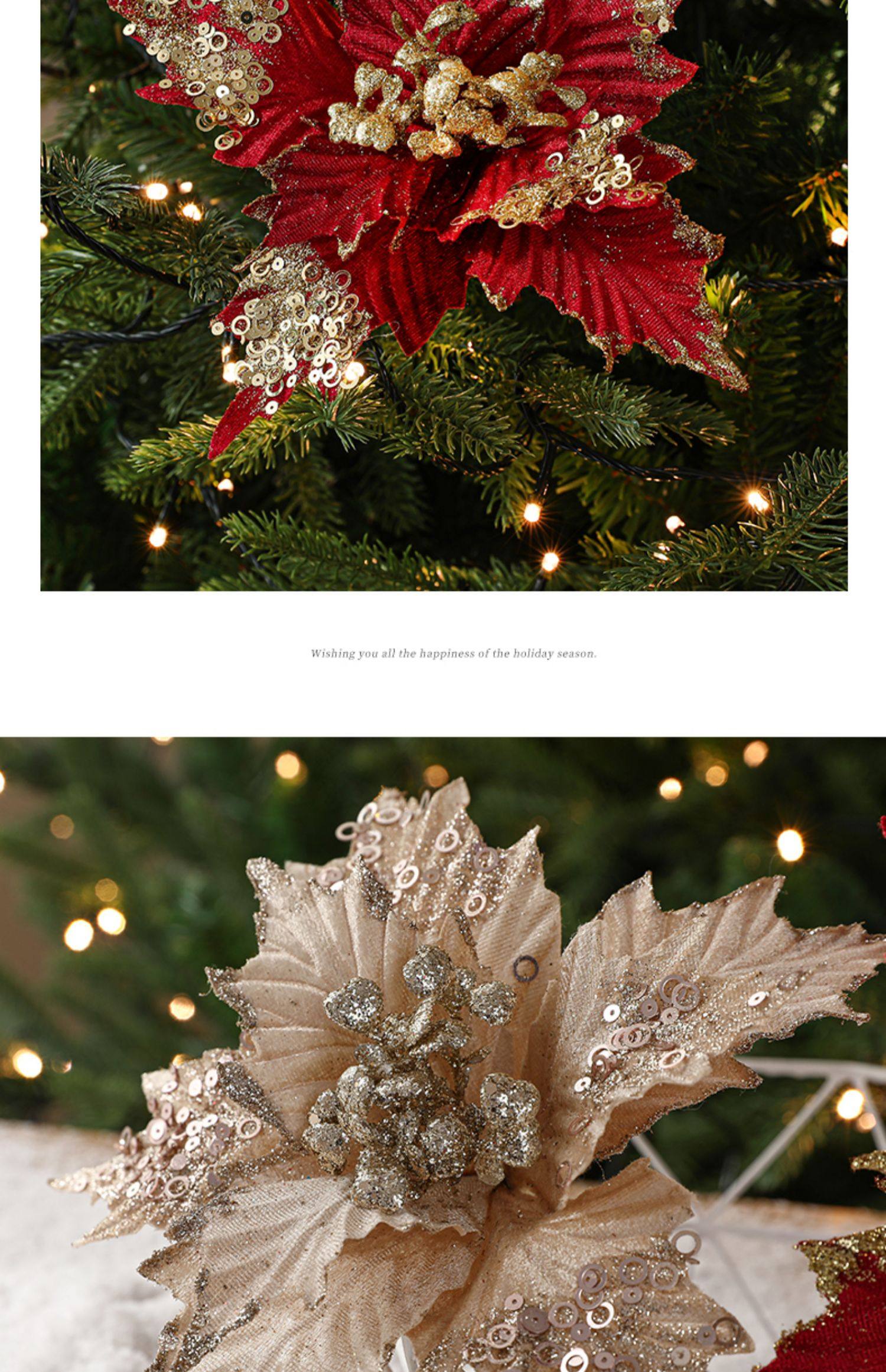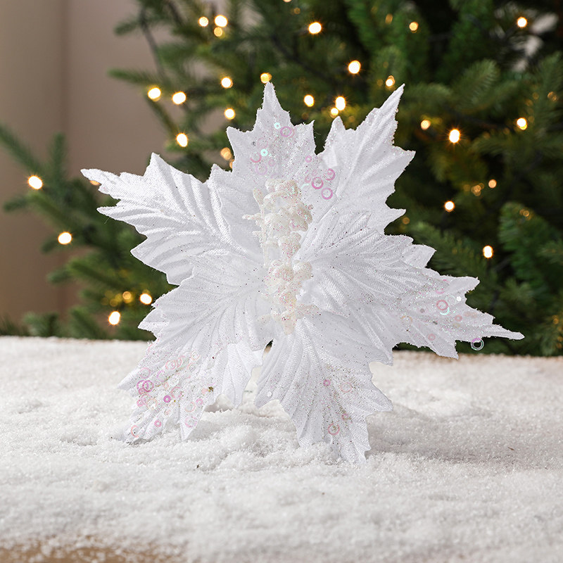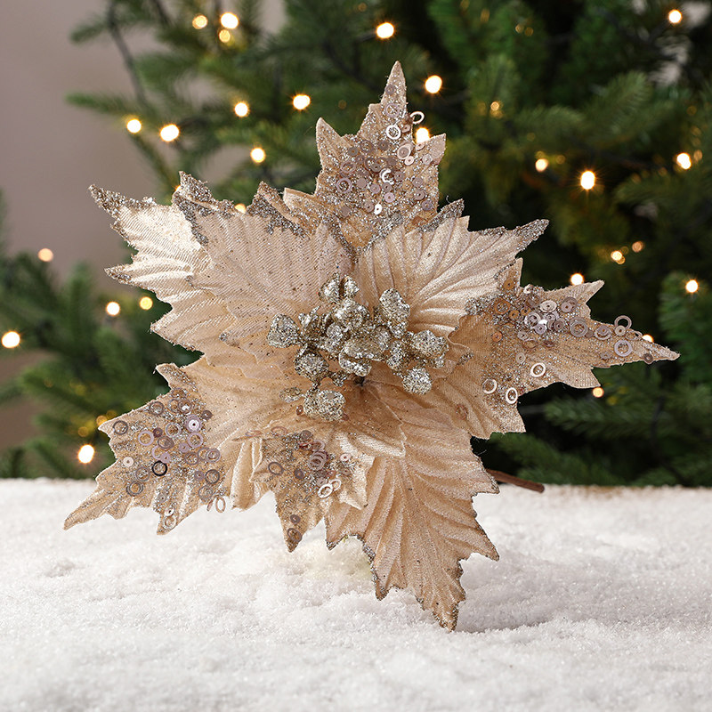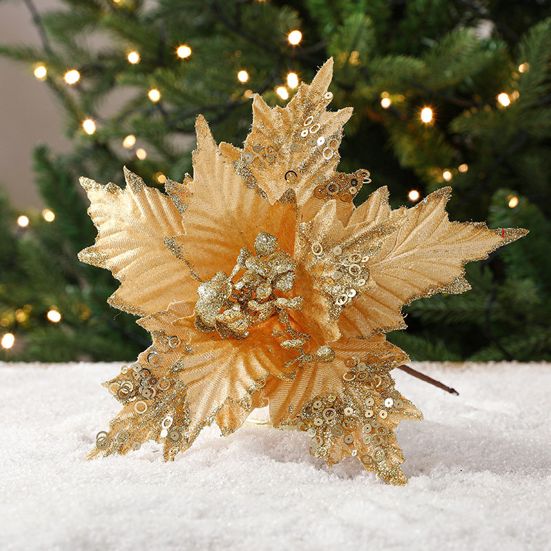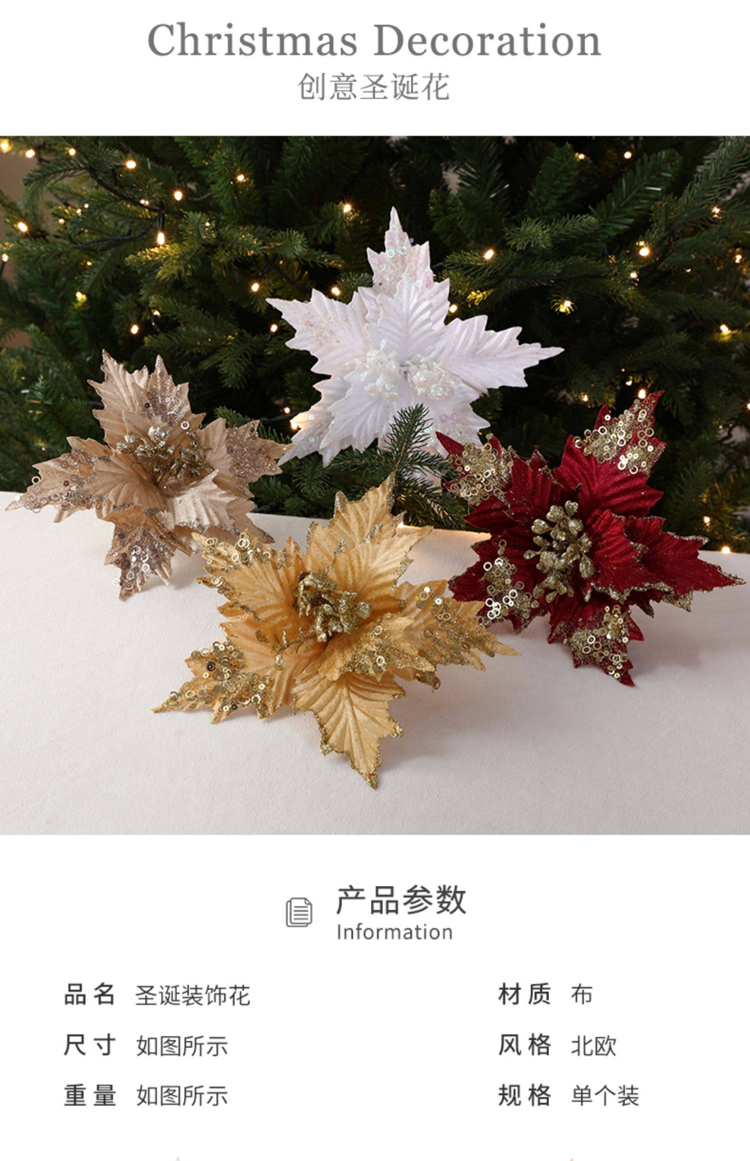 圣诞节26cm金色白色红色亮片绒布仿真圣诞花DIY插枝叶装饰品