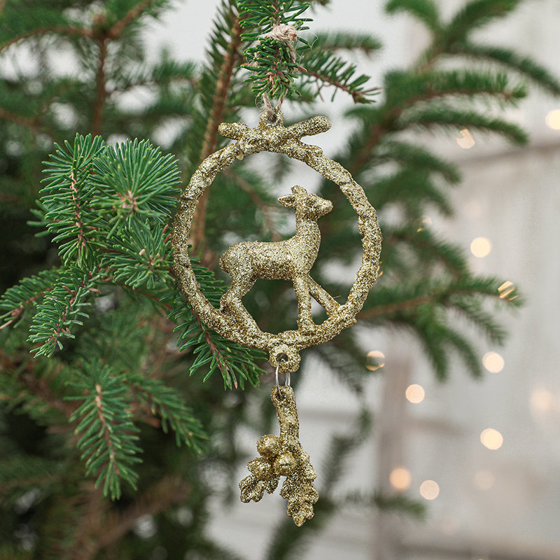 港恒圣诞新款白色金色麋鹿树脂挂件圣诞树装饰品北欧风装饰布置