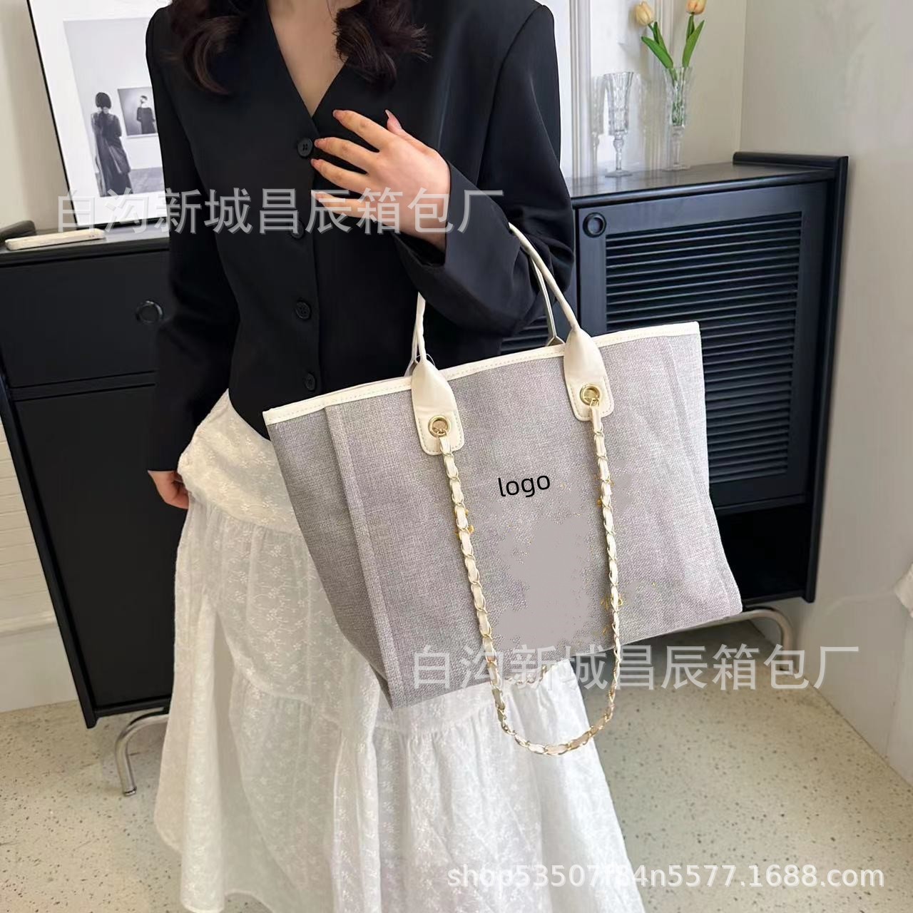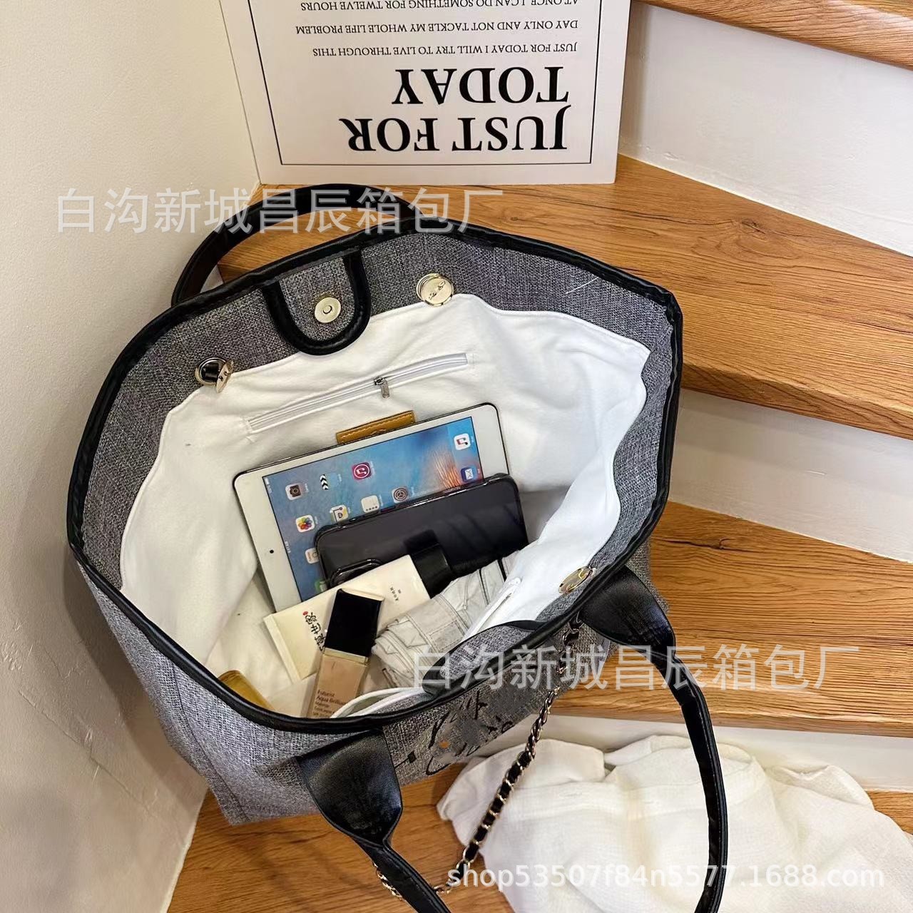 2023夏季新款小香风托特包高颜值手提单肩包时尚大容量斜跨帆布包