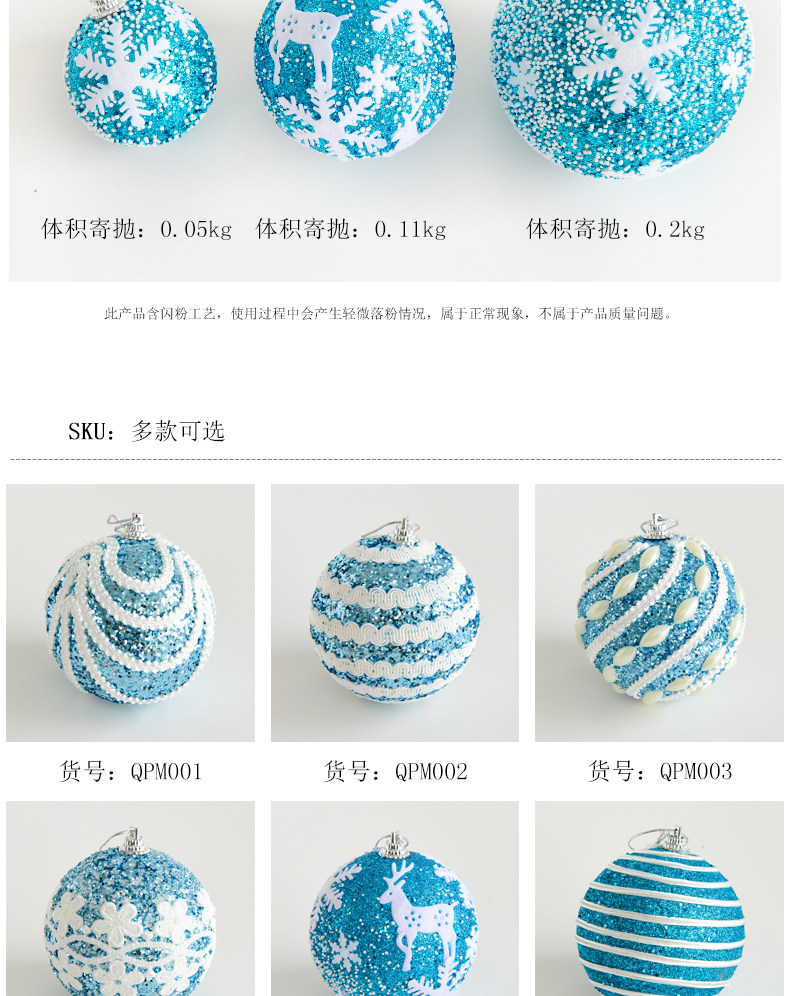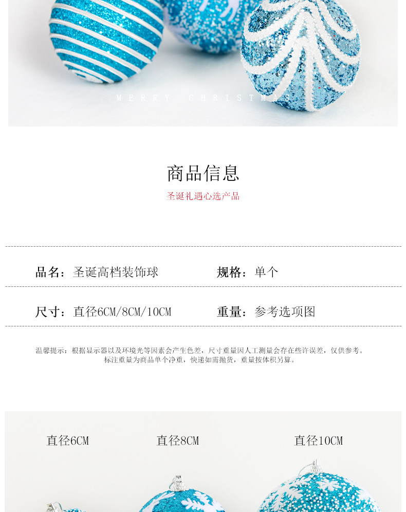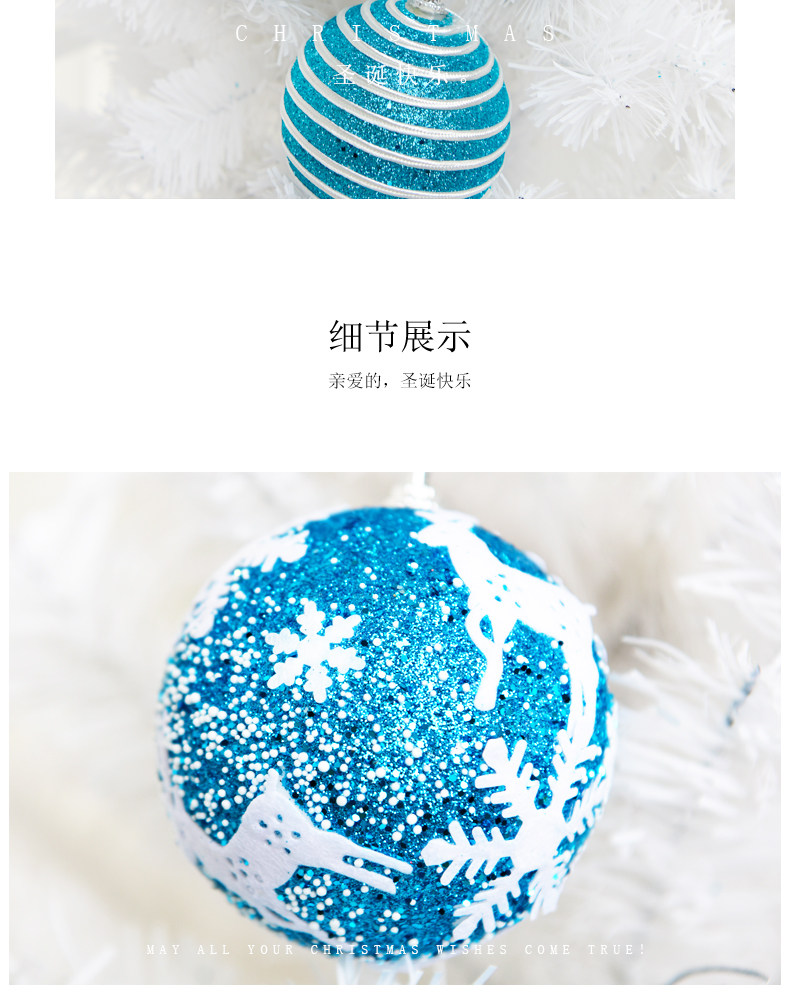 圣诞球 装饰吊球蓝色8cm泡沫球圣诞树装饰挂件圣诞节装饰场景布置