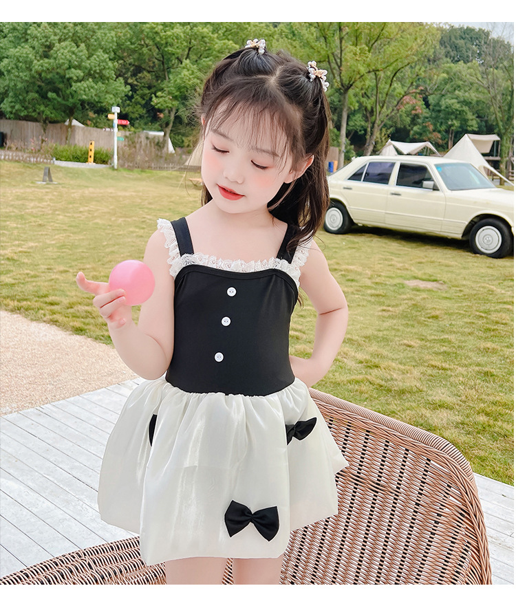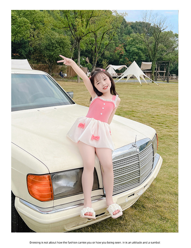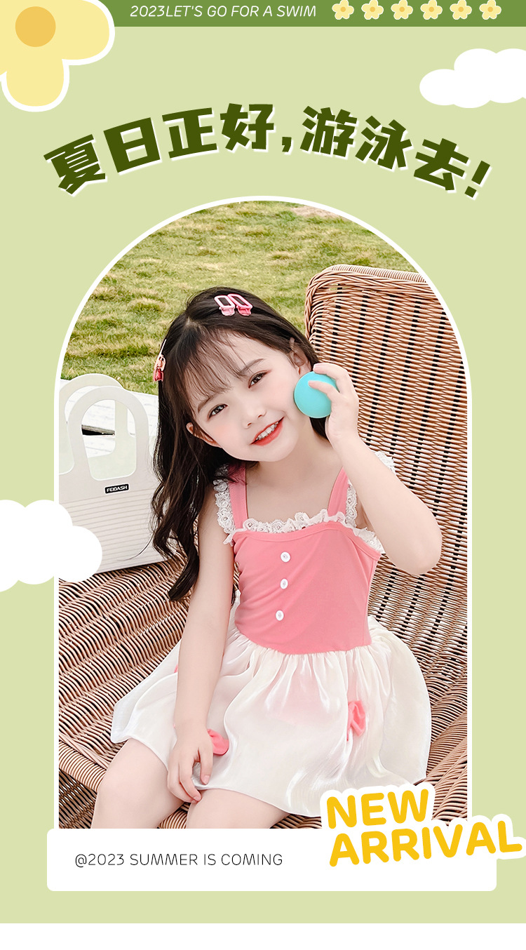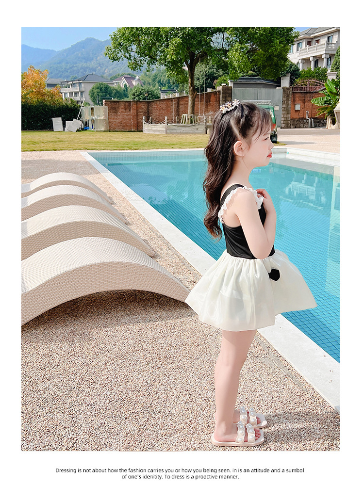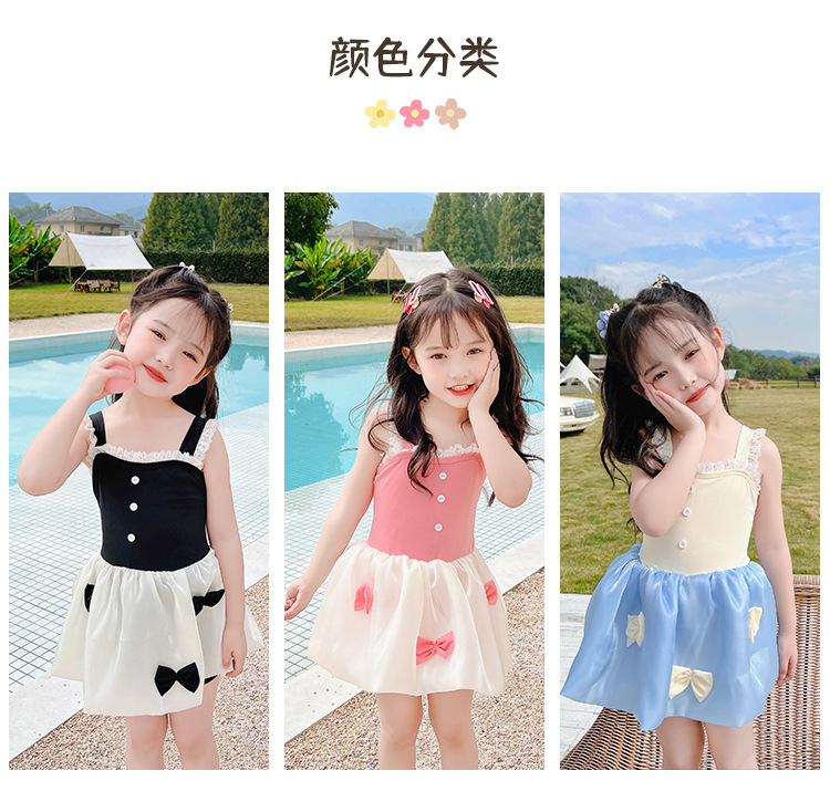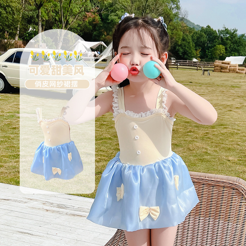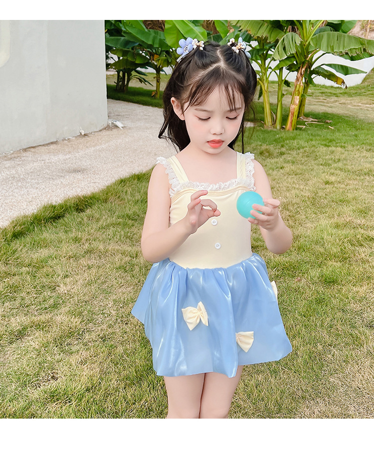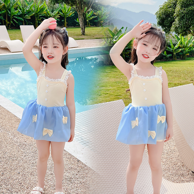 儿童泳衣连体女孩夏2023年新款可爱蓬蓬裙公主蝴蝶结小童度假泳装