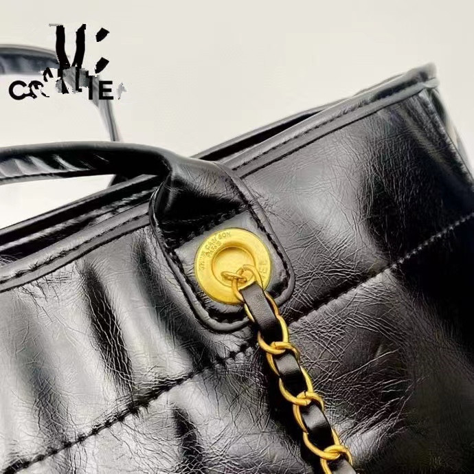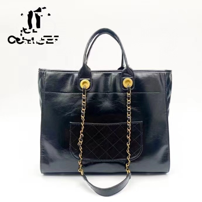 外贸小香油蜡皮包复古褶皱斜挎包网红同款链条沙滩包洋气百搭