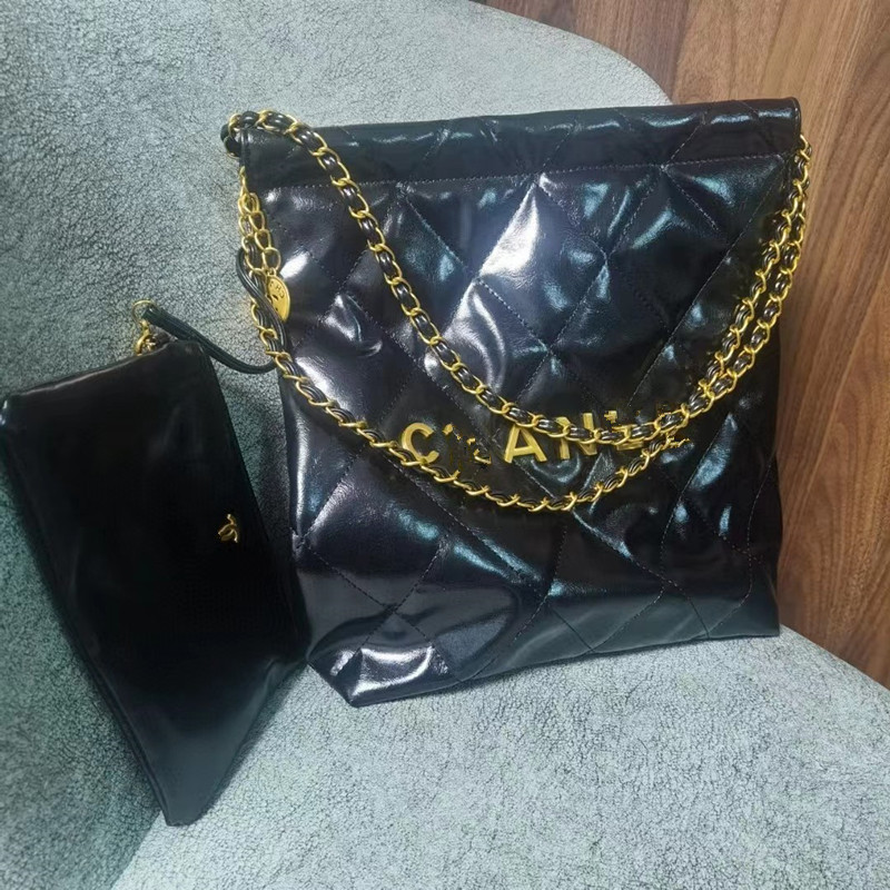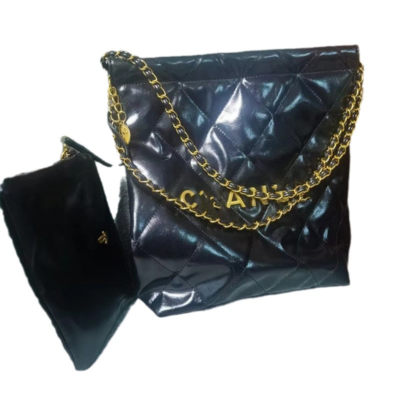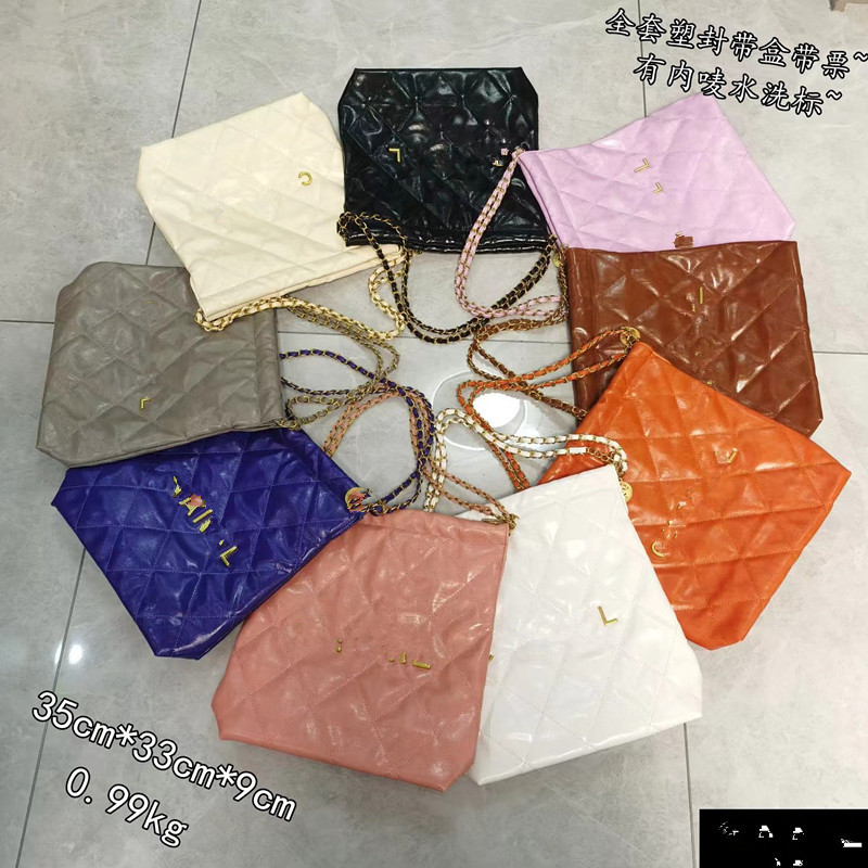 外贸小香包包垃圾袋大号托特油蜡皮大容量链条购物袋菱格包礼盒装