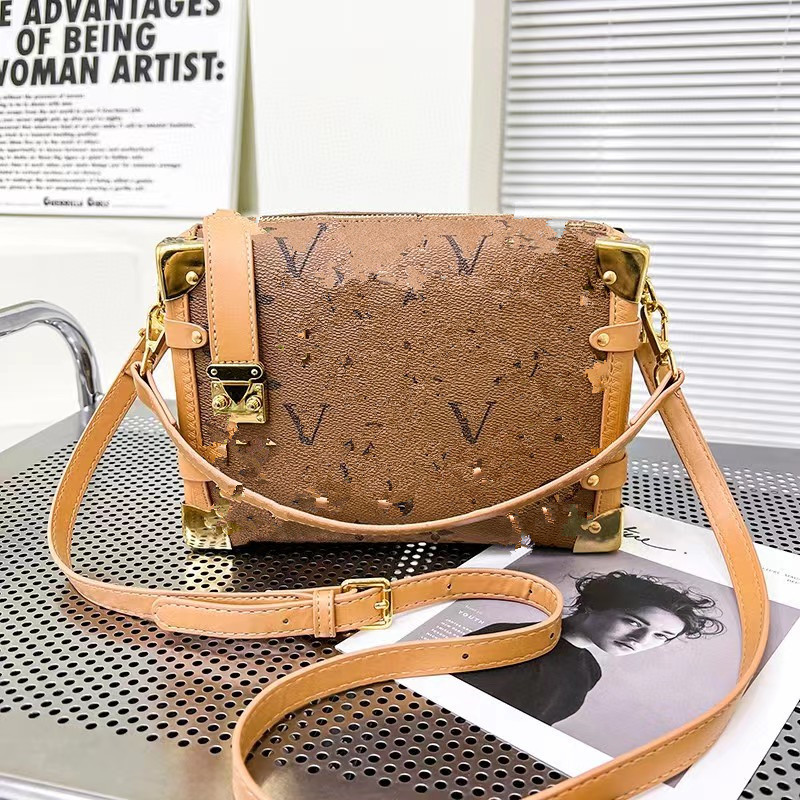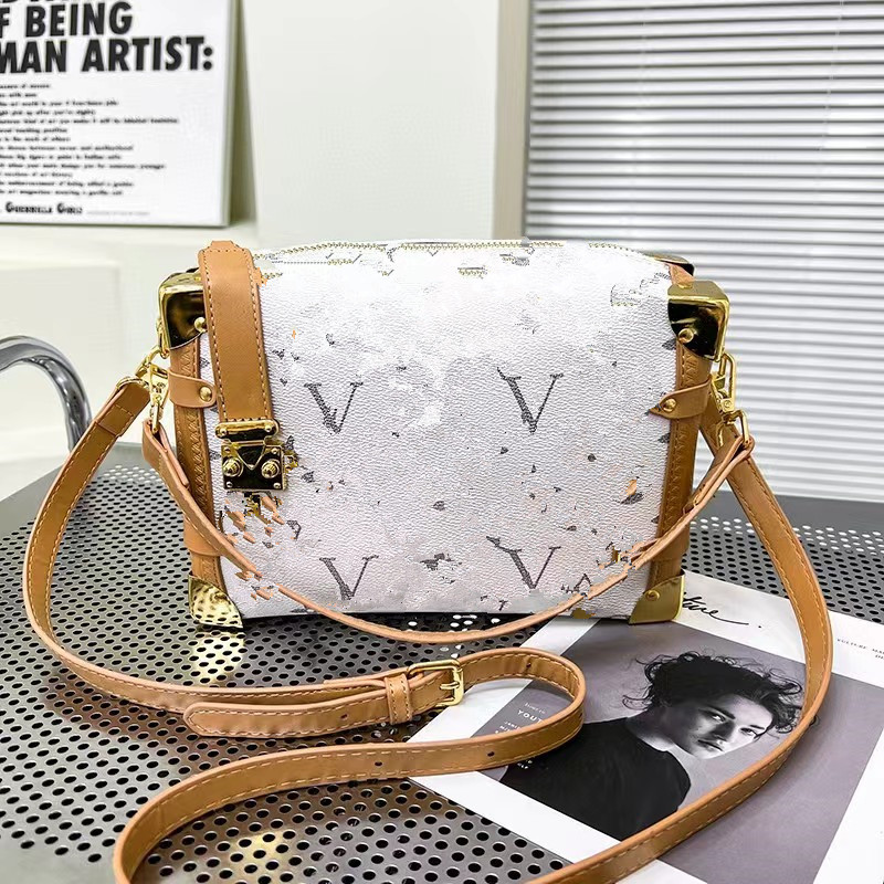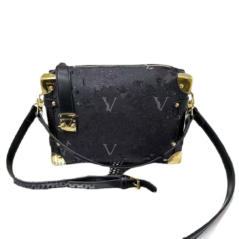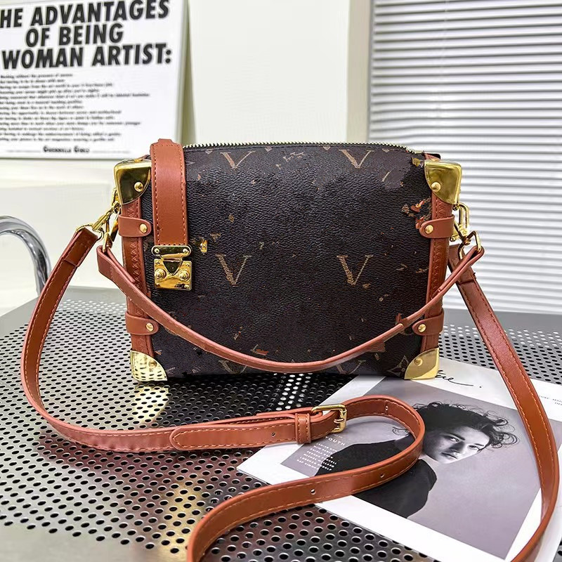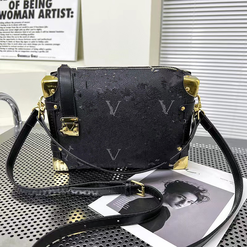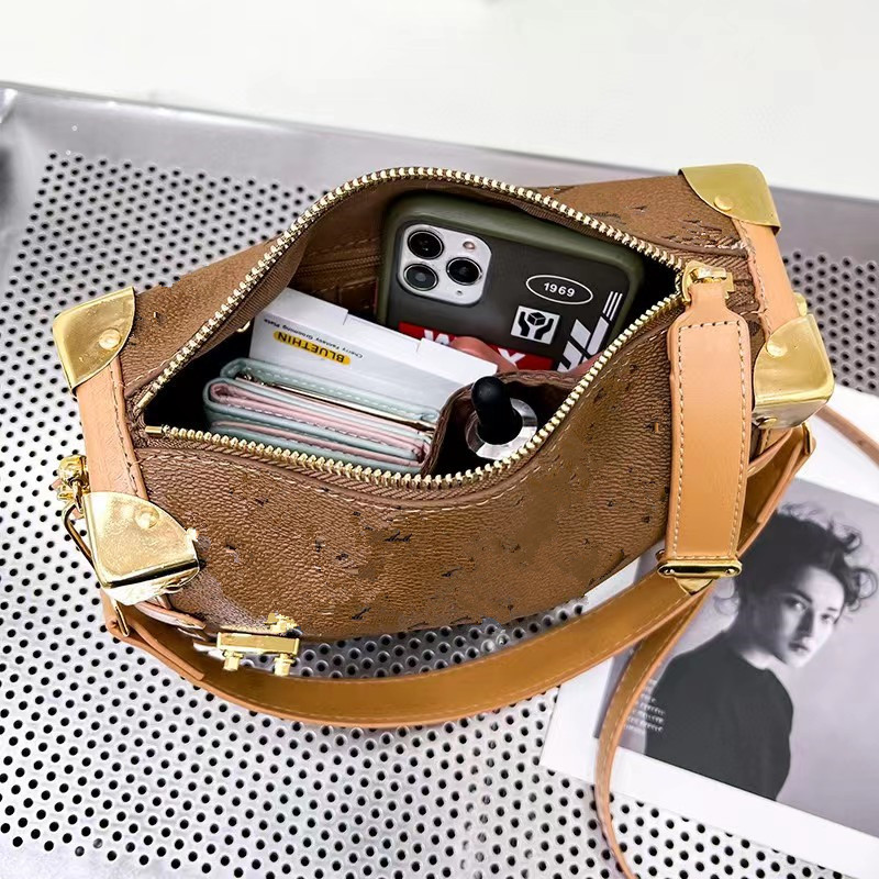 外贸印花盒子包软箱子大容量单肩斜挎包包女pu金属角欧美风格批发