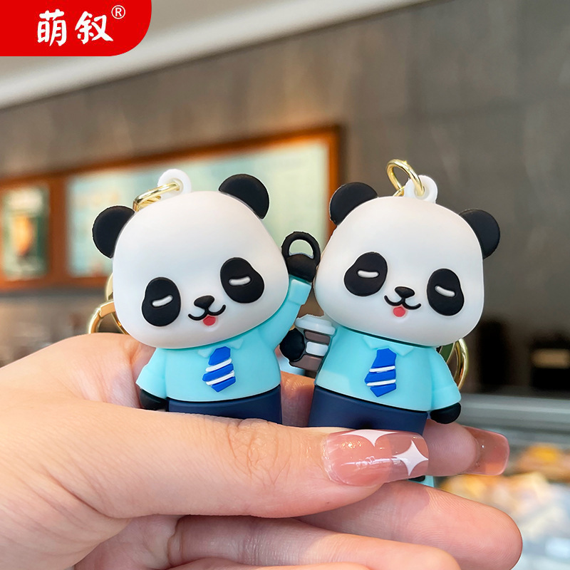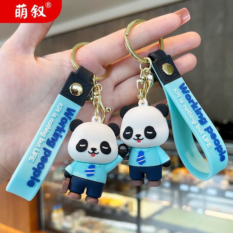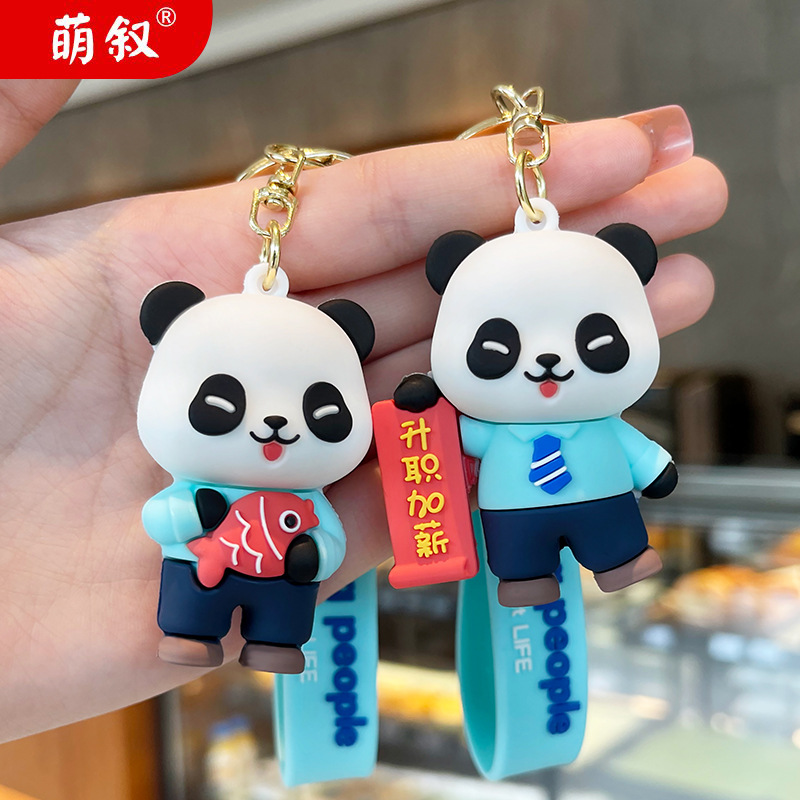 萌叙打工人熊猫创意可爱卡通钥匙扣汽车书包百搭挂件时尚礼品批发