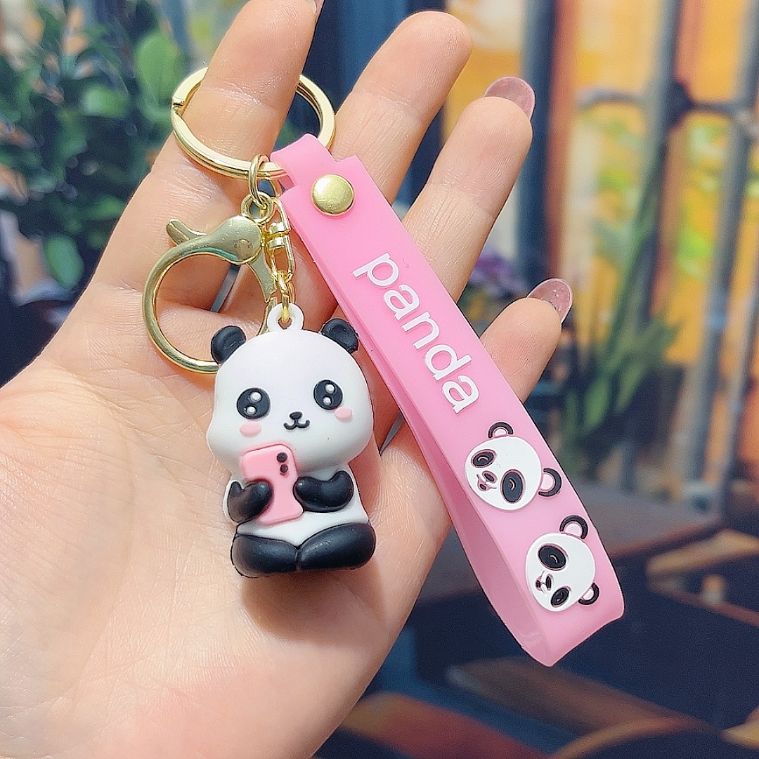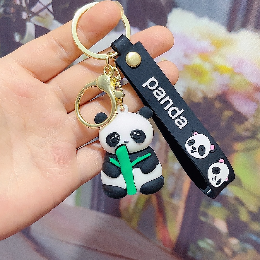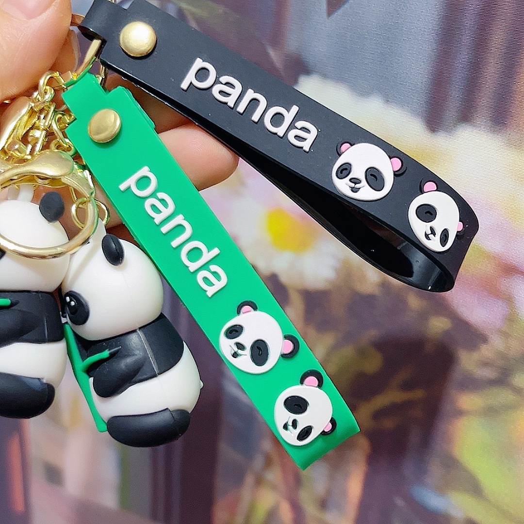 卡通可爱熊猫钥匙扣挂件PVC软胶小熊钥匙链包包挂饰情侣礼品批发