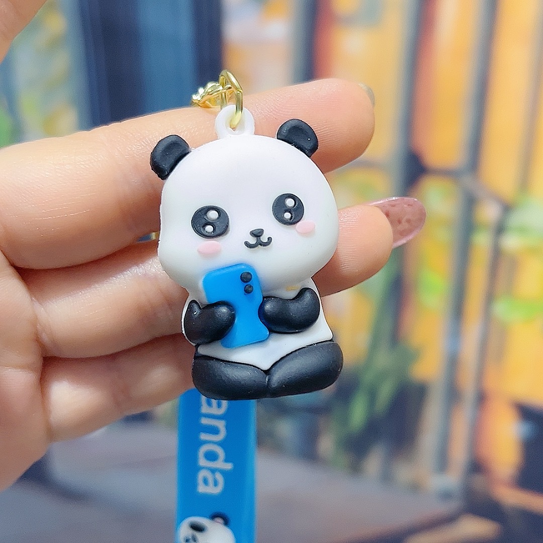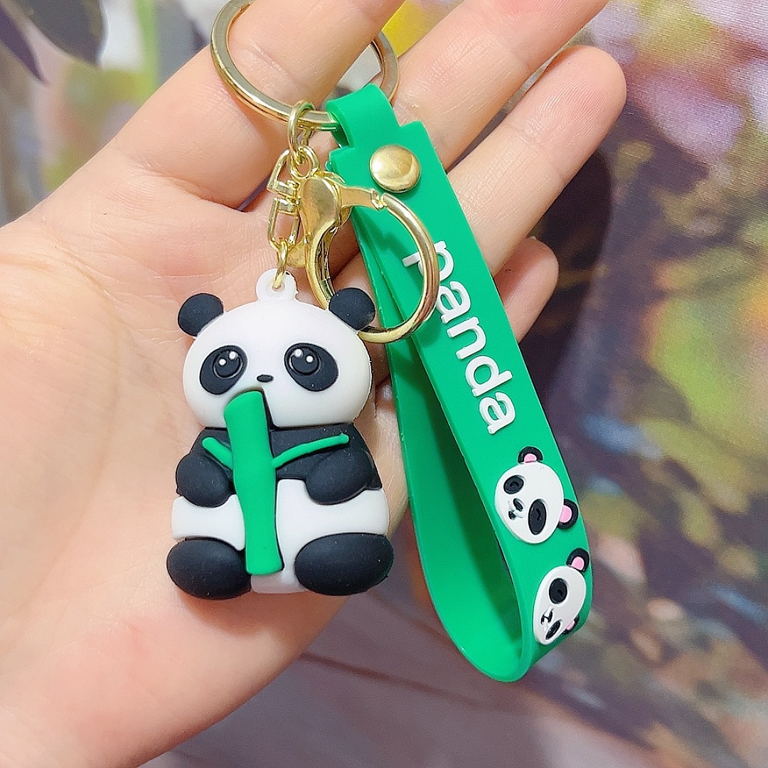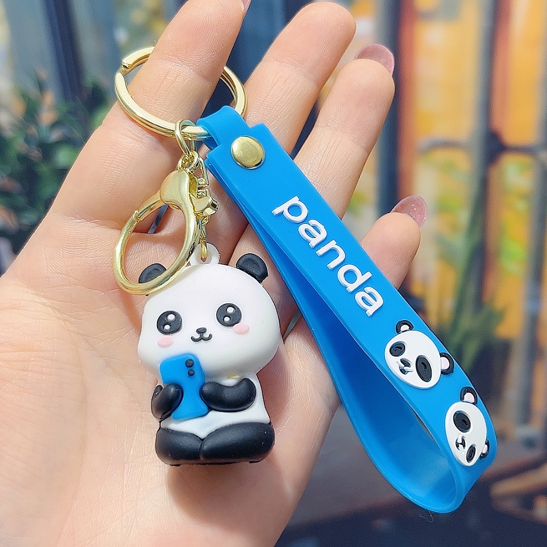 卡通可爱熊猫钥匙扣挂件PVC软胶小熊钥匙链包包挂饰情侣礼品批发