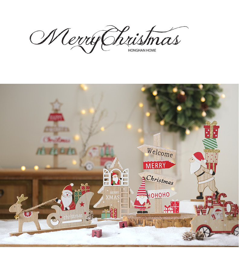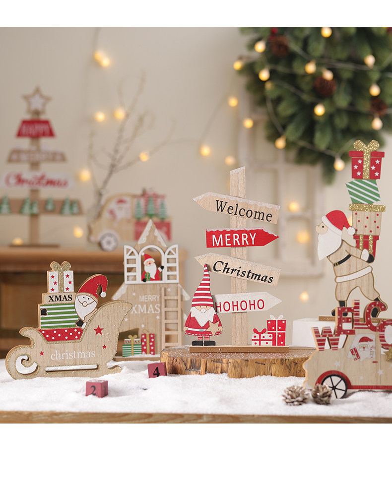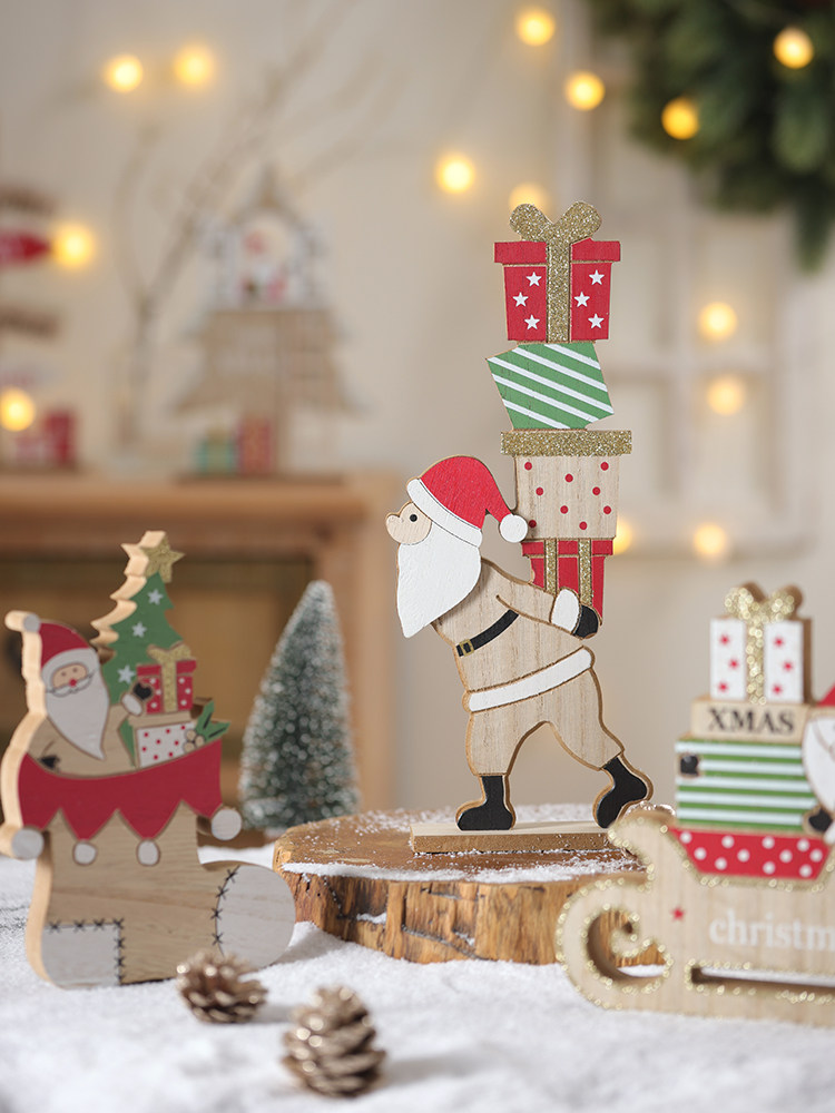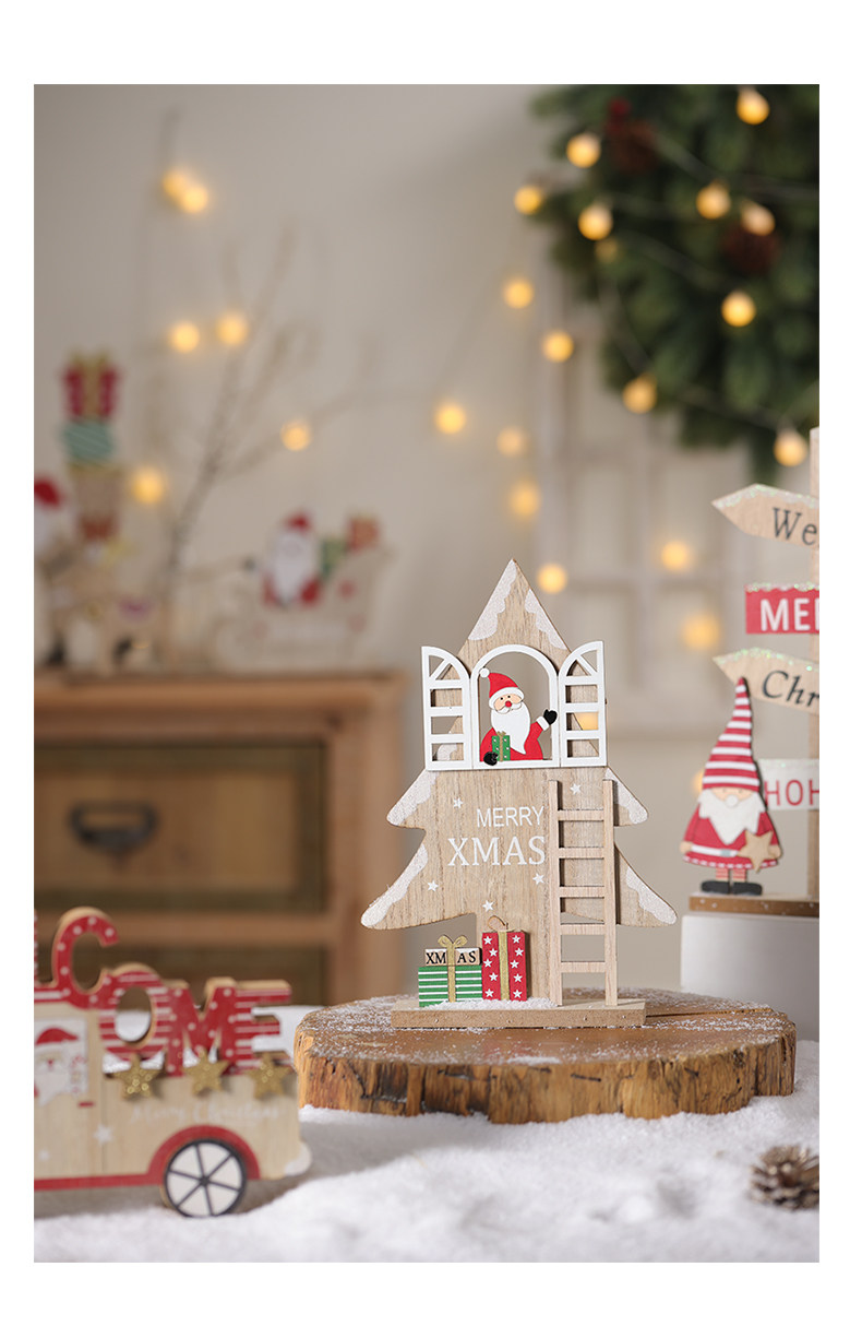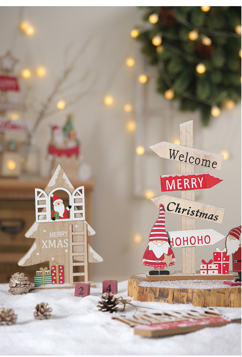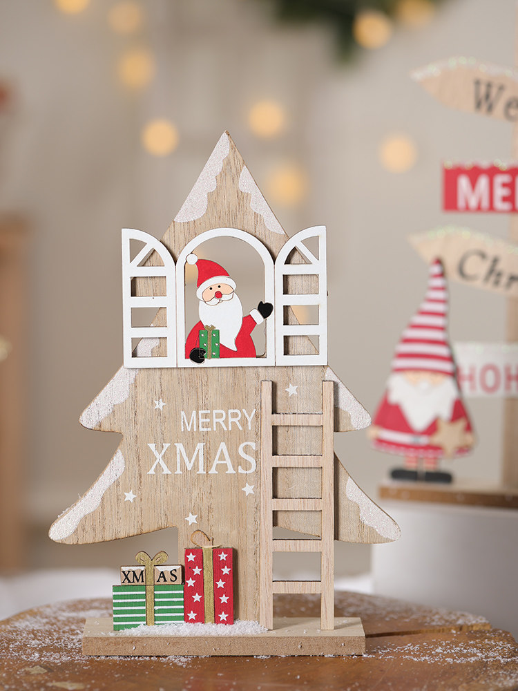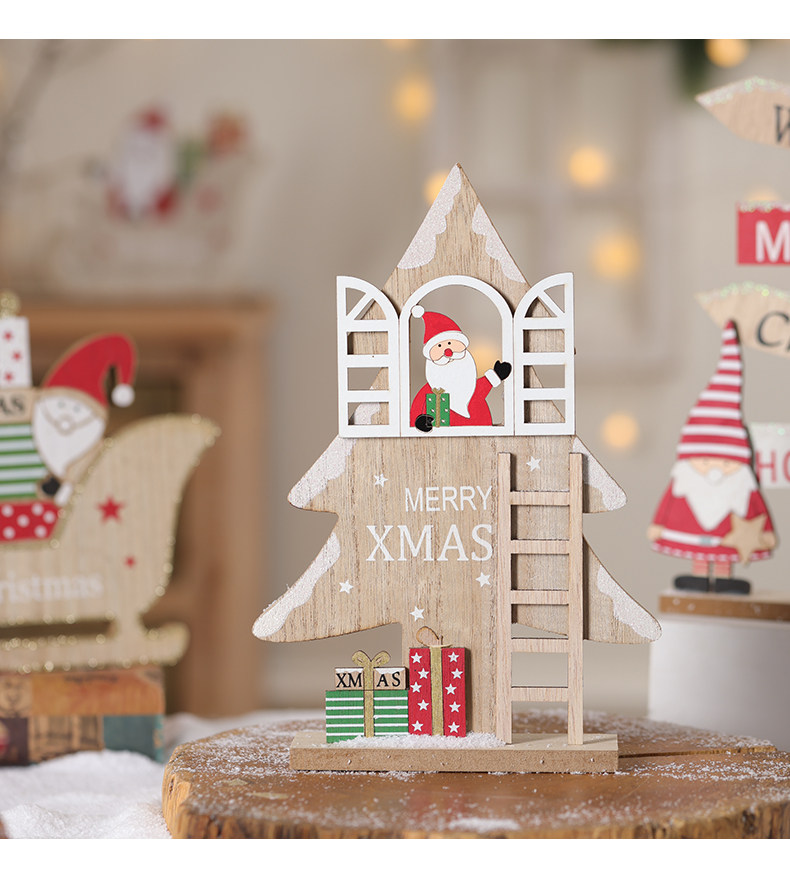 圣诞节装饰桌面摆件木质老人圣诞树创意圣诞场景布置圣诞装饰摆件