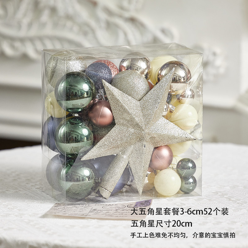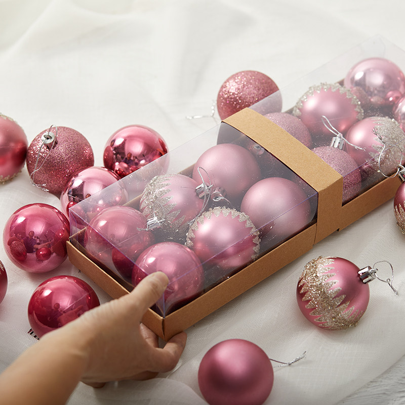 6/8cm粉红色浅粉色手绘圣诞球玫瑰粉彩绘球圣诞树吊饰吊球圣诞