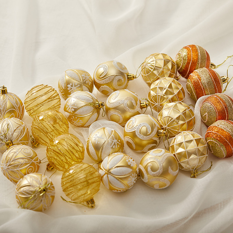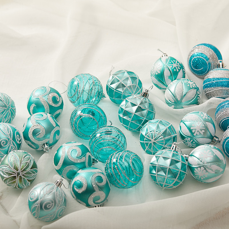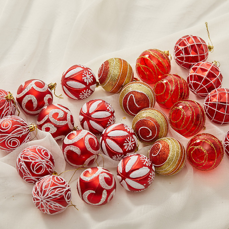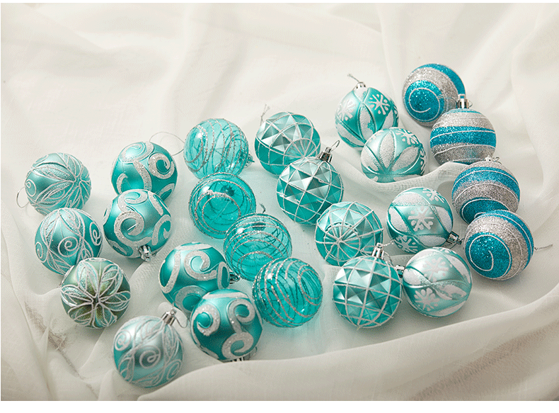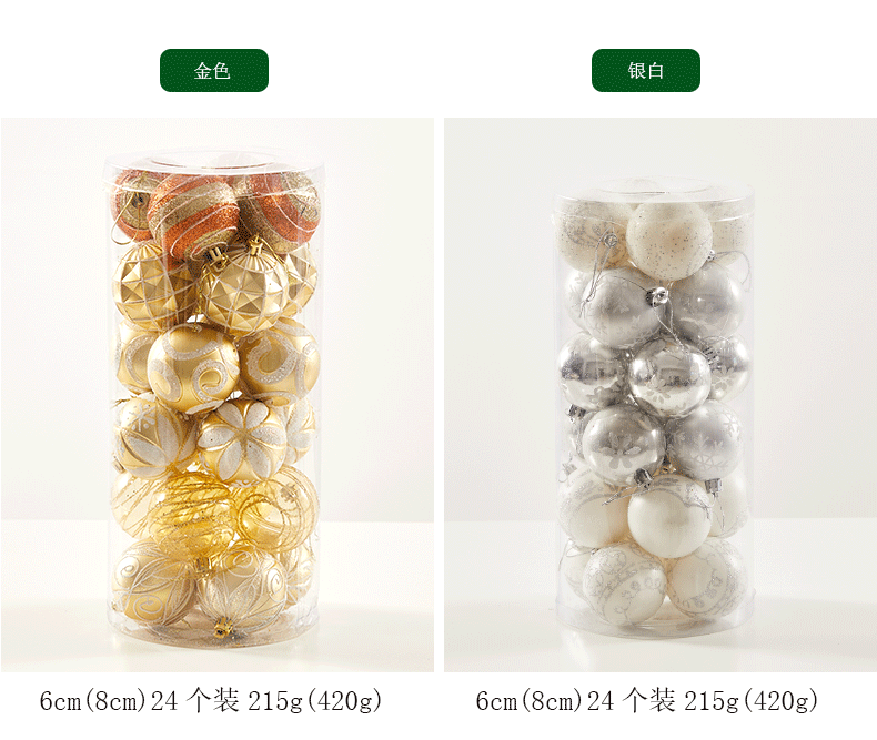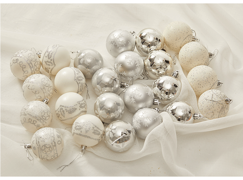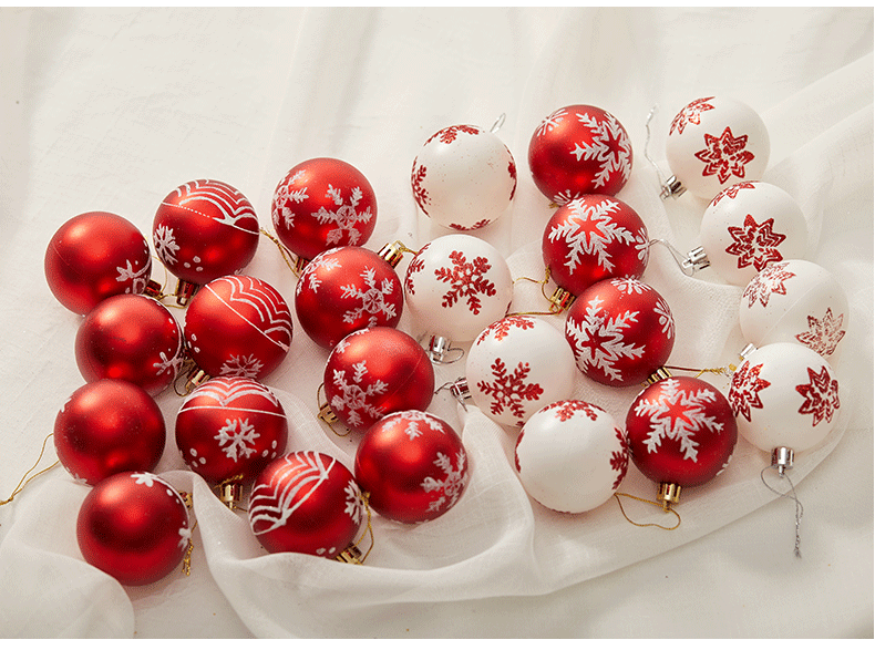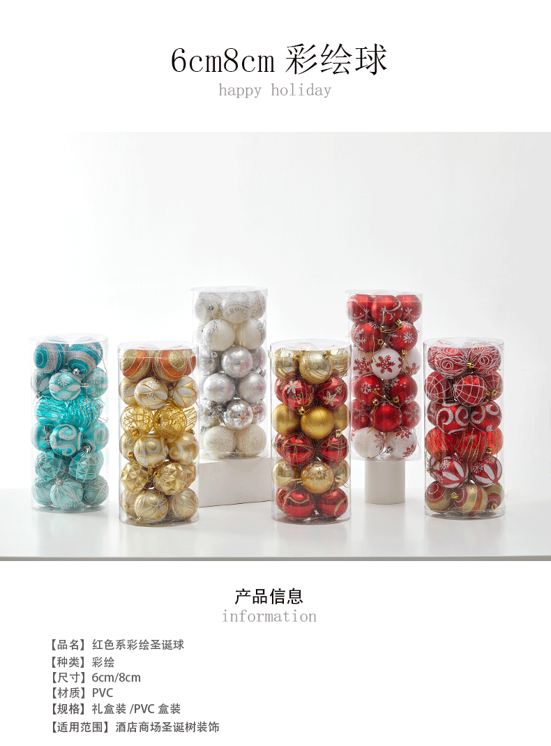 彩绘圣诞球白色绿色手绘球圣诞树挂件吊顶装饰圣诞装饰品