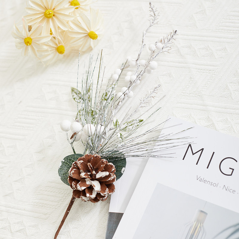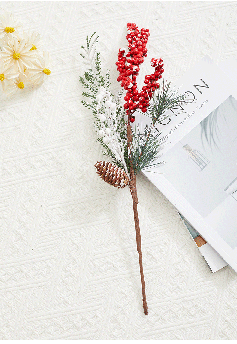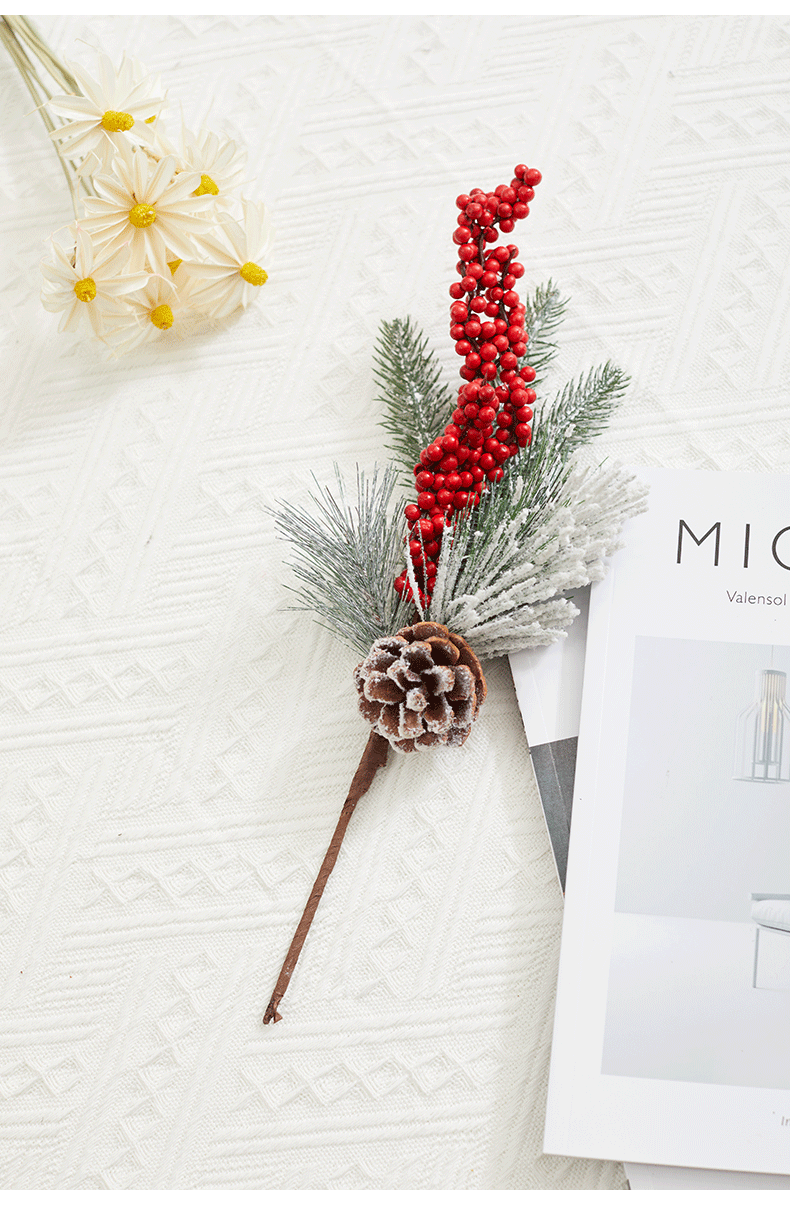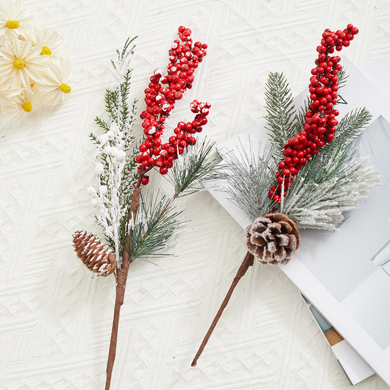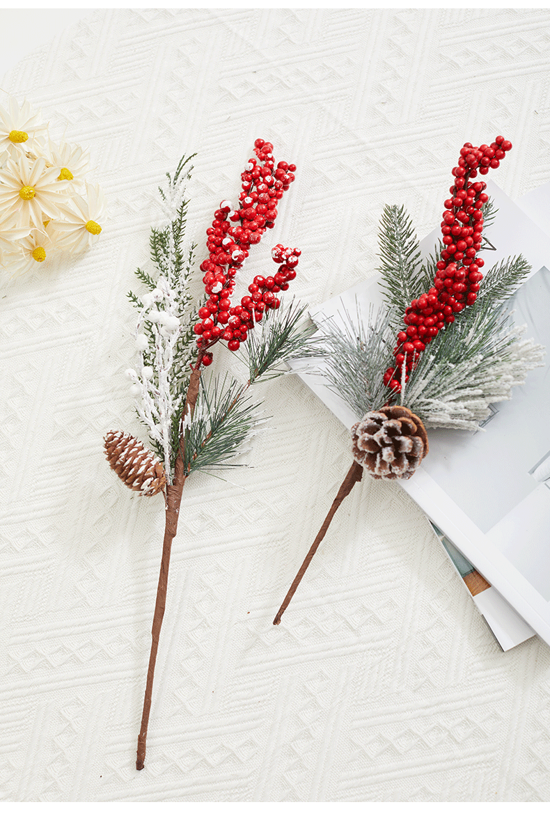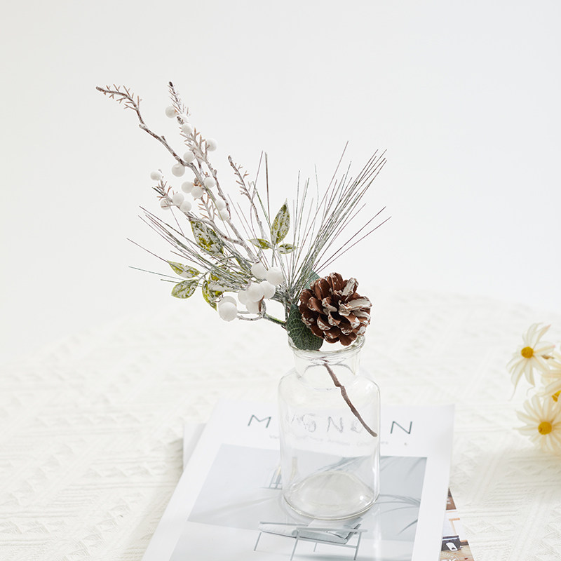 圣诞节装饰品红果松果插枝圣诞树装饰布置道具家用花瓶布景