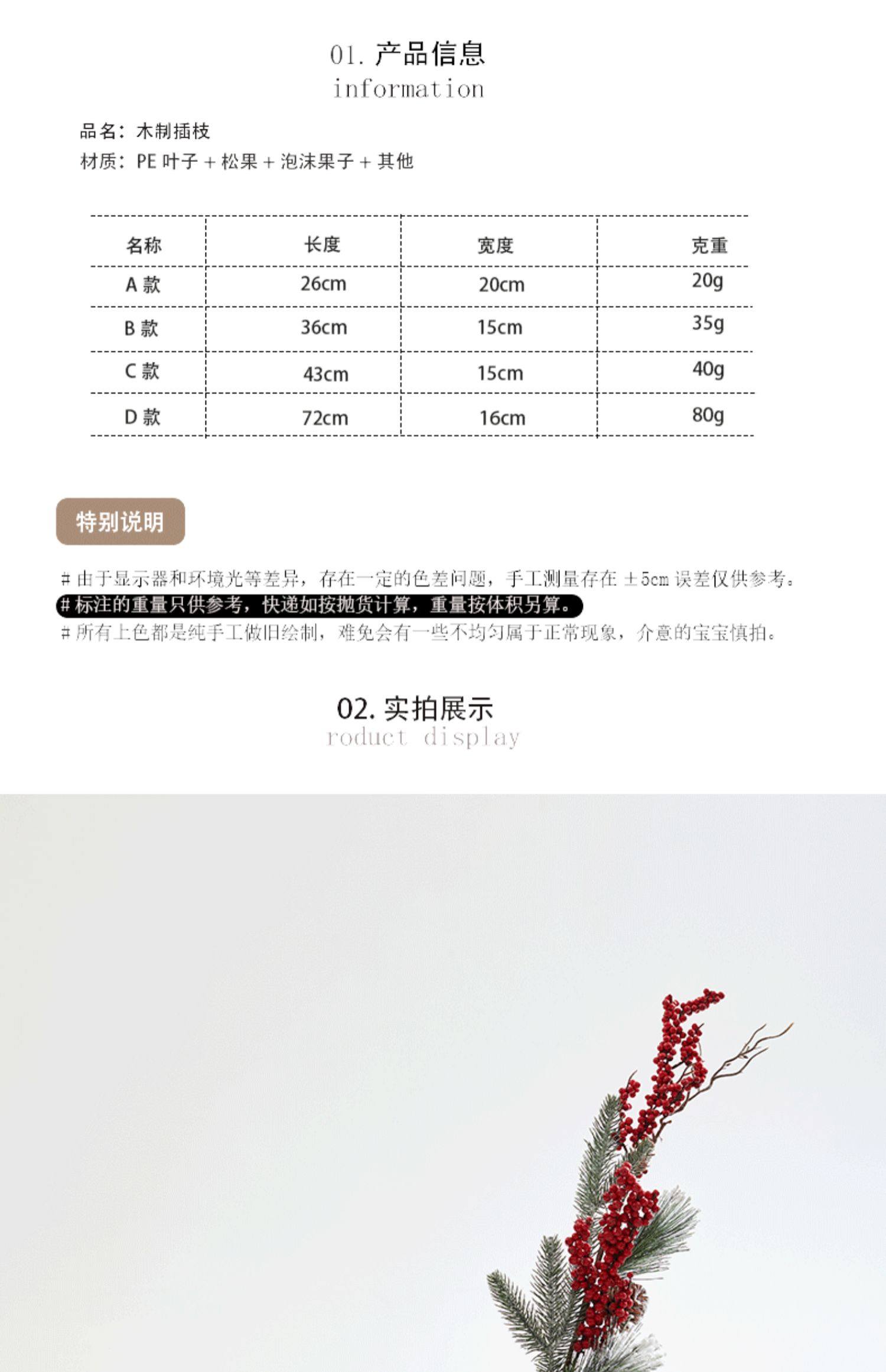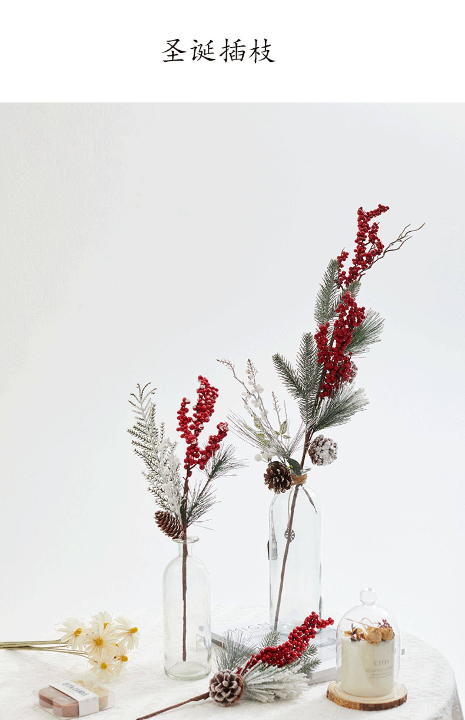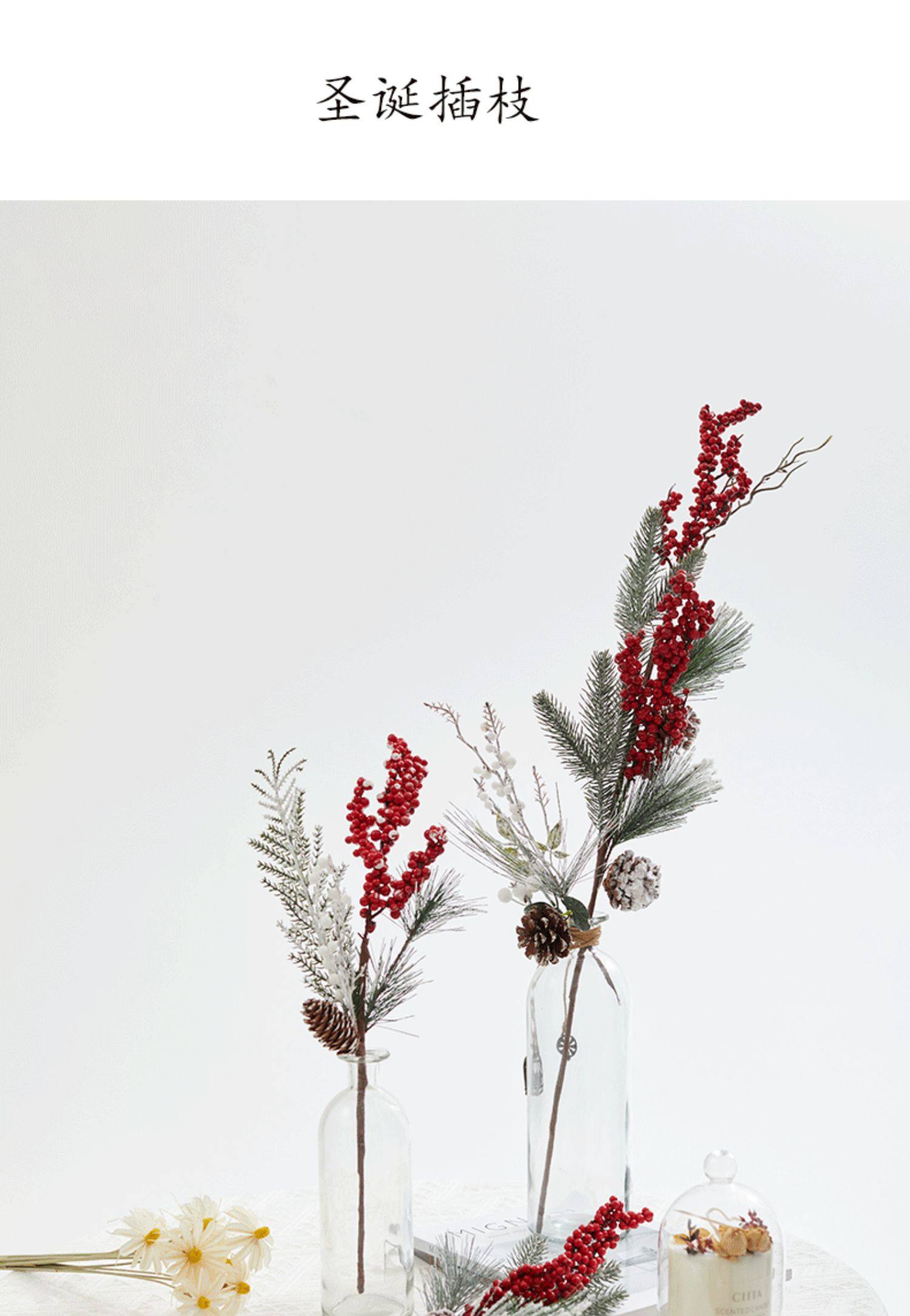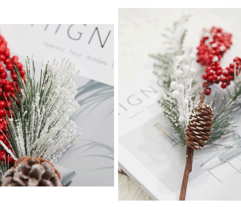 圣诞节装饰品红果松果插枝圣诞树装饰布置道具家用花瓶布景