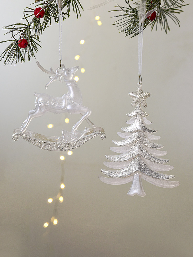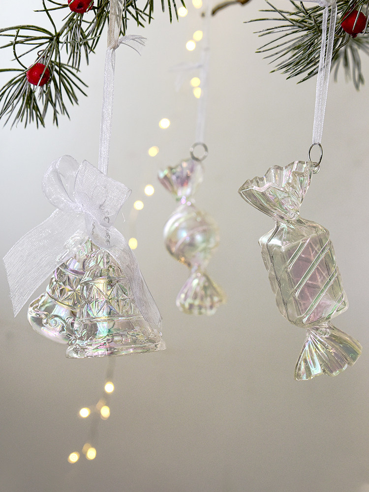 透明七彩亚克力圣诞雪花铃铛异形挂饰diy圣诞树装饰创意挂件