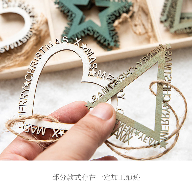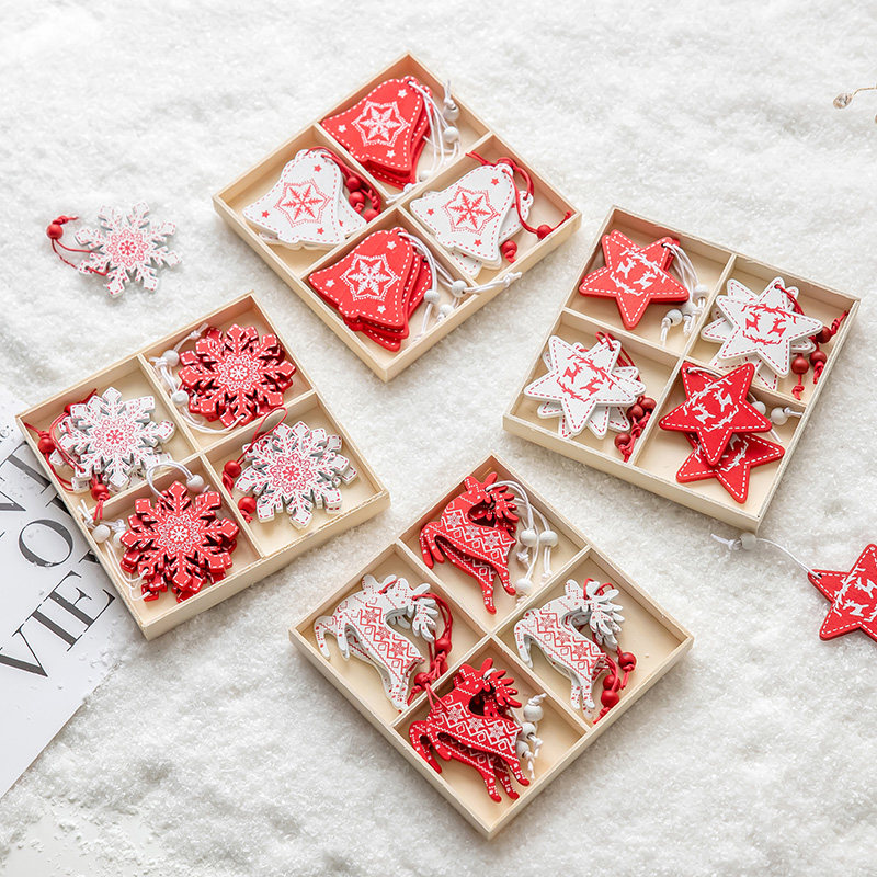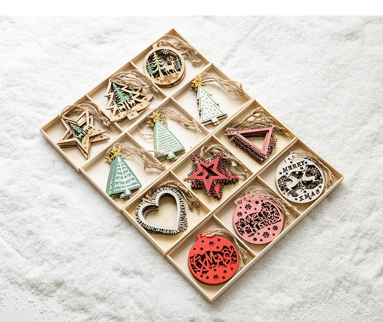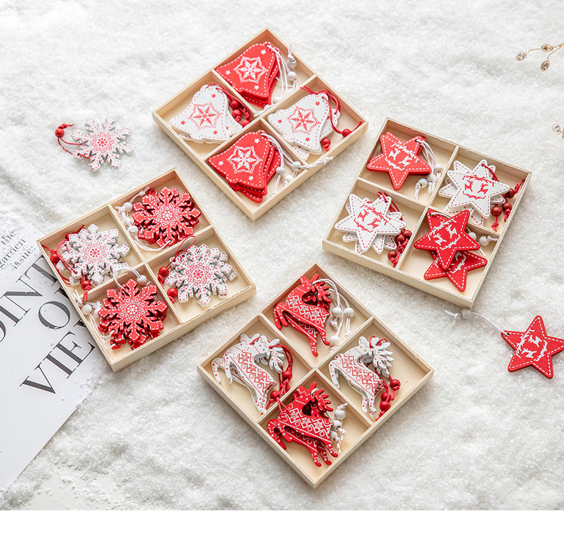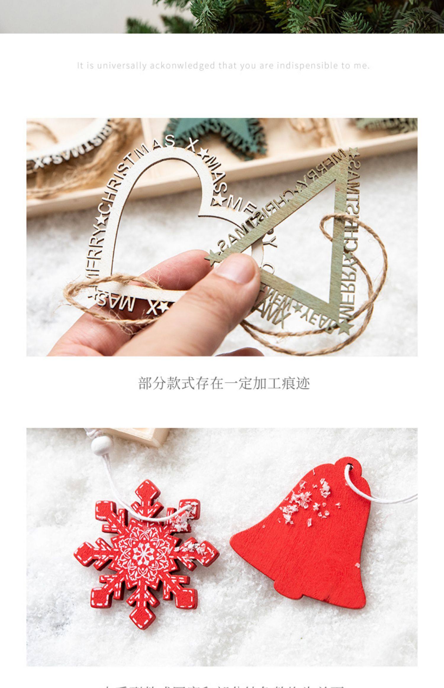圣诞装饰创意diy盒装木片雪花麋鹿圣诞球挂件圣诞树挂饰配件