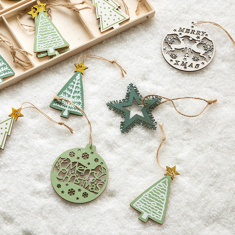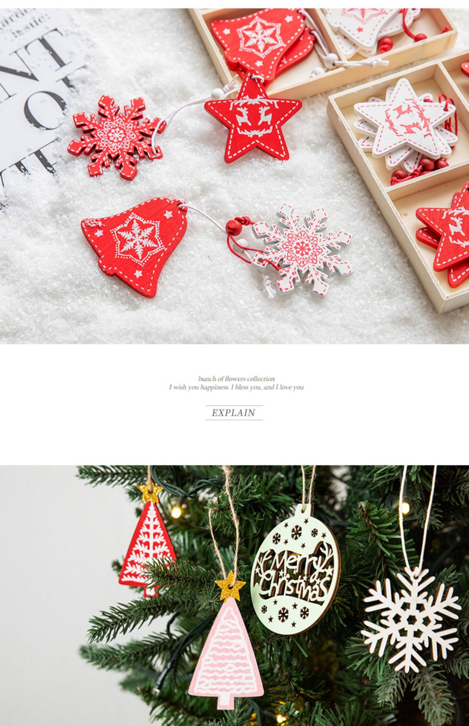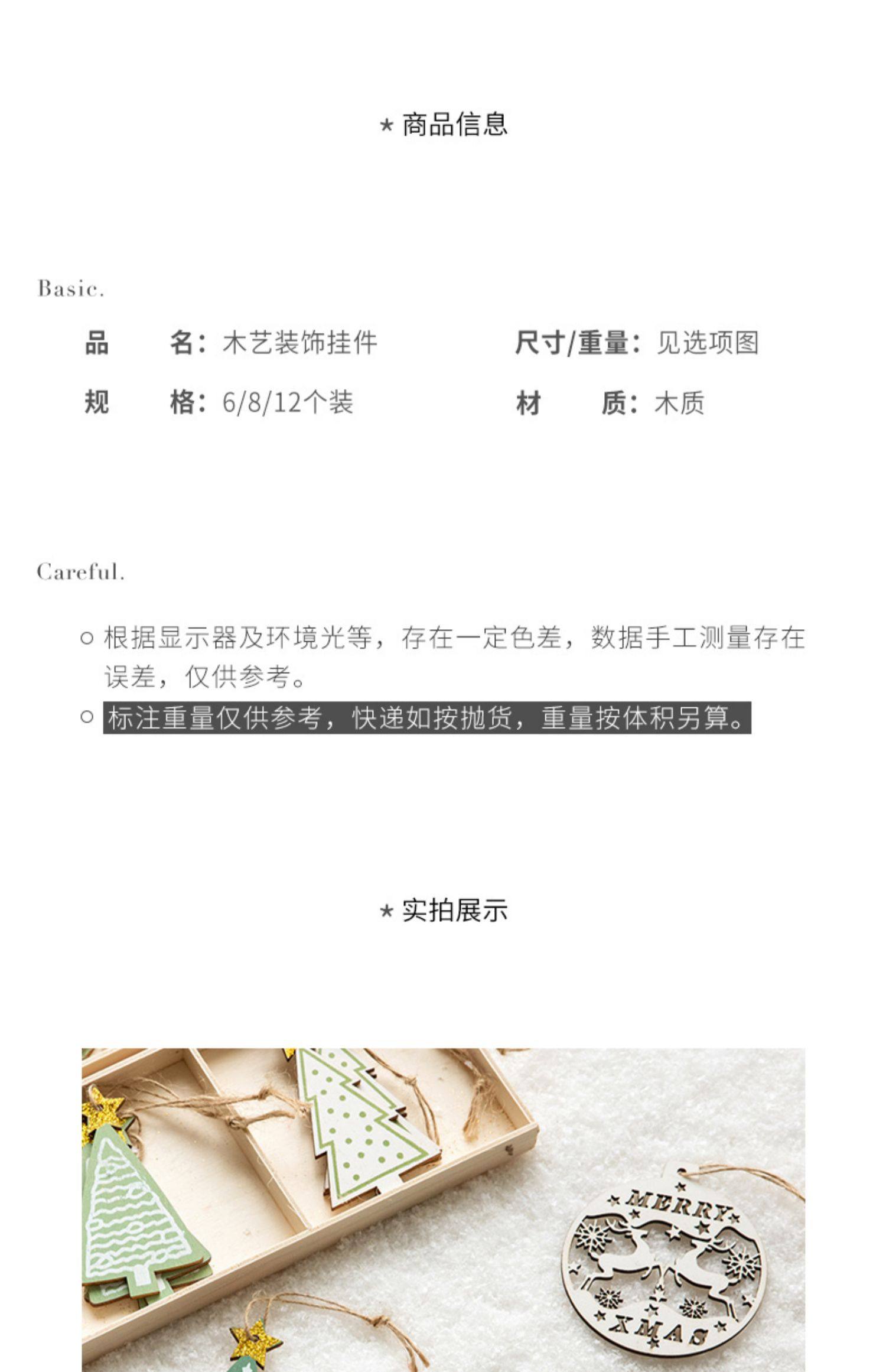 圣诞装饰创意diy盒装木片雪花麋鹿圣诞球挂件圣诞树挂饰配件