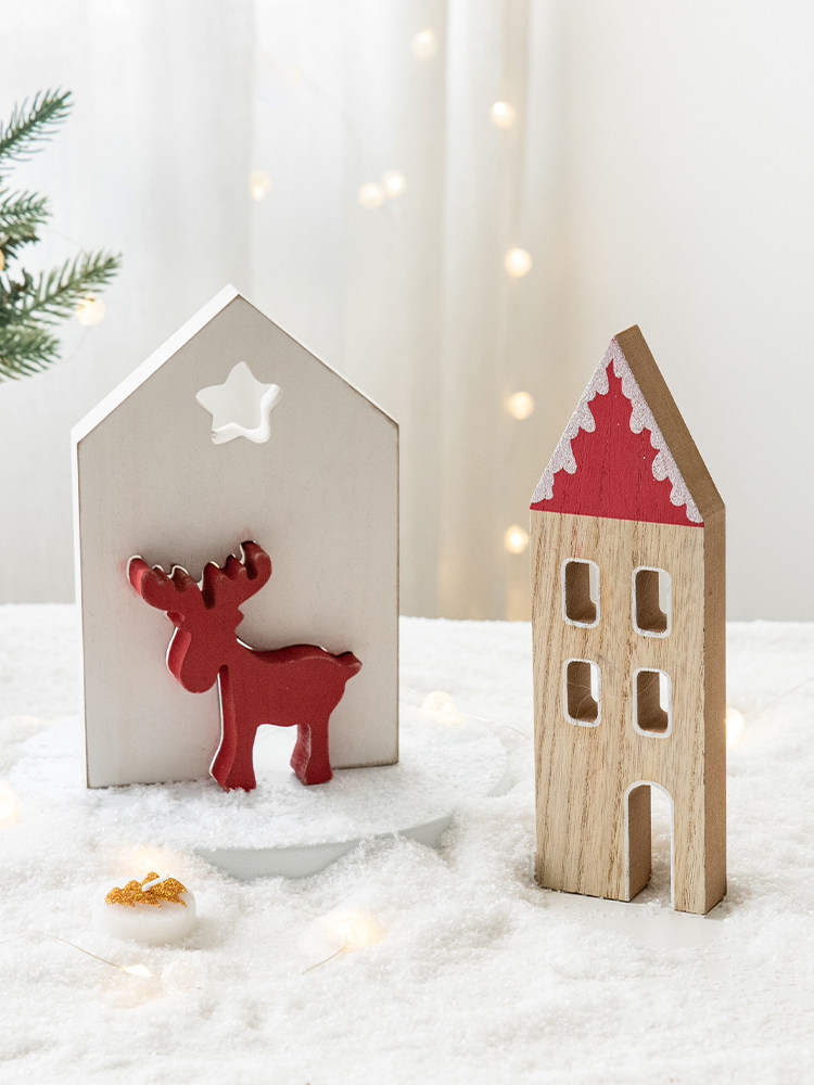 北欧圣诞房子小木屋桌面装饰摆件 烟囱小房子圣诞节装饰品圣诞