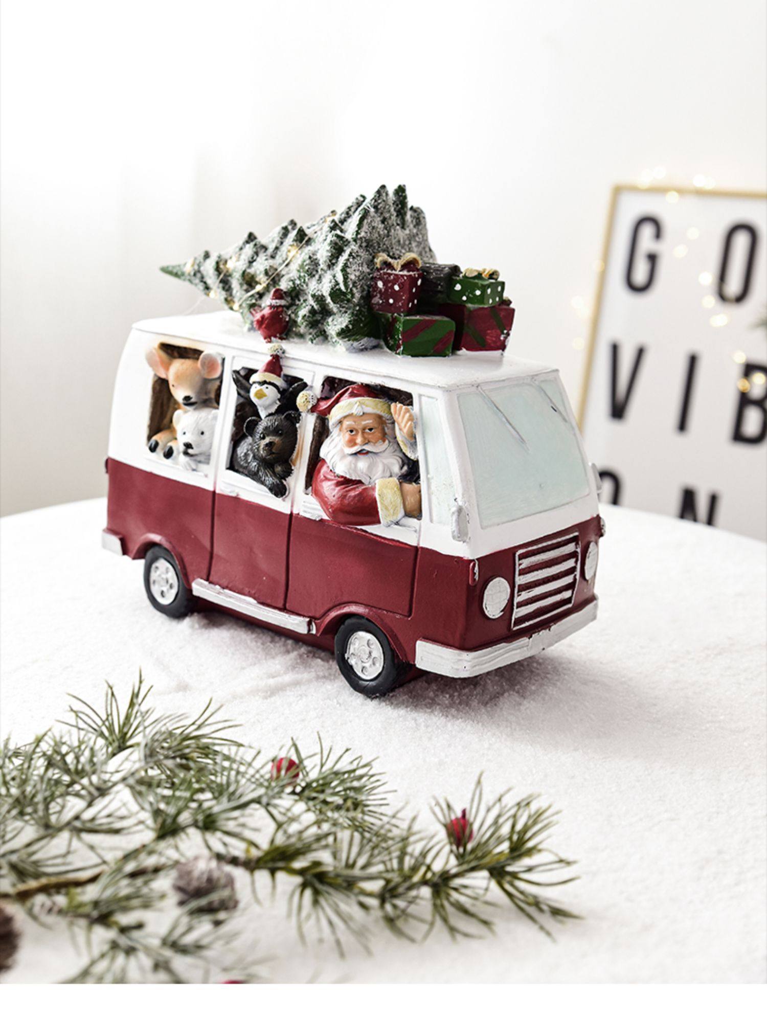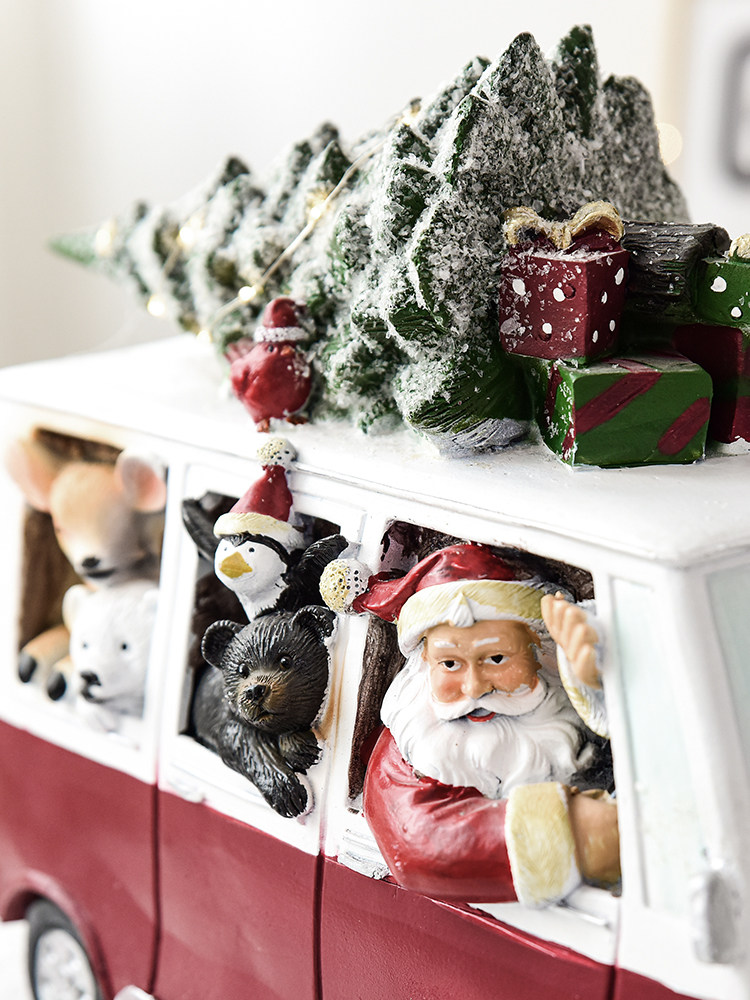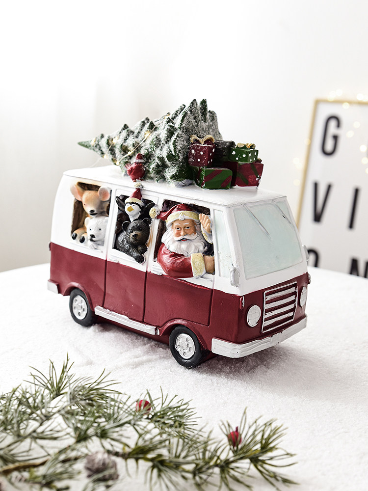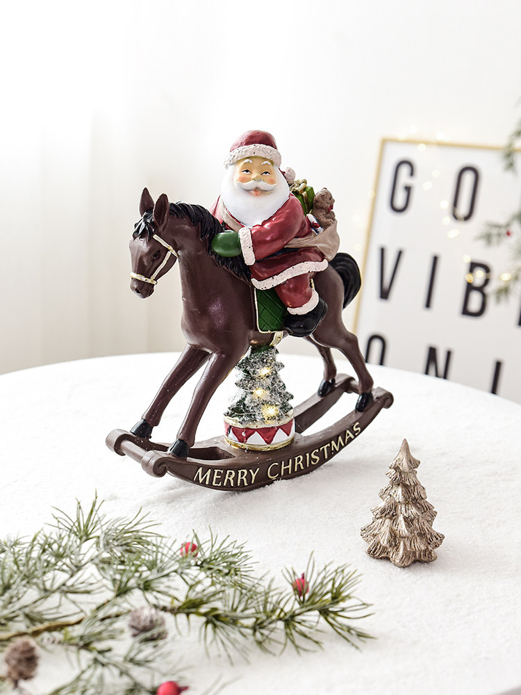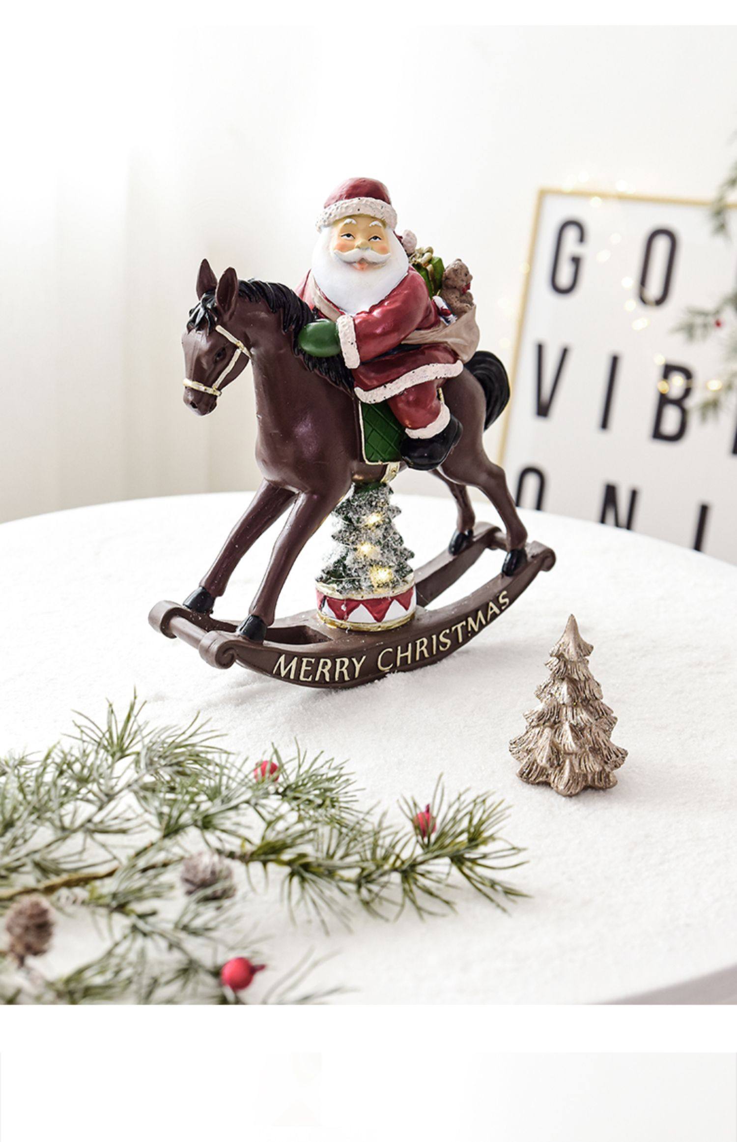 圣诞老人骑马树脂工艺桌面摆件汽车拉圣诞树店铺橱窗圣诞装饰