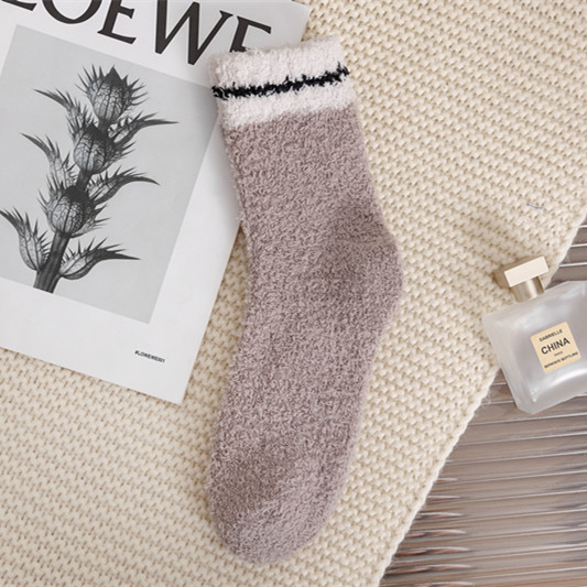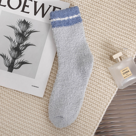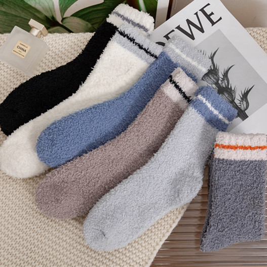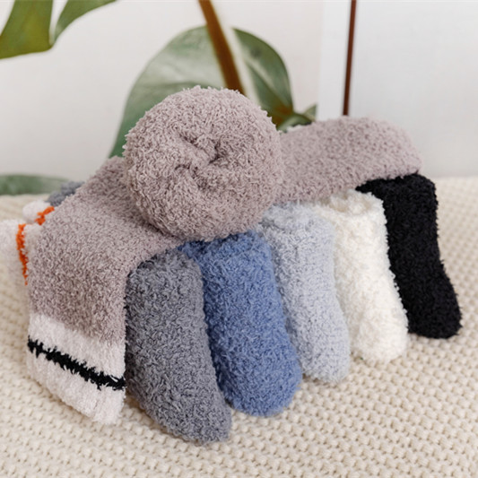 珊瑚绒加厚袜子男冬中筒袜居家成人毛巾地板袜秋冬款保暖睡眠袜子
