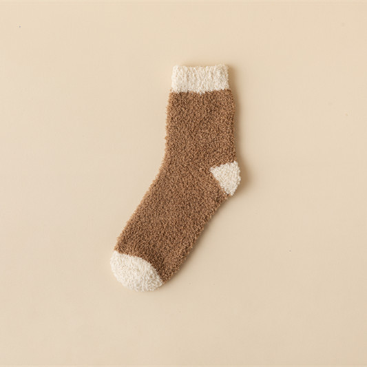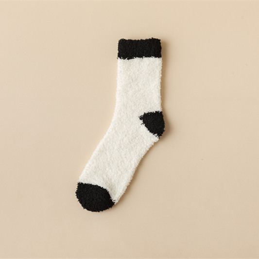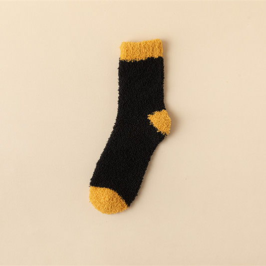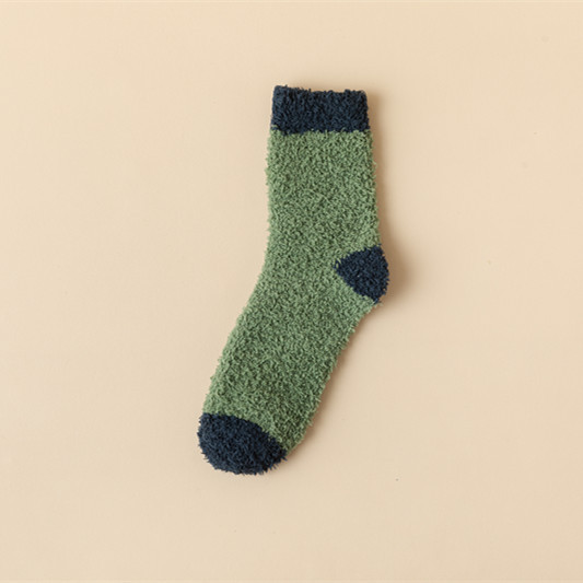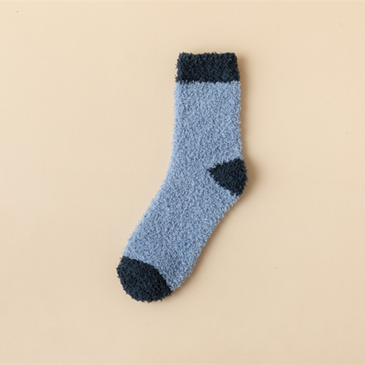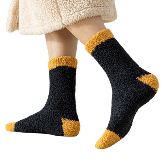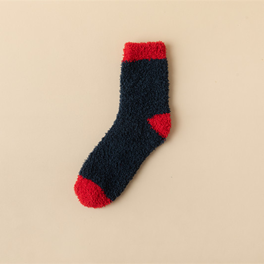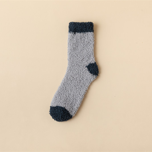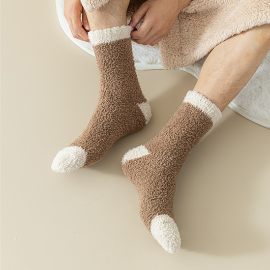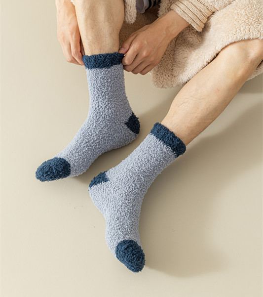 珊瑚绒袜子男撞色不掉毛中筒男袜加厚保暖地板袜复古半边绒睡眠袜
