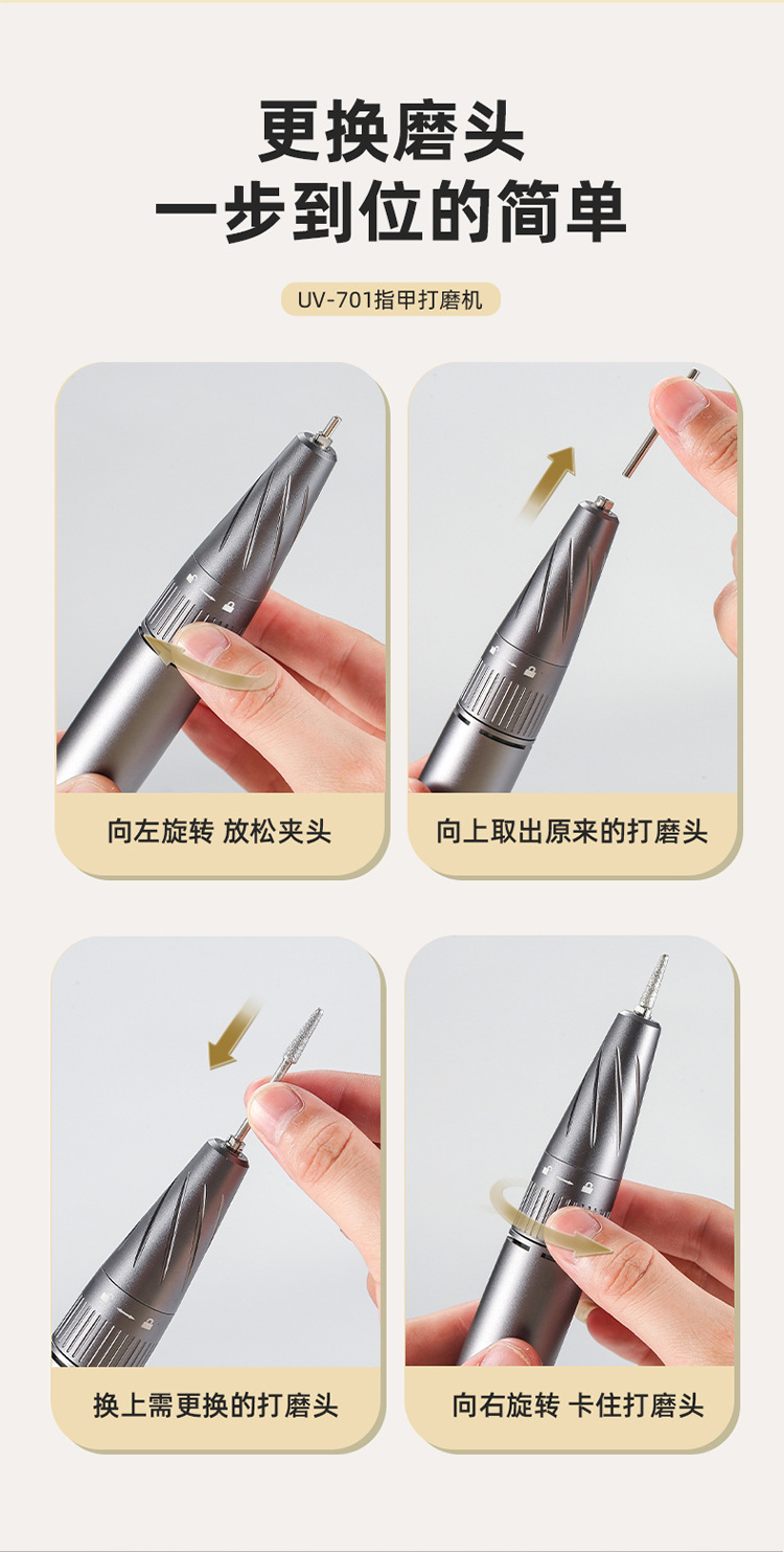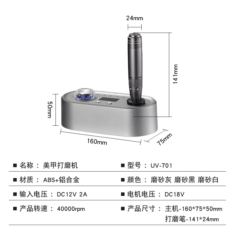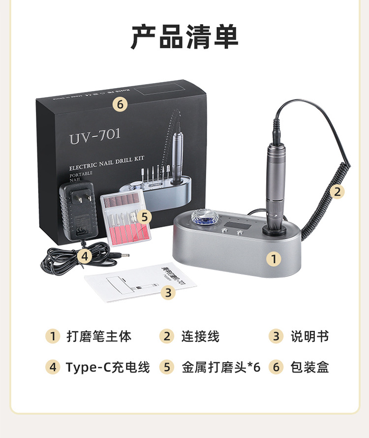 新款电动卸甲机40000转高转速美甲打磨机701指甲磨甲器不发烫
