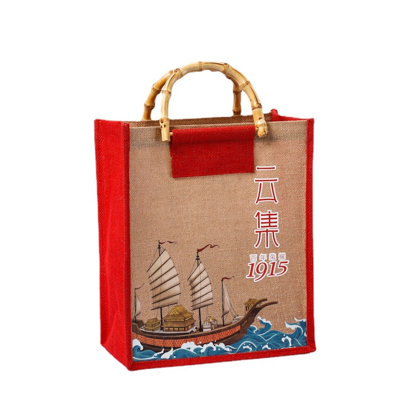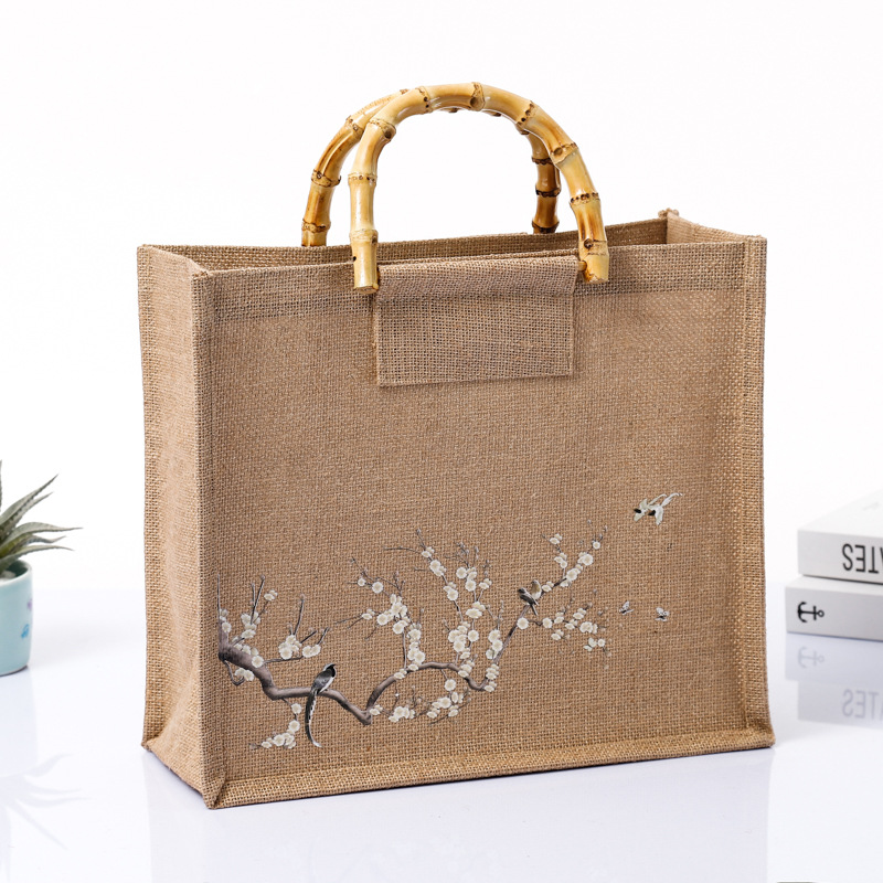 竹节国风包包复古原创设计文艺森系手提袋麻布袋定制可印LOGO